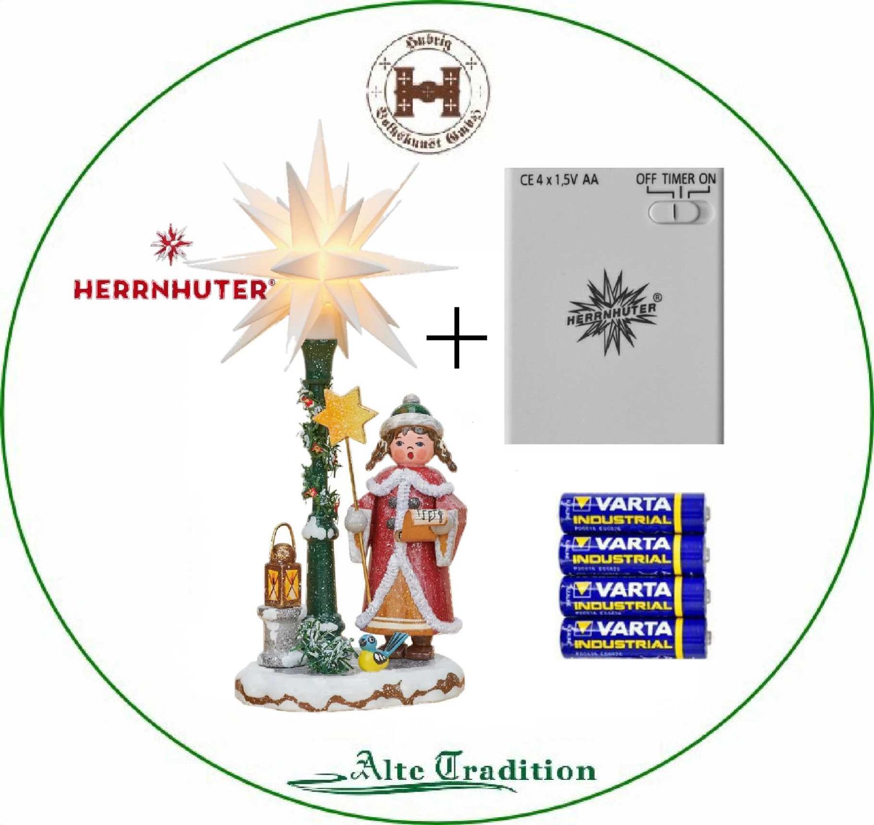 Hubrig Volkskunst Hubrig - Herrnhuter ® Sternsinger 8 cm Stern weiß Batteriehalter mit Timer NEU