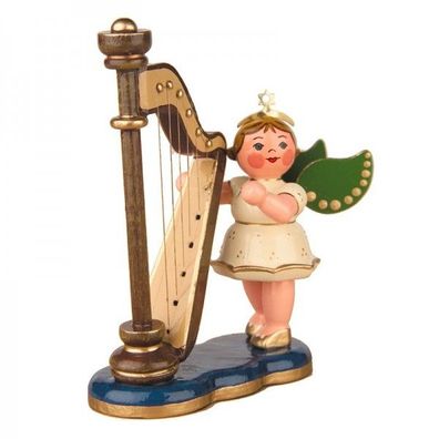 • Original Hubrig Volkskunst Engel mit Harfe Erzgebirge