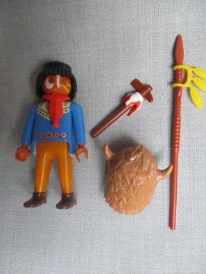 • Playmobil Indianer mit Büffelhorn-Mütze, Halstuch, Speer mit Schmuckfeder, Tomahawk