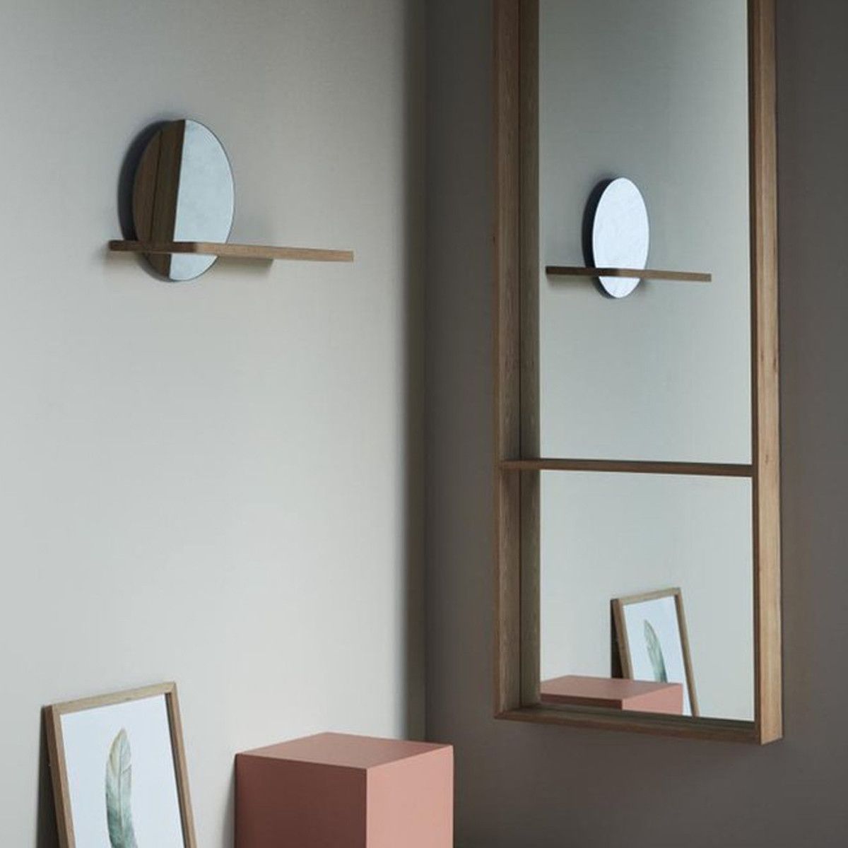 Hübsch Interior Badspiegel & Regalablage Runder Spiegel mit Holzablage | 880403