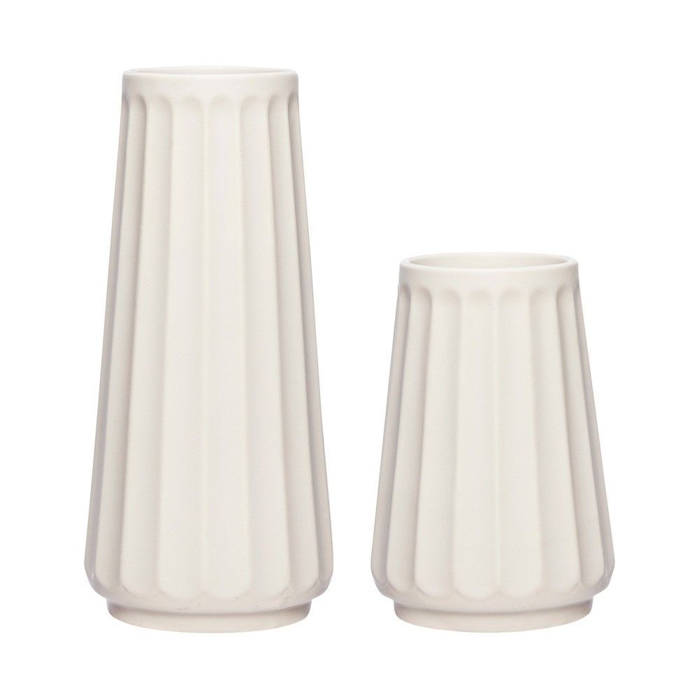 Hübsch Interior Blumenvasen Romana Stil 2x Säulen Dekovasen Keramik creme | 260301
