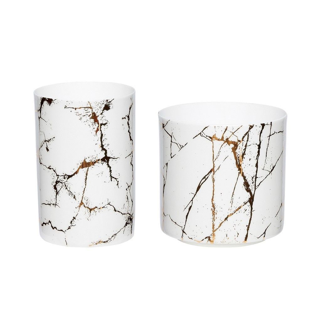 Hübsch Interior Teelichter aus Porzellan 2x weiße Windlichthalter Golddruck | 420311