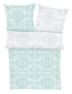 Ibena Zeitgeist Satin Bettwäsche 135x200 cm grau mint Ornament 2-tlg. 5083-700