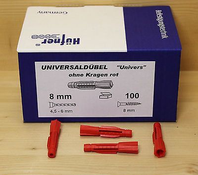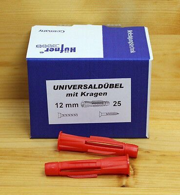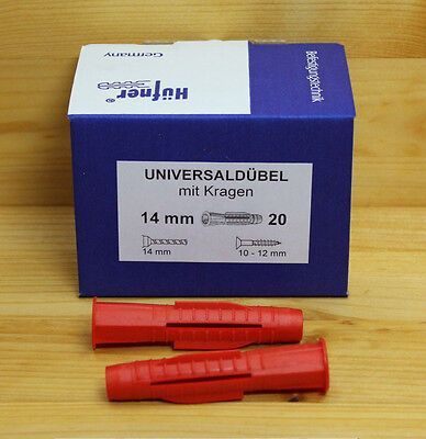 Erstklassige Qualität, hergestellt in Deutschland - Hüfner Universaldübel mit Kragen ohne Kragen Aus hochwertigem Kunststoff für Befestigungen in Voll- und Hohlbaustoffen. Im Vollbaustoff spreizt der Dübel in drei Richtungen. Im Hohlbaustoff verknotet sich der Dübel um die Schraube. Geliefert wird w