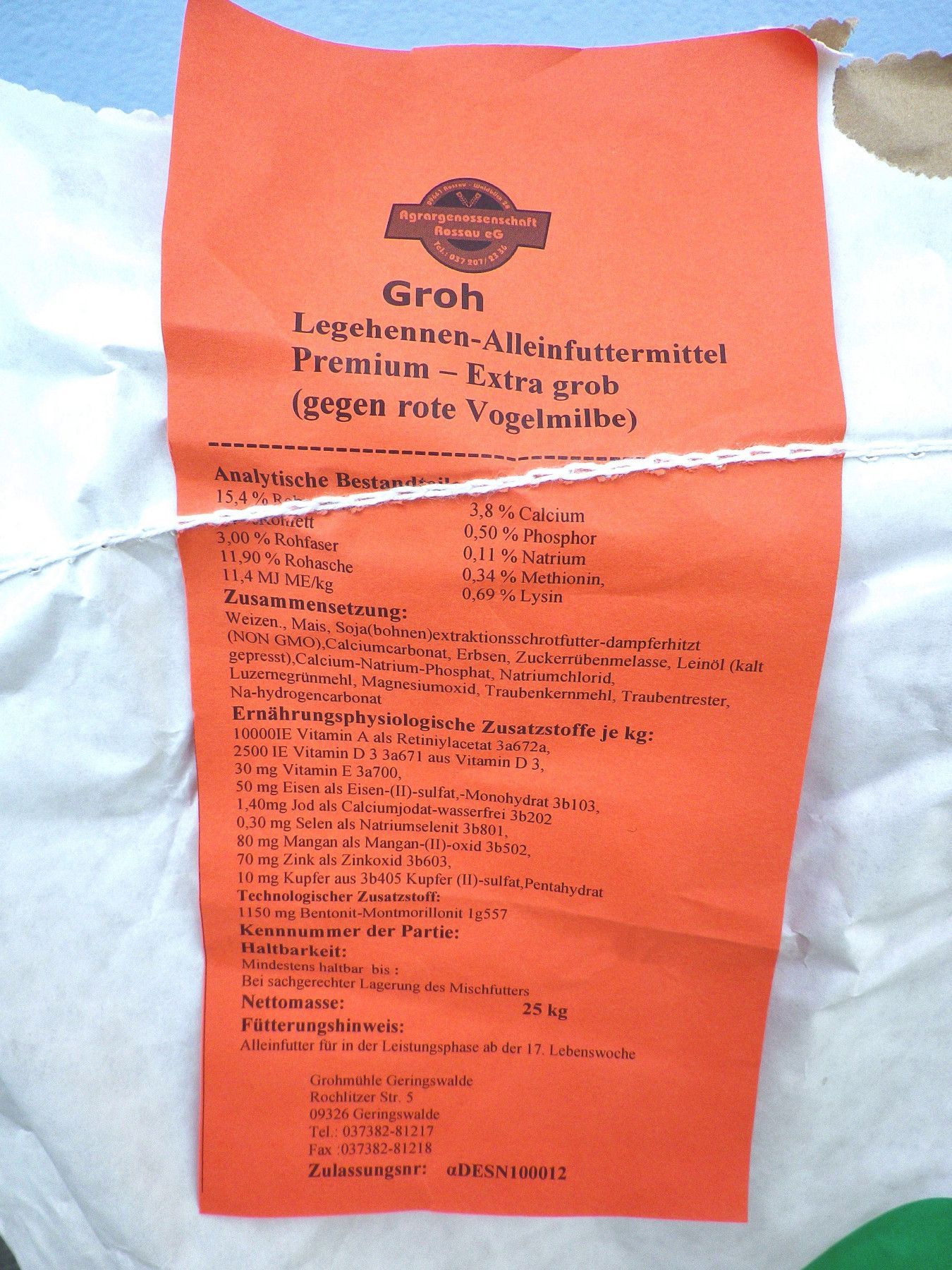 Hühnerfutter Legehennen Premium Extra Grob gegen rote Vogelmilbe 10kg