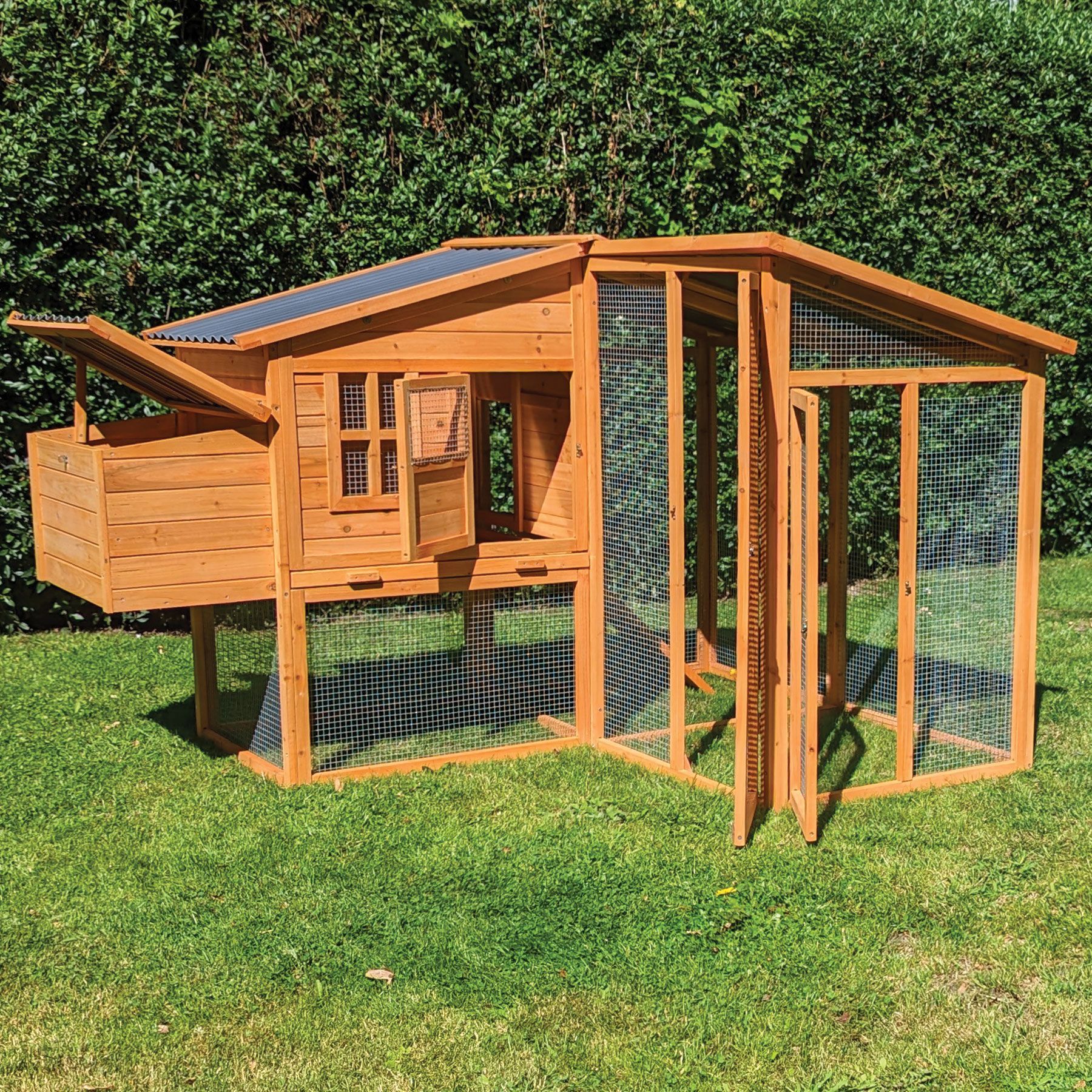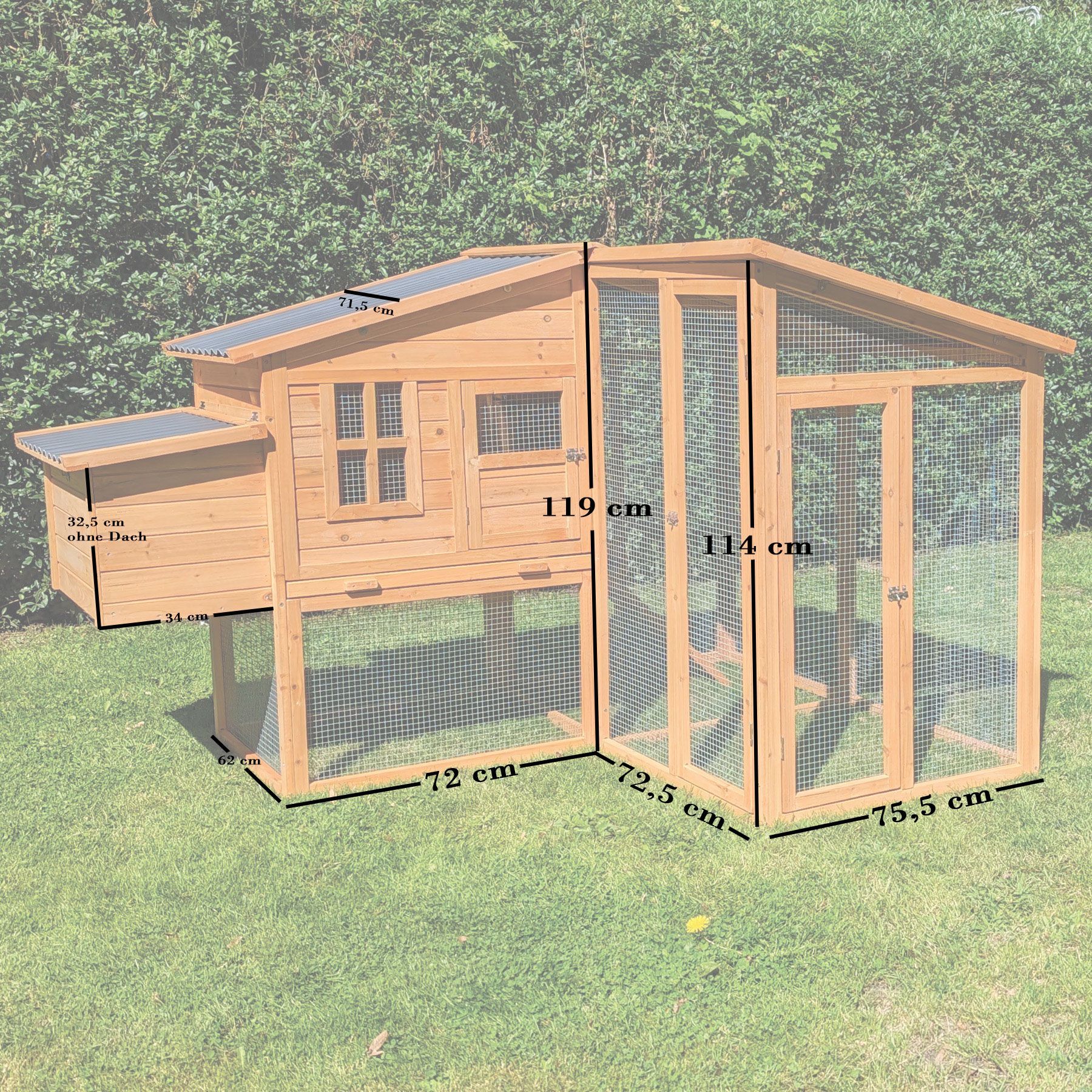 Hühnerhaus Liese mit PVC Welldach - mit extra Auslauf