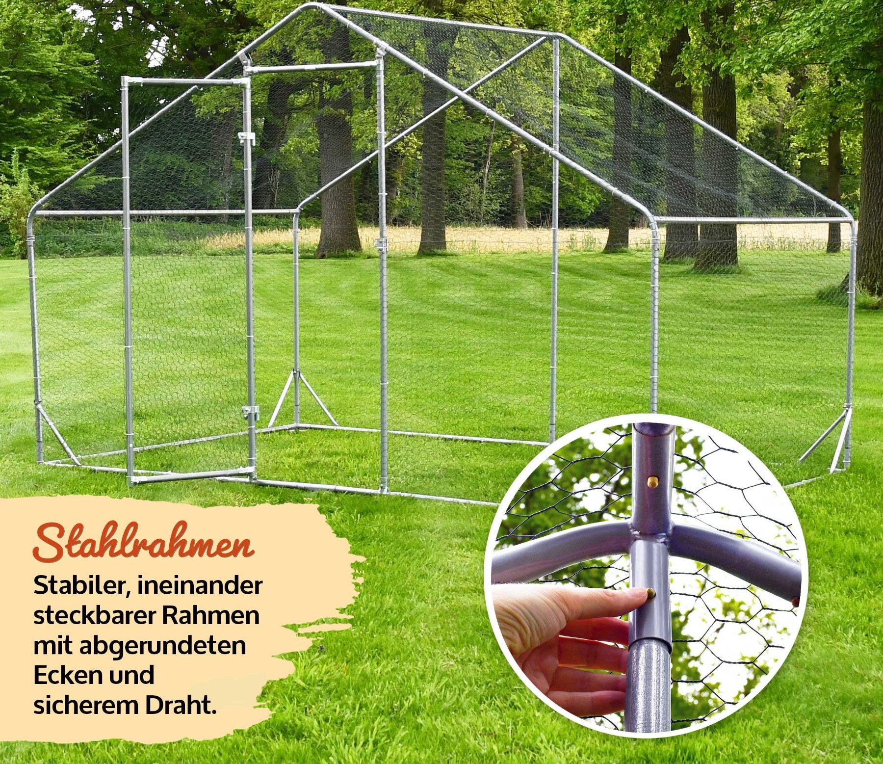 200x200x195cm Hund Katze Hühner Kaninchen Enten Küken usw - Info zu diesem Artikel Bitte beachten!! Das Geflecht Gitter kommt auf einer Rolle und muss somit zugeschnitten werden!!! Hühnervoliere Metall »L« Das L Freilaufgehege aus Metall ist die ideale Lösung für die artgerechte Haltung von Hühnern,