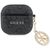 Guess Hülle Case AirPods 4 Guess Kunstleder grau Logo Metal Kette Strass goldfarbig