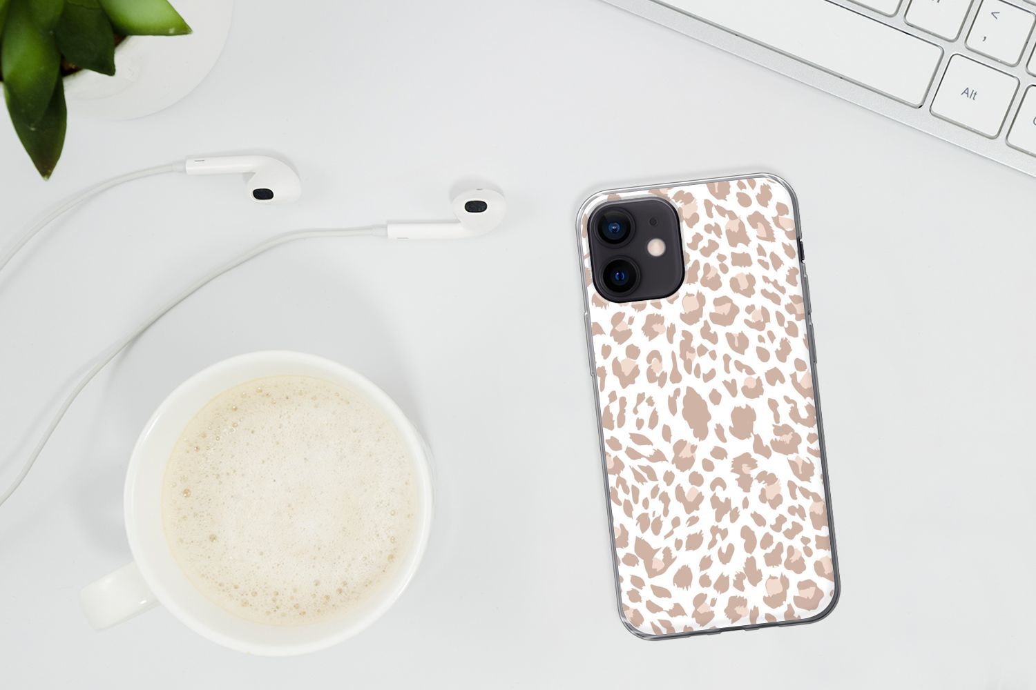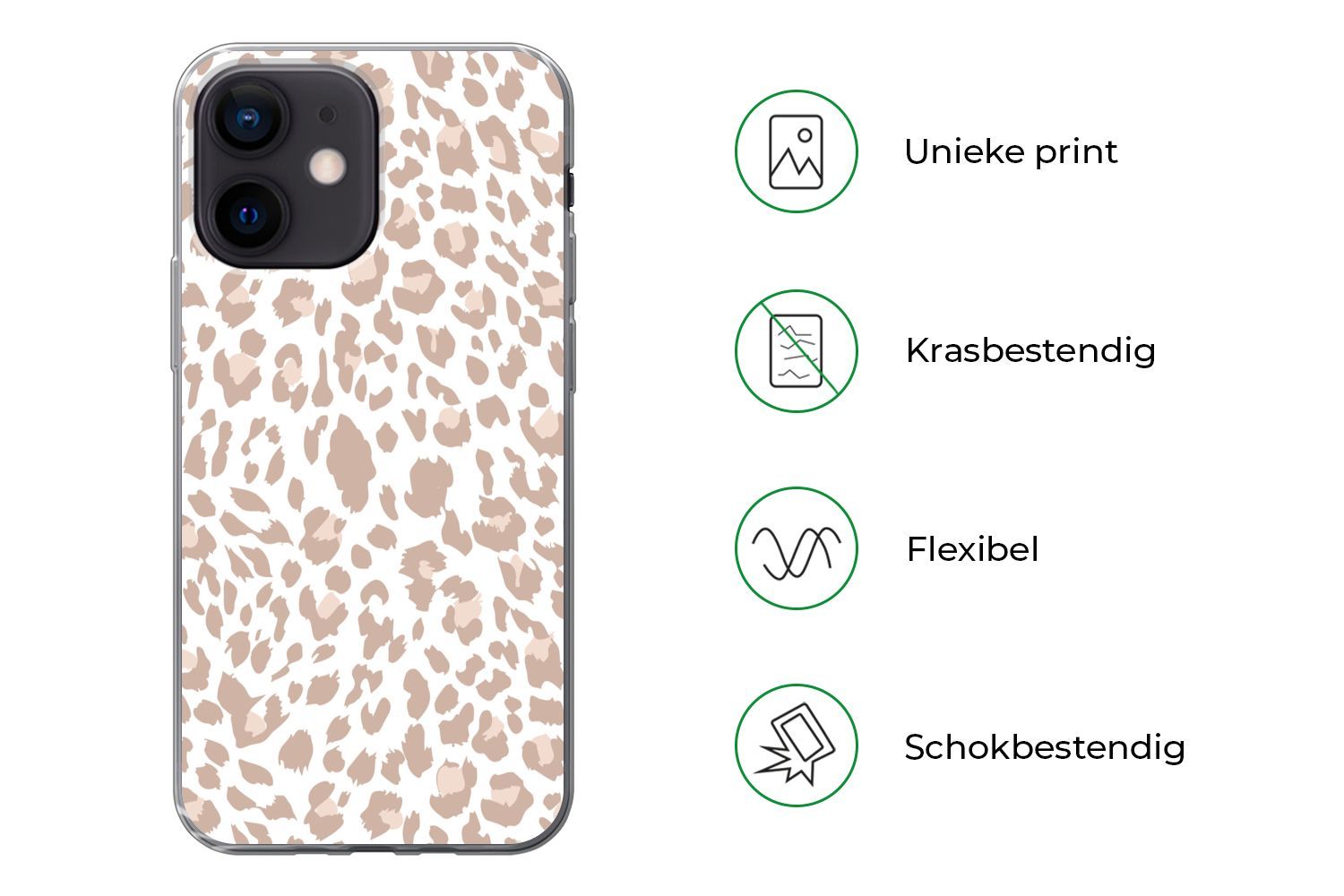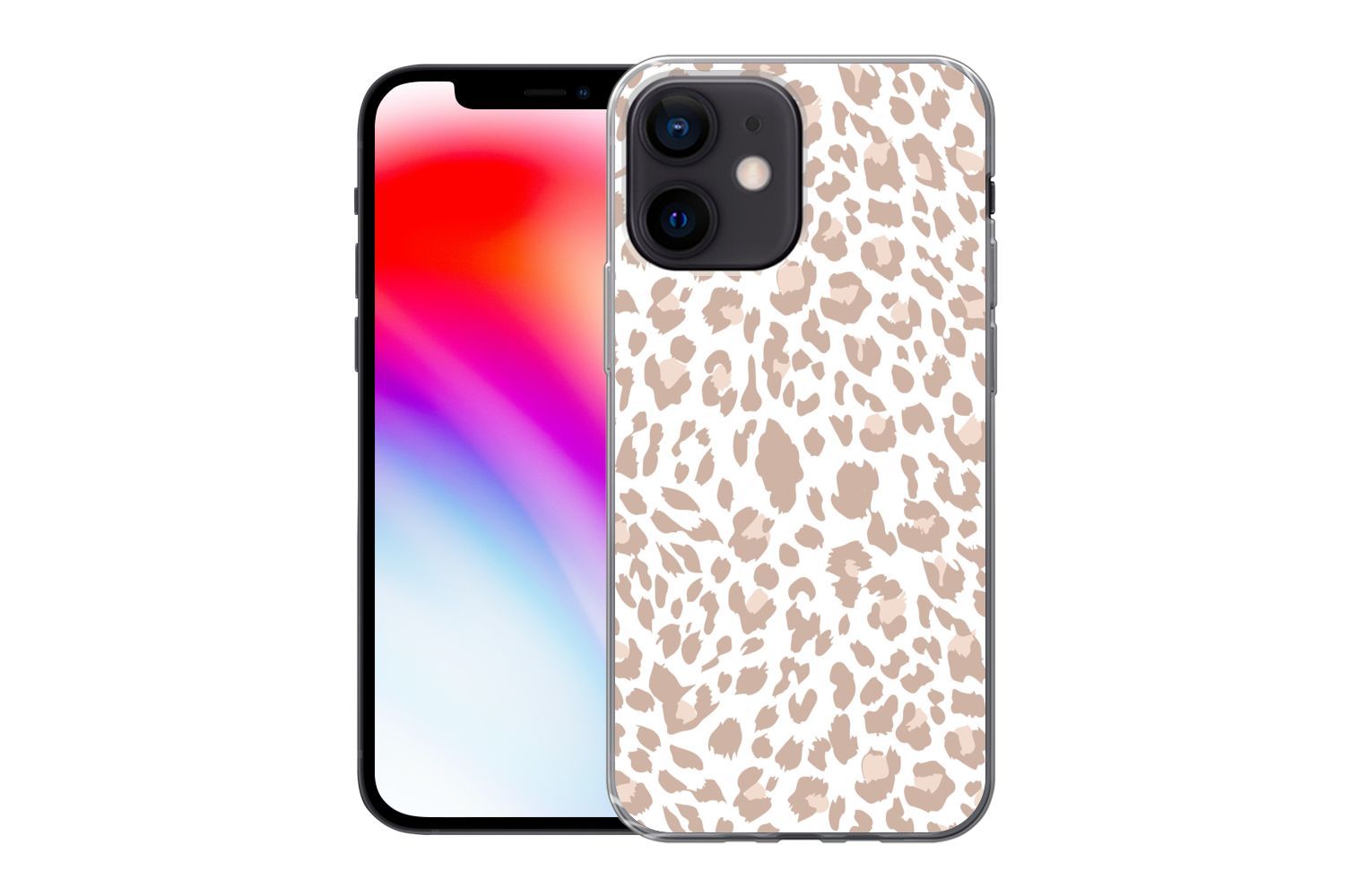 Hülle für iPhone 12 mini - Pantherdruck - Rosa - Pastell - Weiß - Silikone