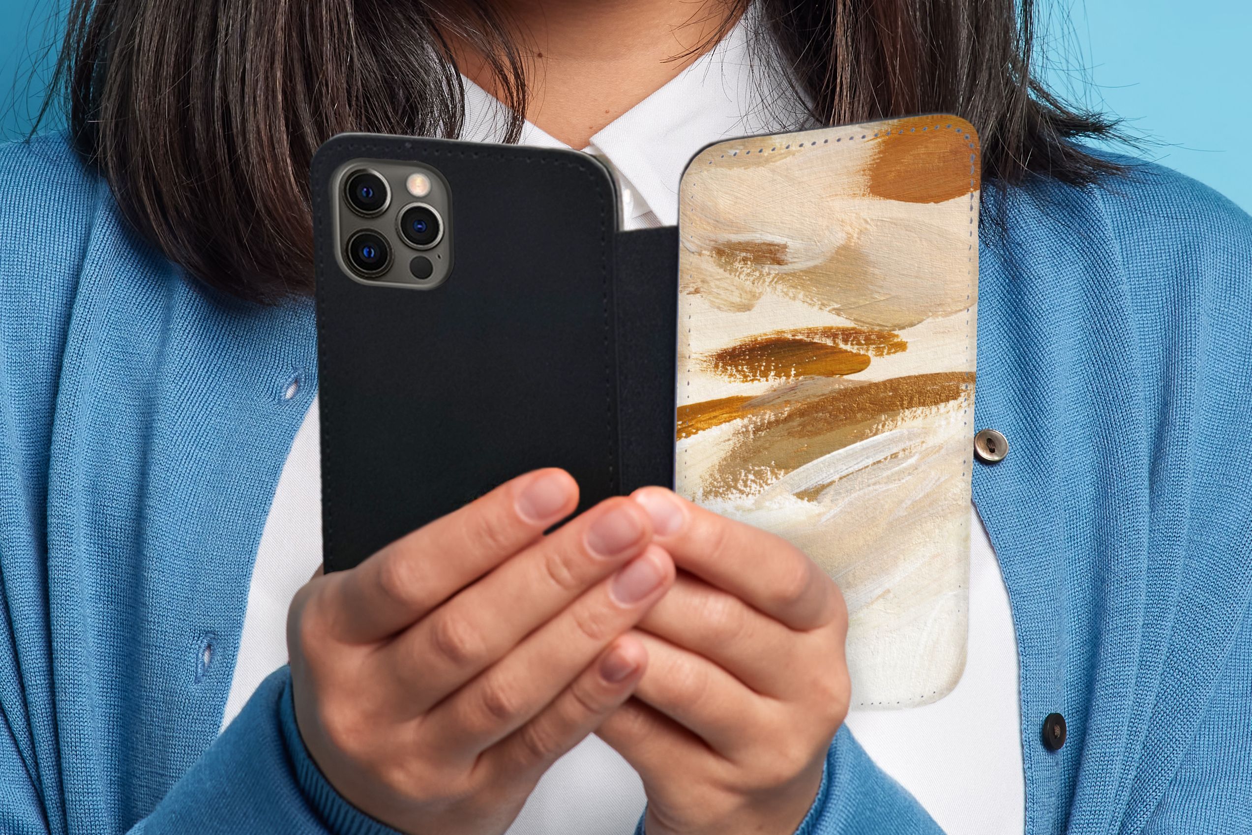 Hülle für iPhone 12 Pro - Farbe - Beige - Weiß - Flipcase