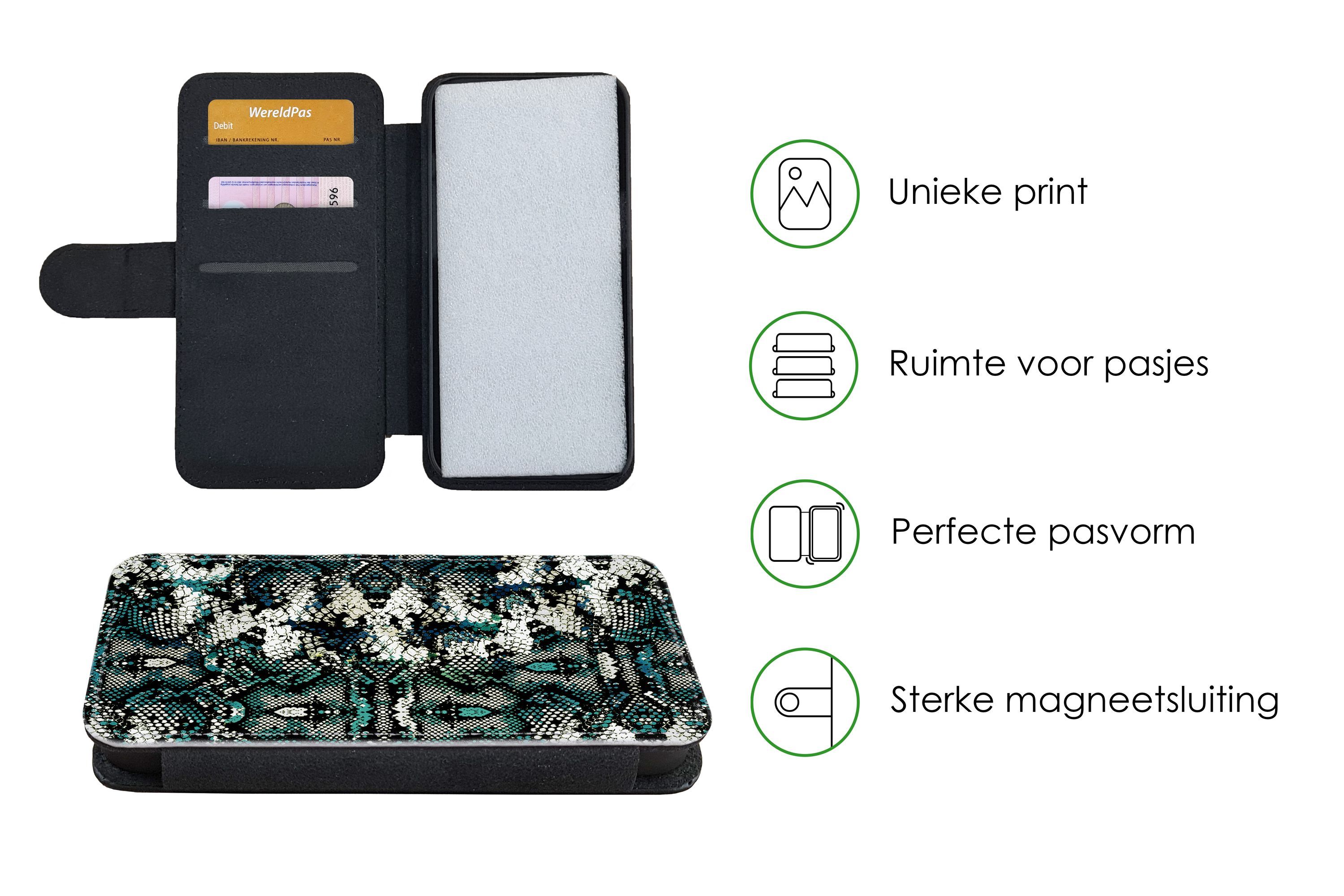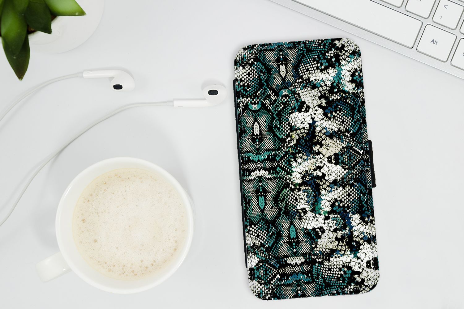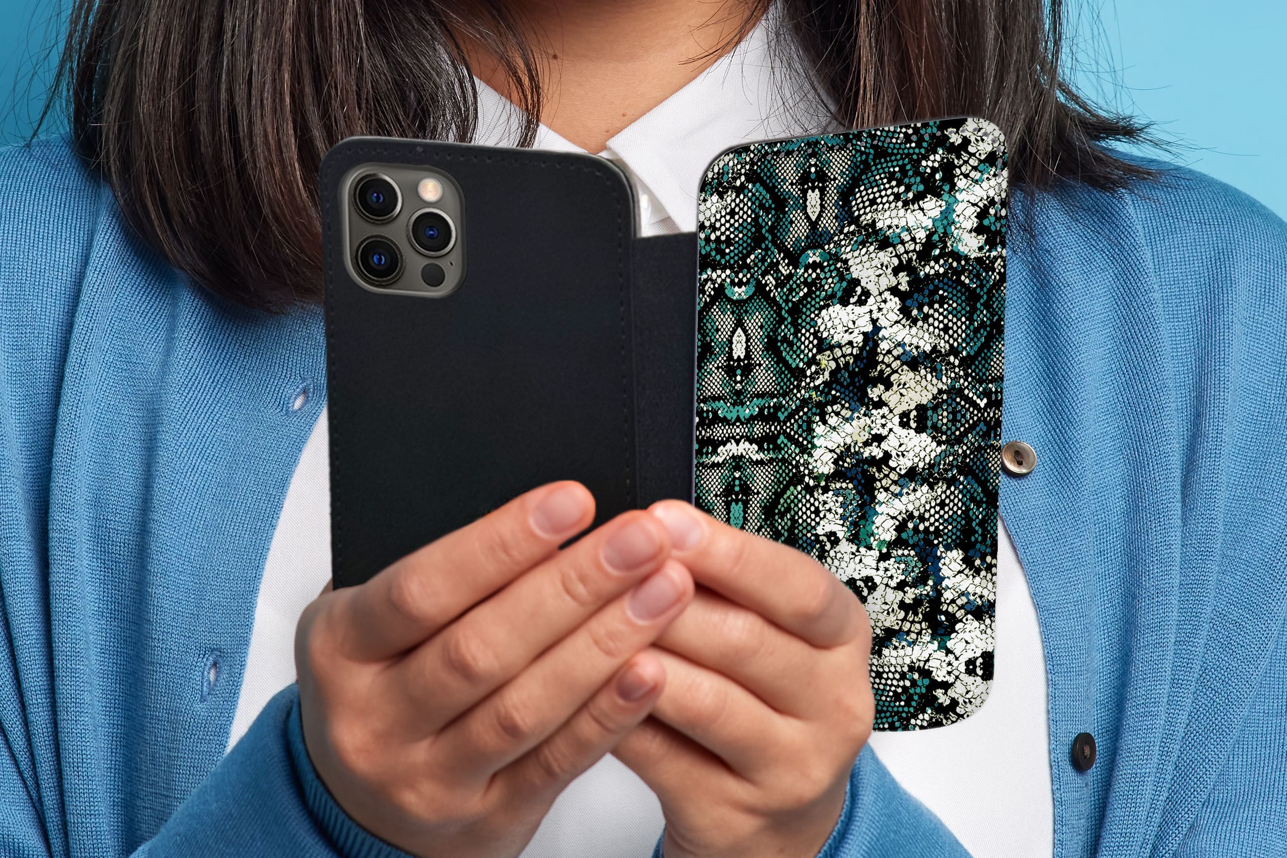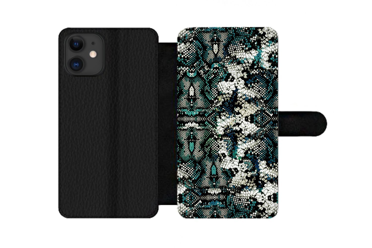 Hülle für iPhone 12 Pro - Tiermuster - Weiß - Türkis - Flipcase