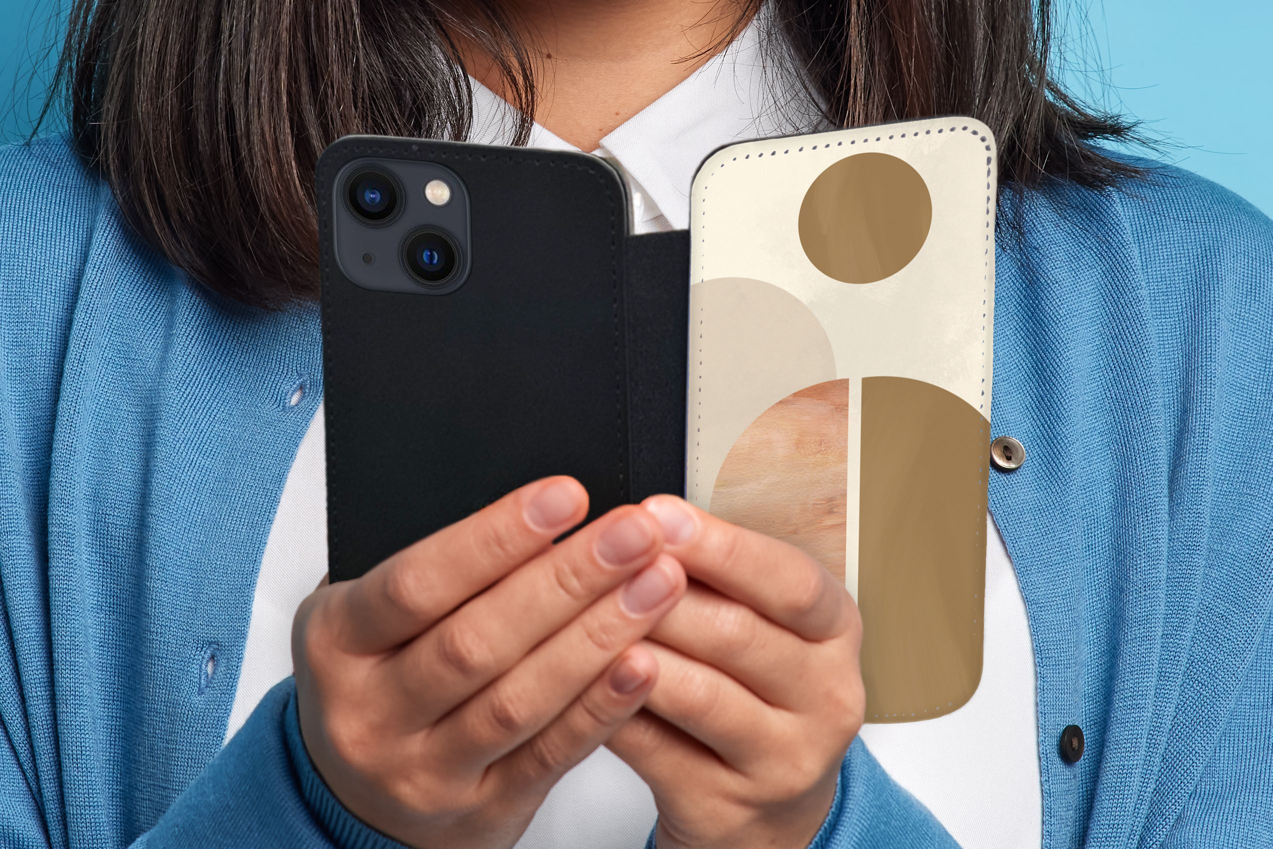 Hülle für iPhone 13 - Rosa - Braun - Design - Flipcase