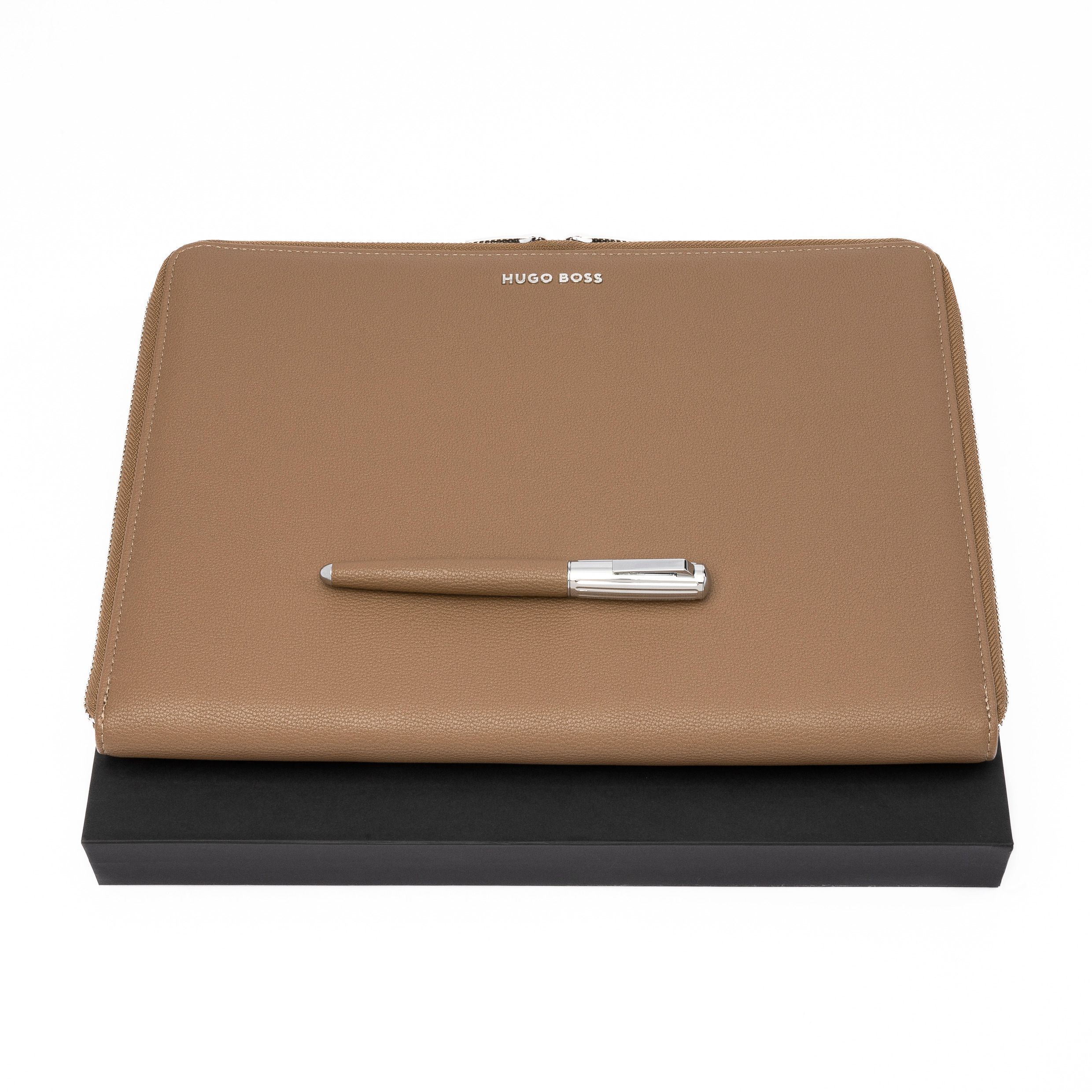 HUGO BOSS HUGO BOSS Set Iconic Pebbled Camel (füllfederhalter & A4 konferenzmappe)