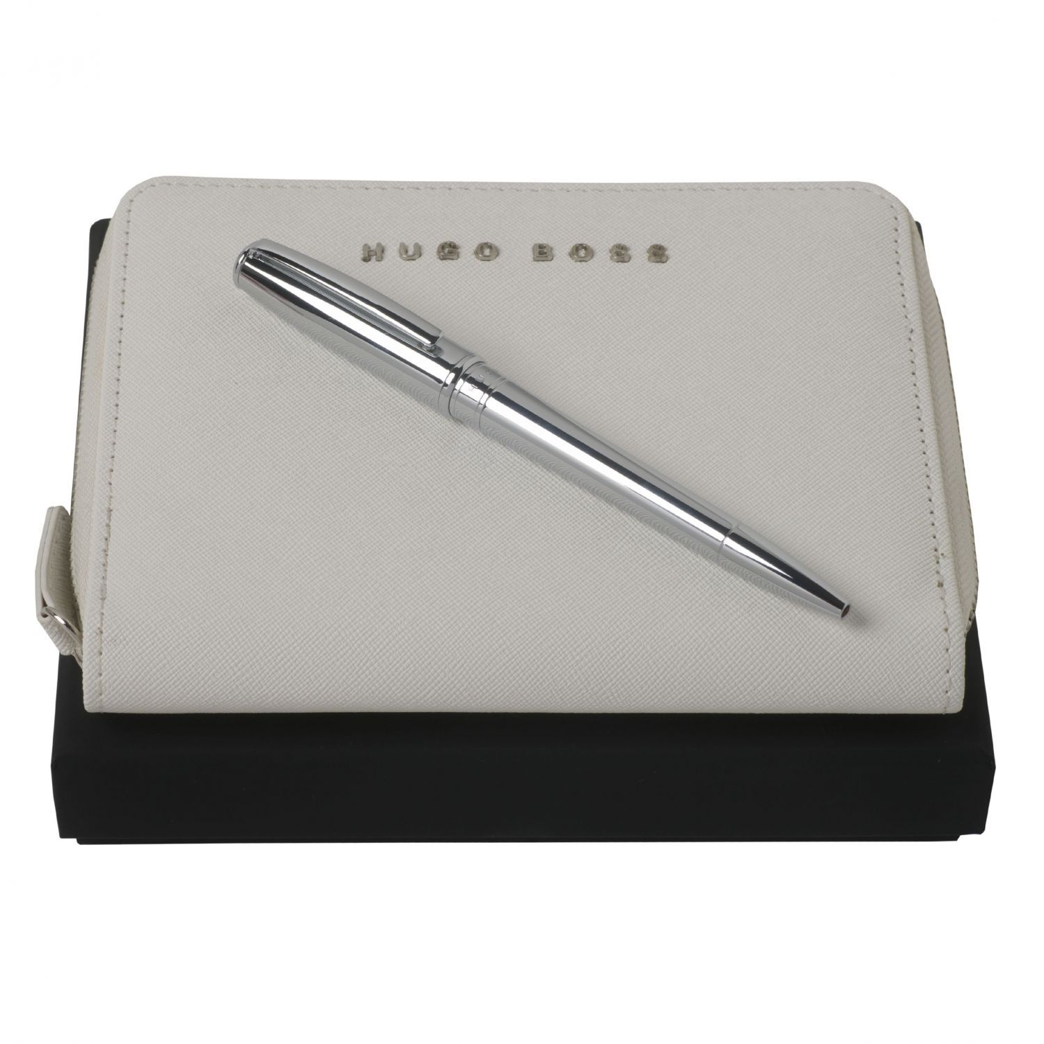 Hugo Boss Set "Trilogy" Kugelschreiber chrom und Schreibmappe A6