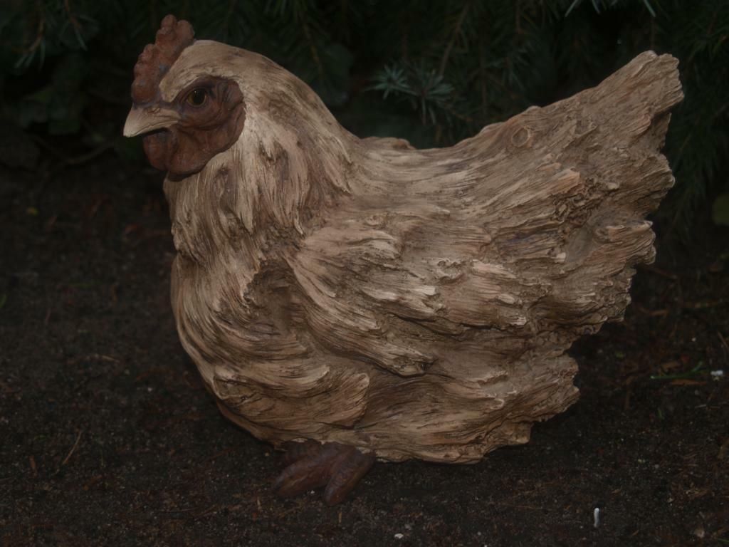 Huhn Deko Figur groß wetterfest Holzoptik Skulptur Gartenfigur Hahn Hotant NEU