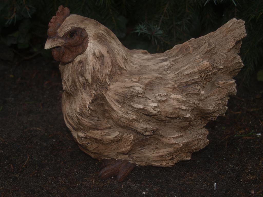Huhn Deko Figur wetterfest Holzoptik Skulptur Gartenfigur Hahn Hotant Neuheit