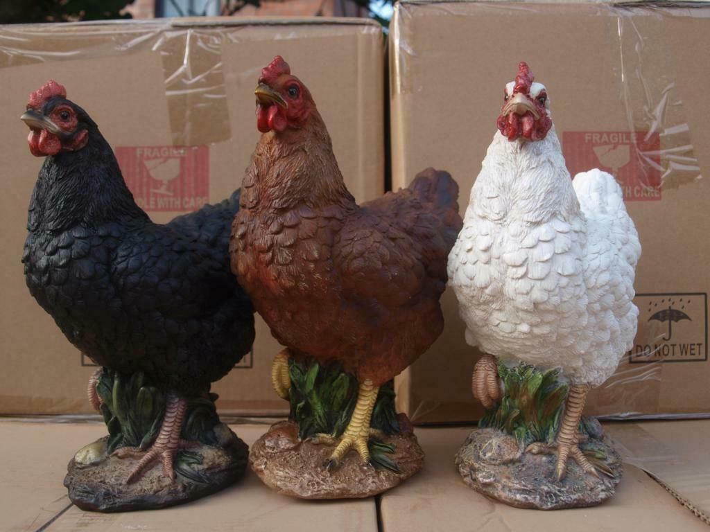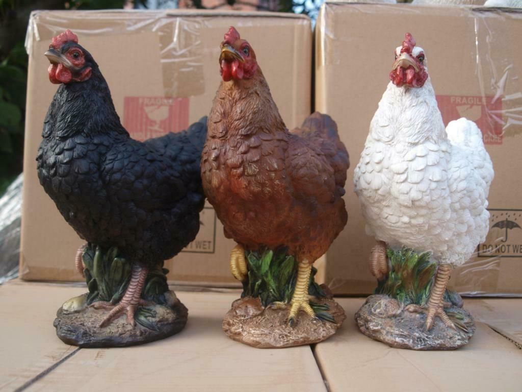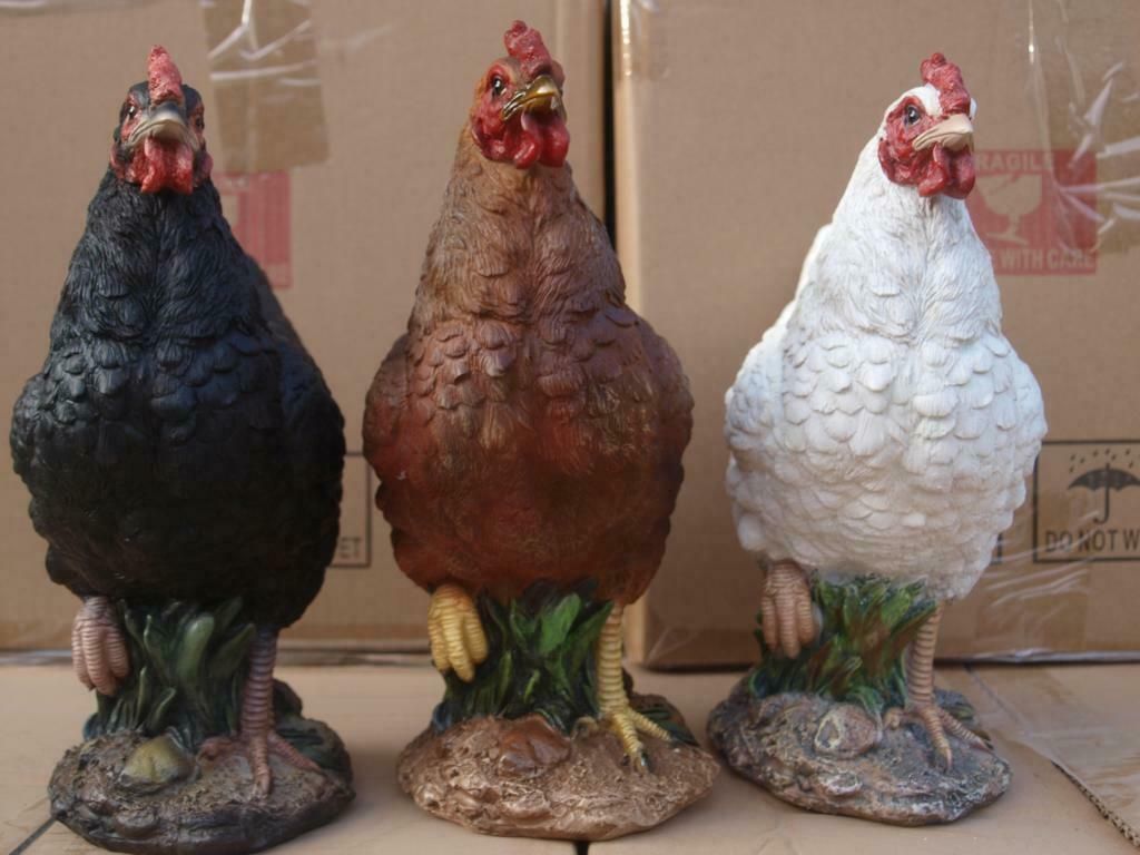 Huhn Hahn Henne Deko Figur 27cm Einzelnt o. SET natürlich Gartenfigur HOTANT