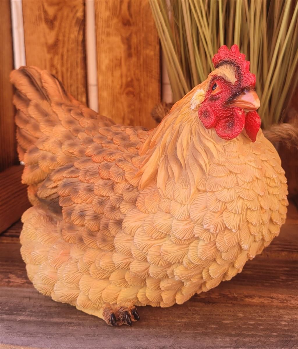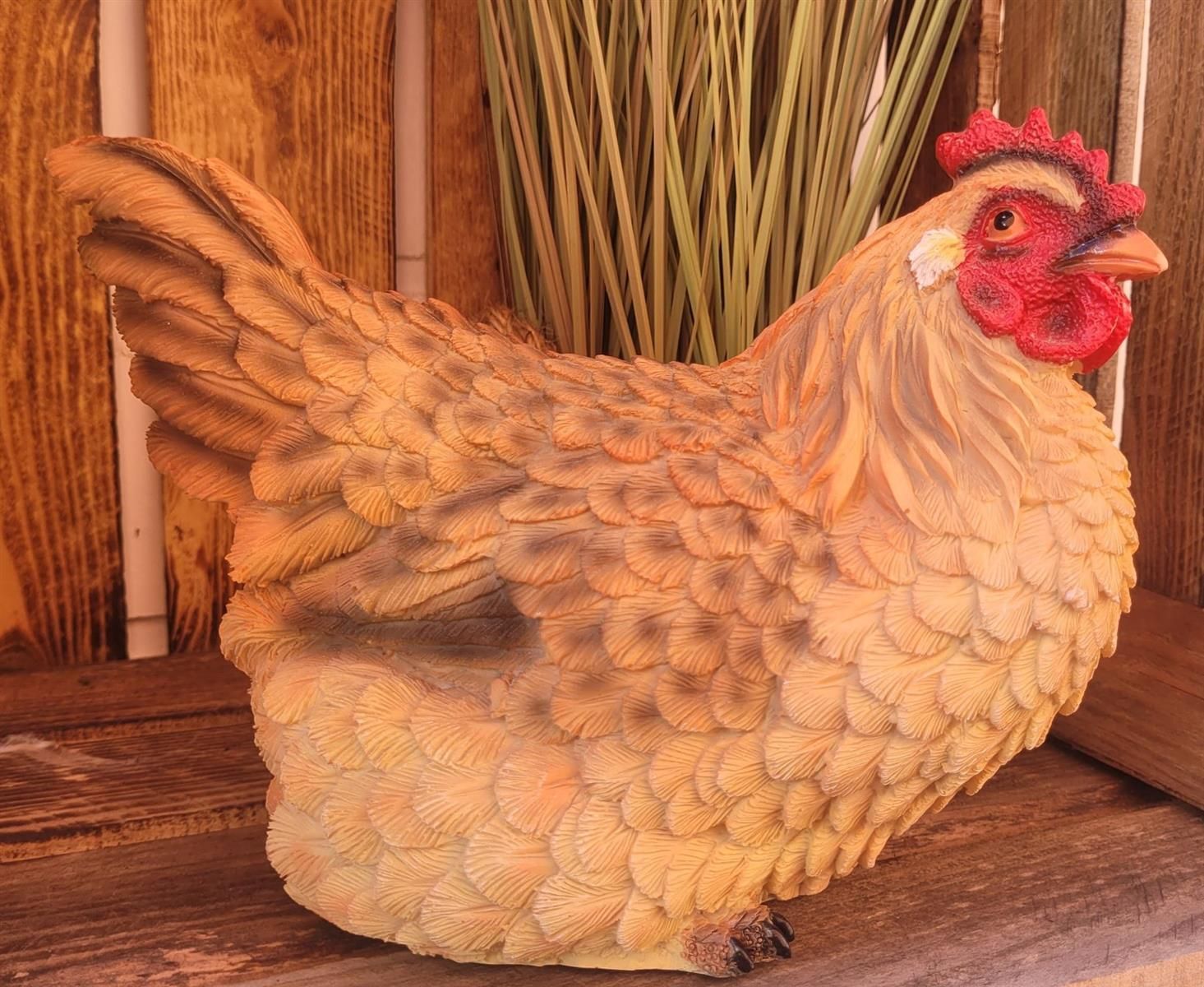 Huhn liegend Tierfigur Dieses charmante Huhn bringt ländlichen, frühlingshaften Zauber in Ihr Zuhause und Ihren Garten. Mit liebevollen Details und einer naturgetreuen Gestaltung setzt es einen besonderen Akzent, sei es als Dekoration zu Ostern, oder ganzjährig in Haus und Garten. Im Landhausstil ge