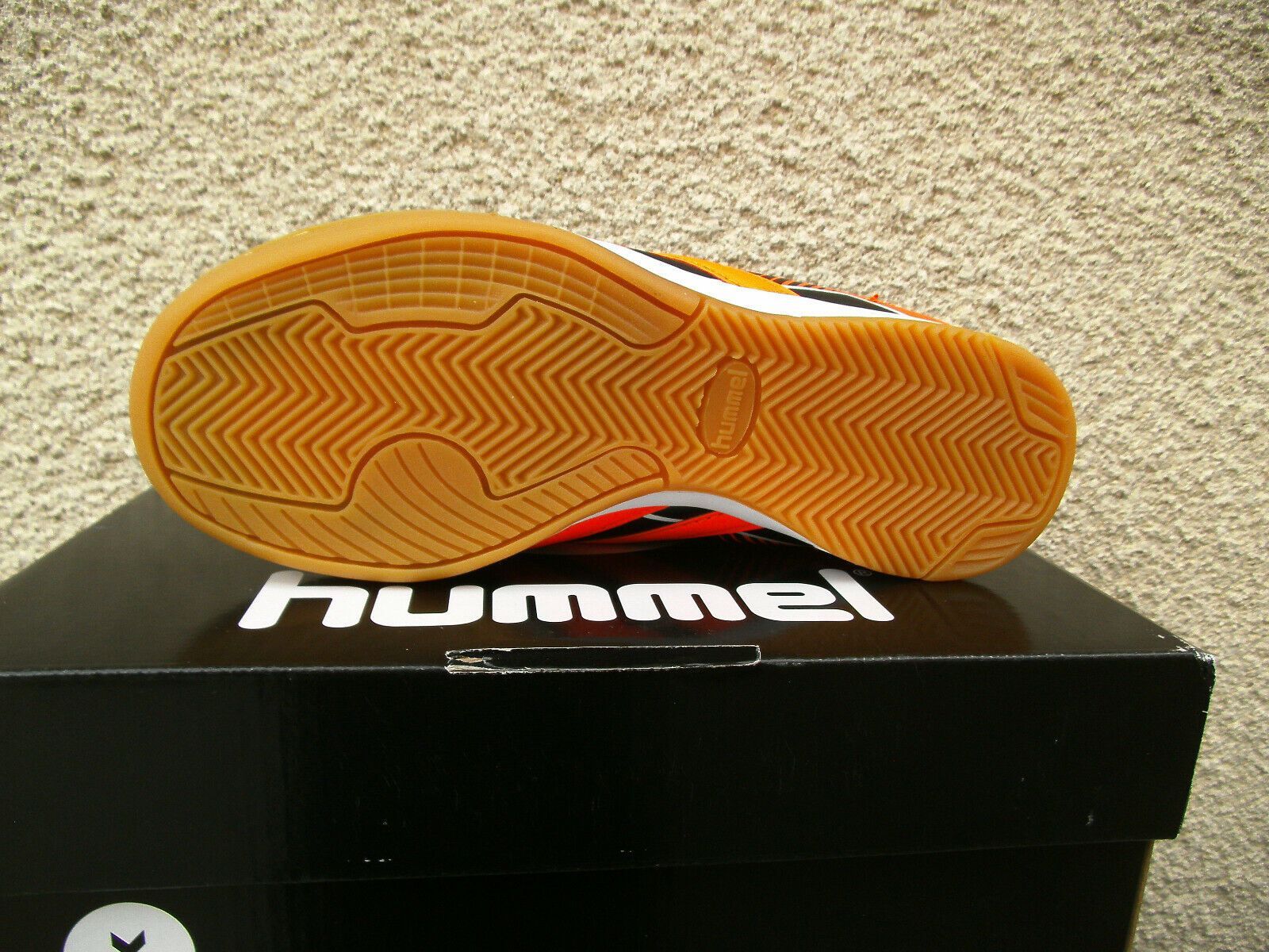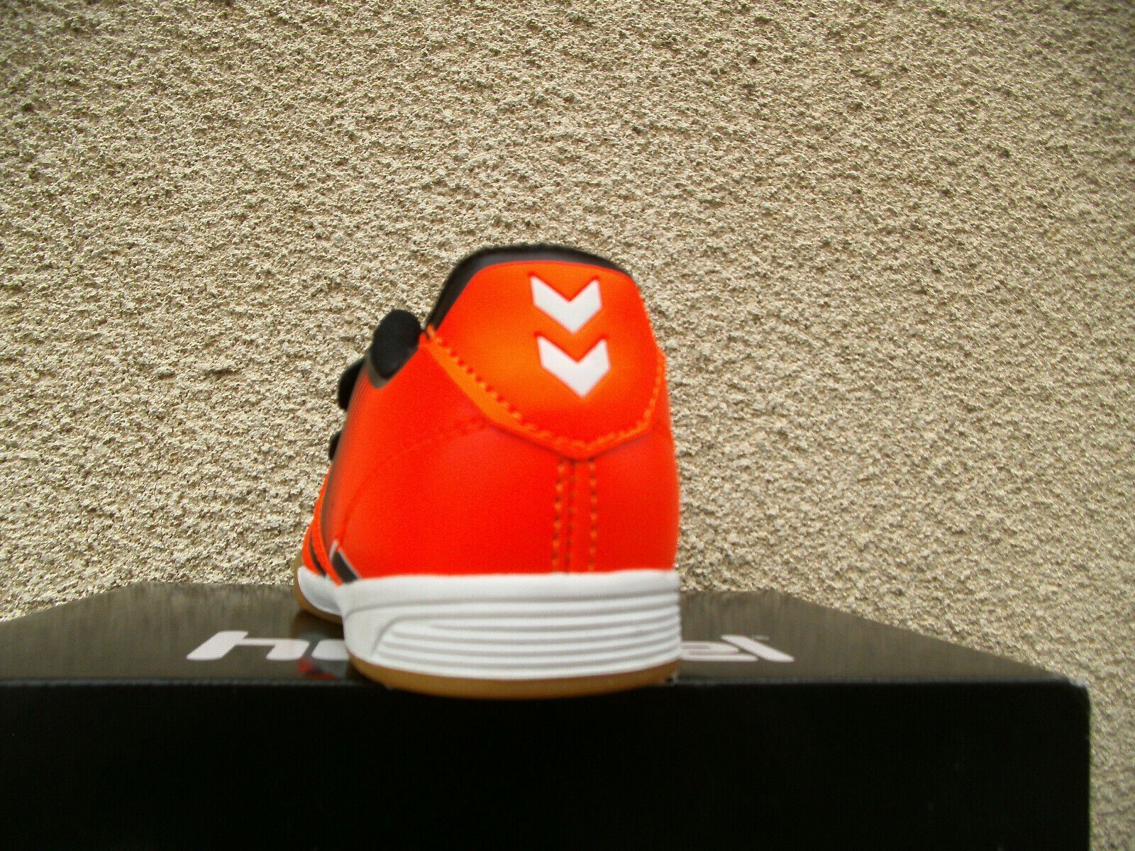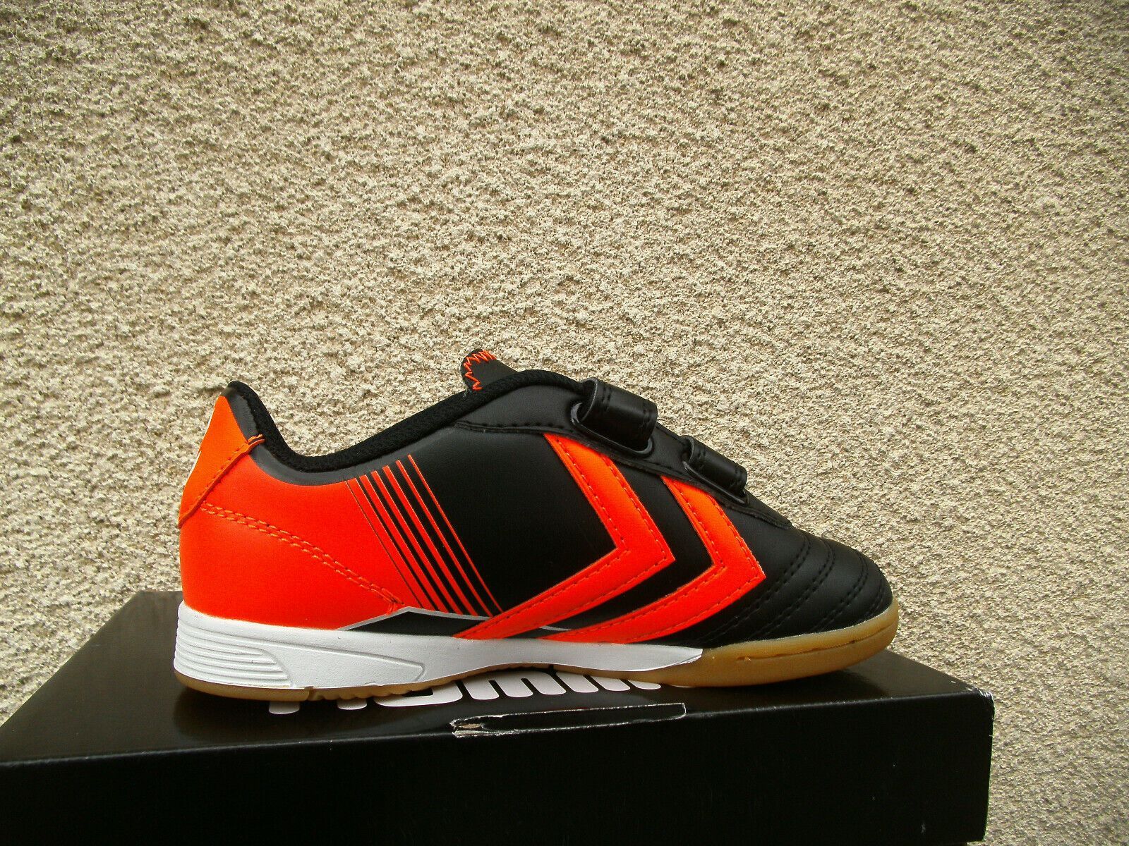 Hummel Saga Junior Hallenschuhe mit praktischen Klettverschlüssen Farbe: Schwarz - Orange (172216 830) Ob Schule, KITA, Verein oder in der Freizeit. Diese klassichen Hallenschuhe können zu allen Sport- und Freizeitaktivitäten genutzt werden. Die robuste, flexible und abriebfeste Sohle aus Naturkauts