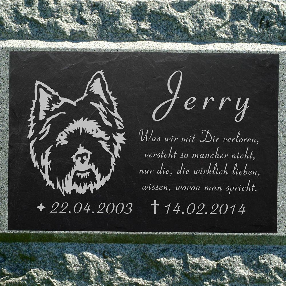 HUND-015 Grabschmuck WEST Highland Terrier Westi Grabstein - IHR TEXT - 20x15 cm