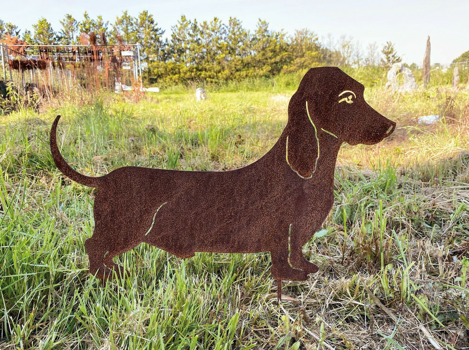 • Hund Bastian Rauhhaardackel 42x72cm Gartenstecker Rauhaardackel Dackel Edelrost