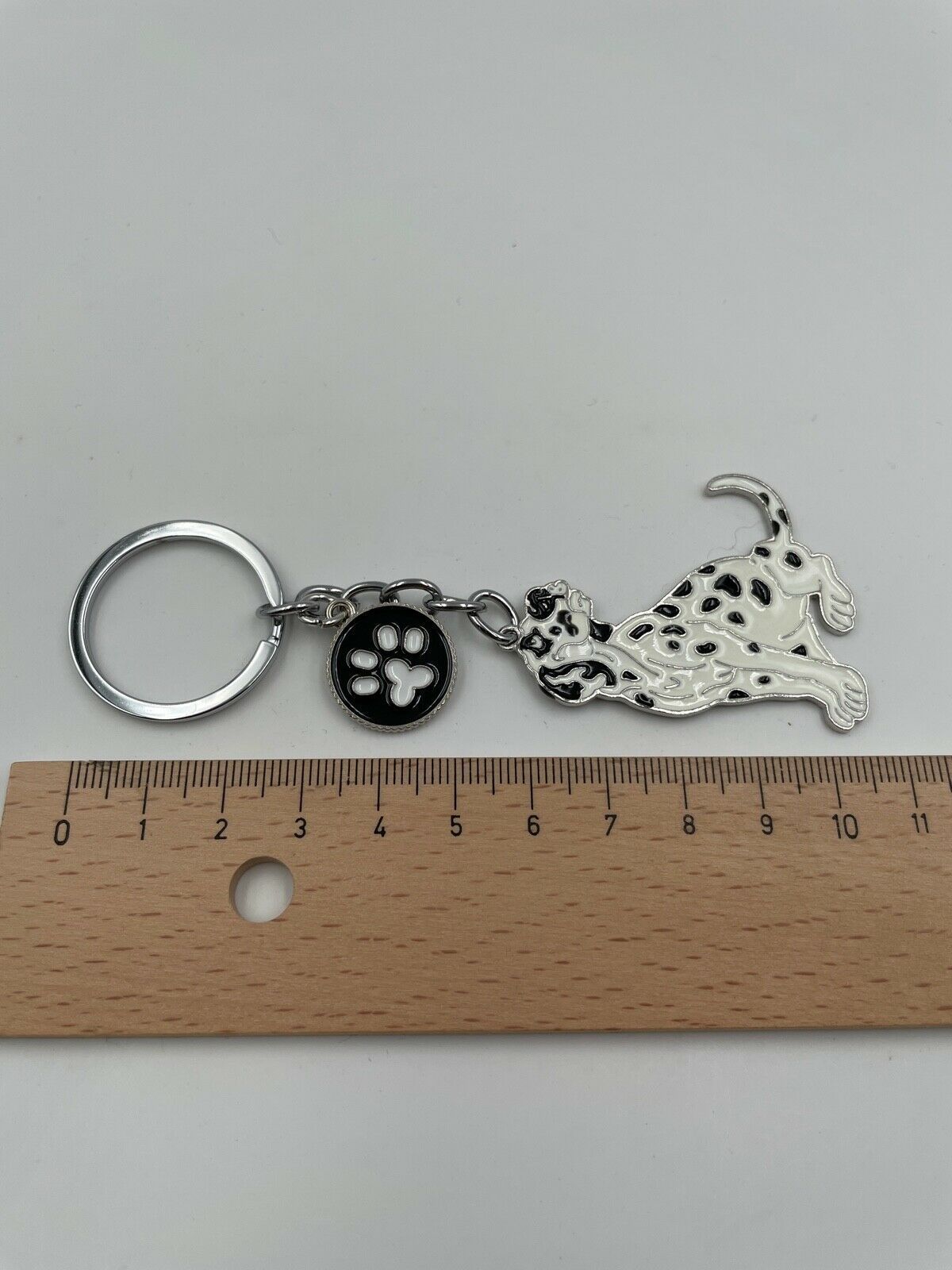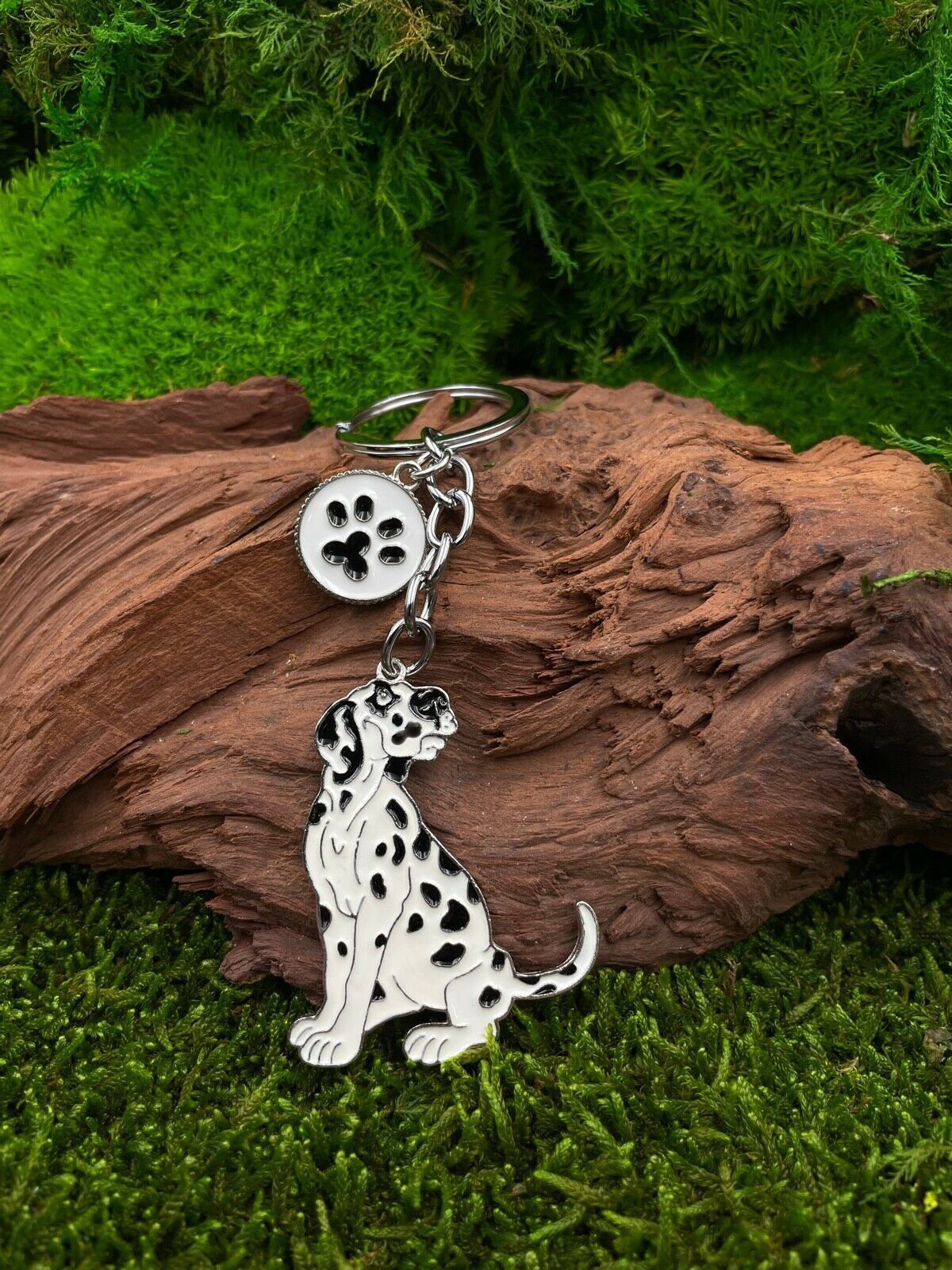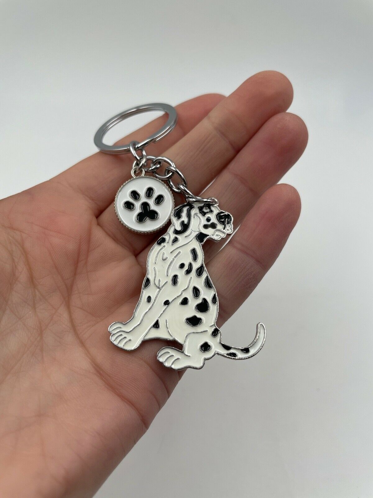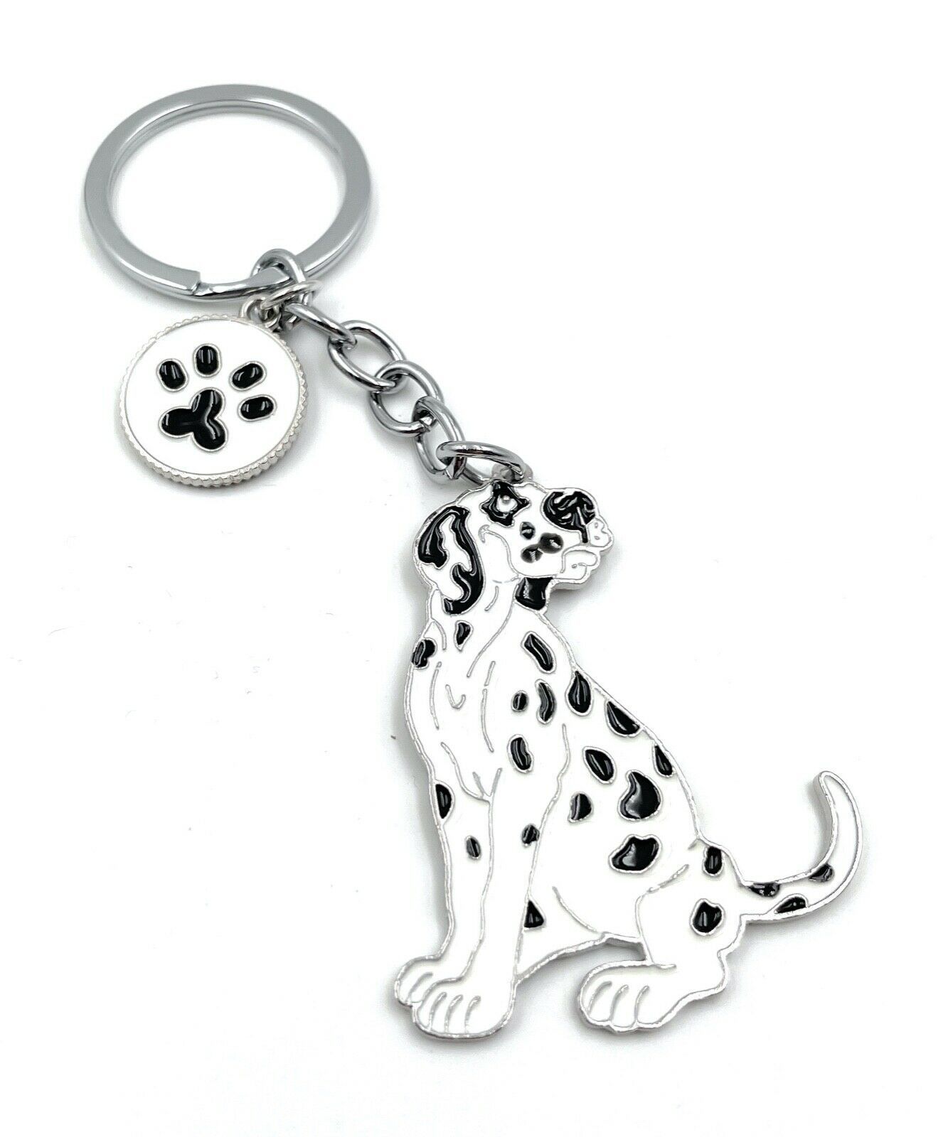 Hund Dalmatiner gefleckt Schlüsselanhänger aus Metall Glücksbringer silber