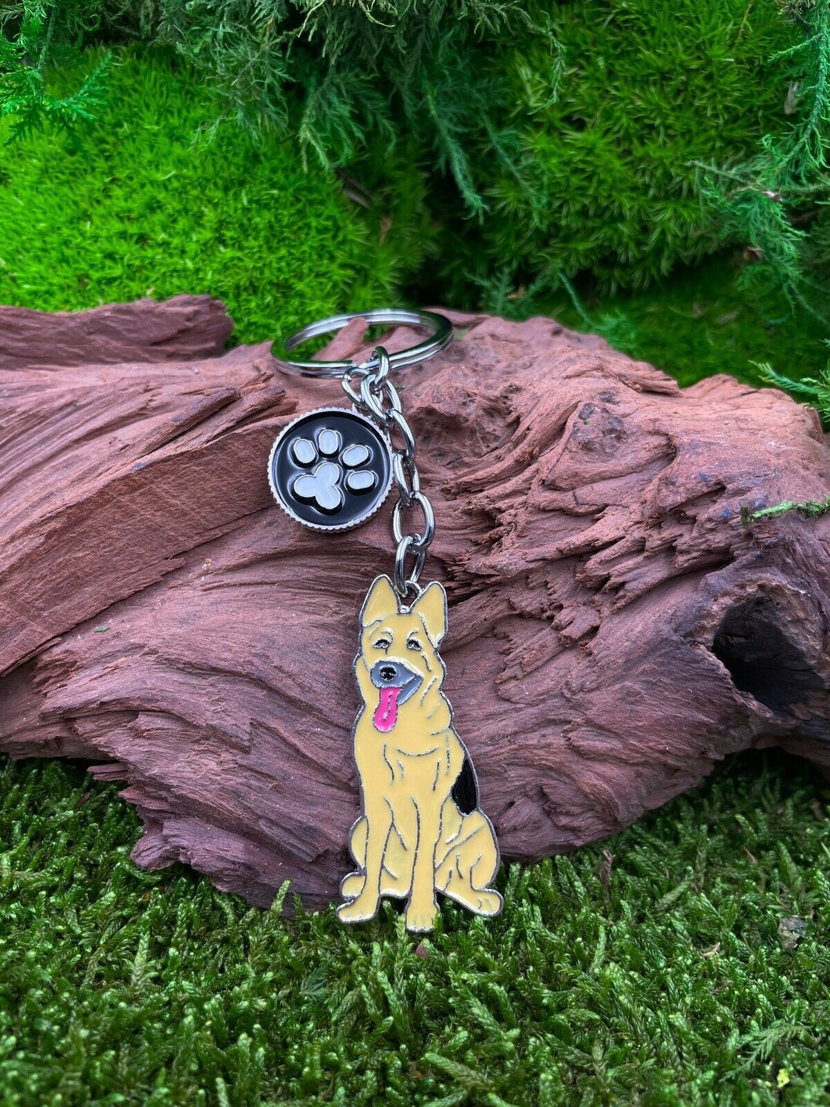 Hund Schäferhund deutsch Schlüsselanhänger aus Metall Glücksbringer silber