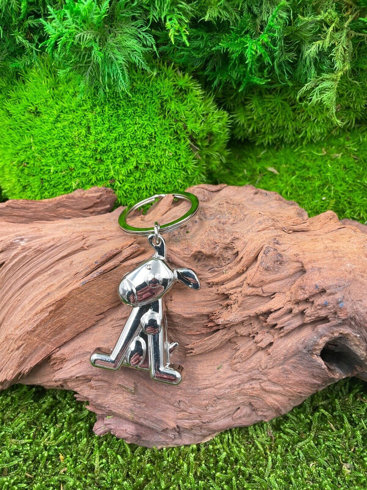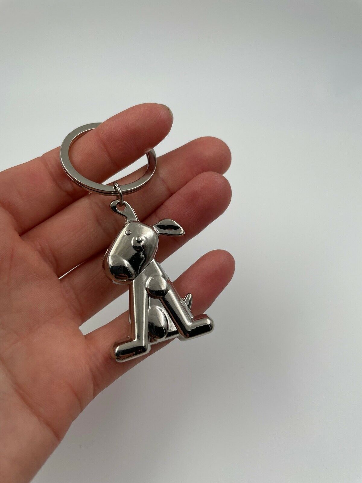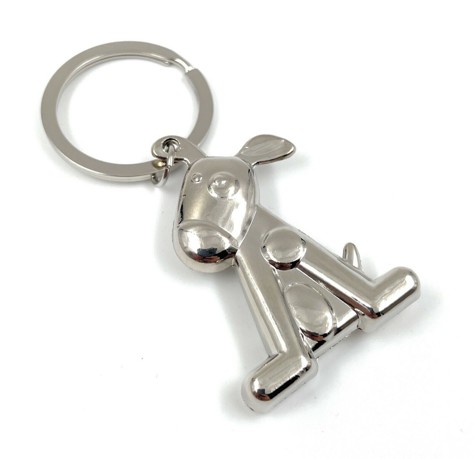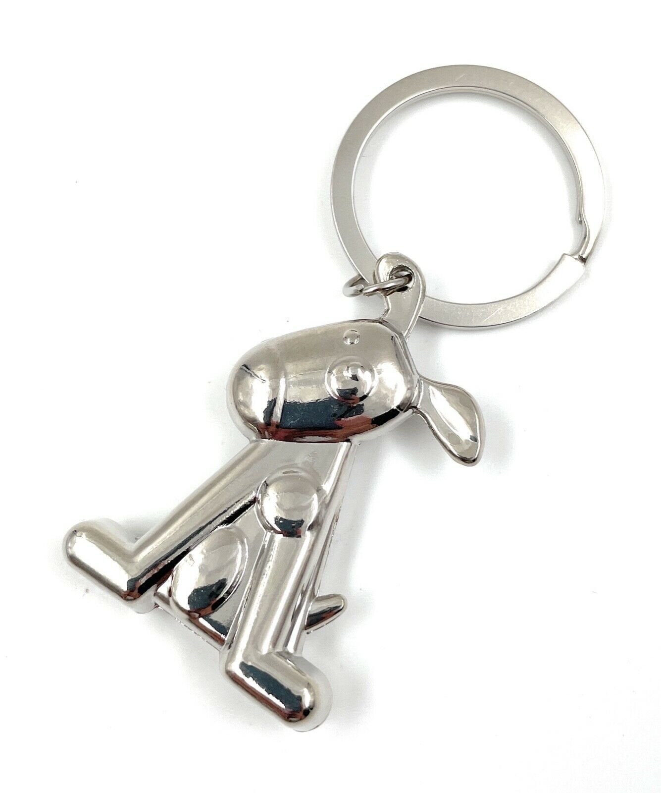 Hund sitzend mit Schlappohren Schlüsselanhänger Keychain Silber Metall