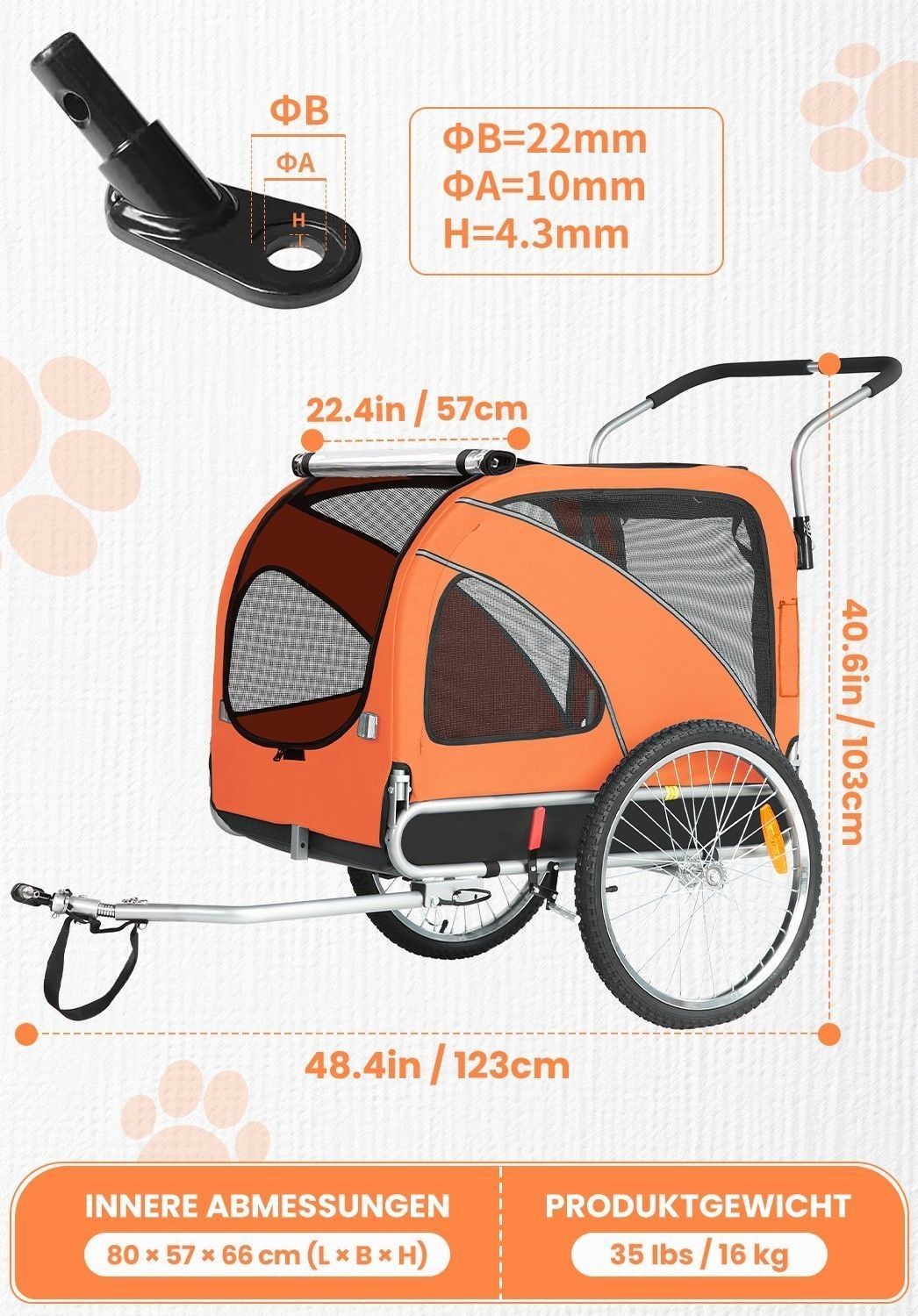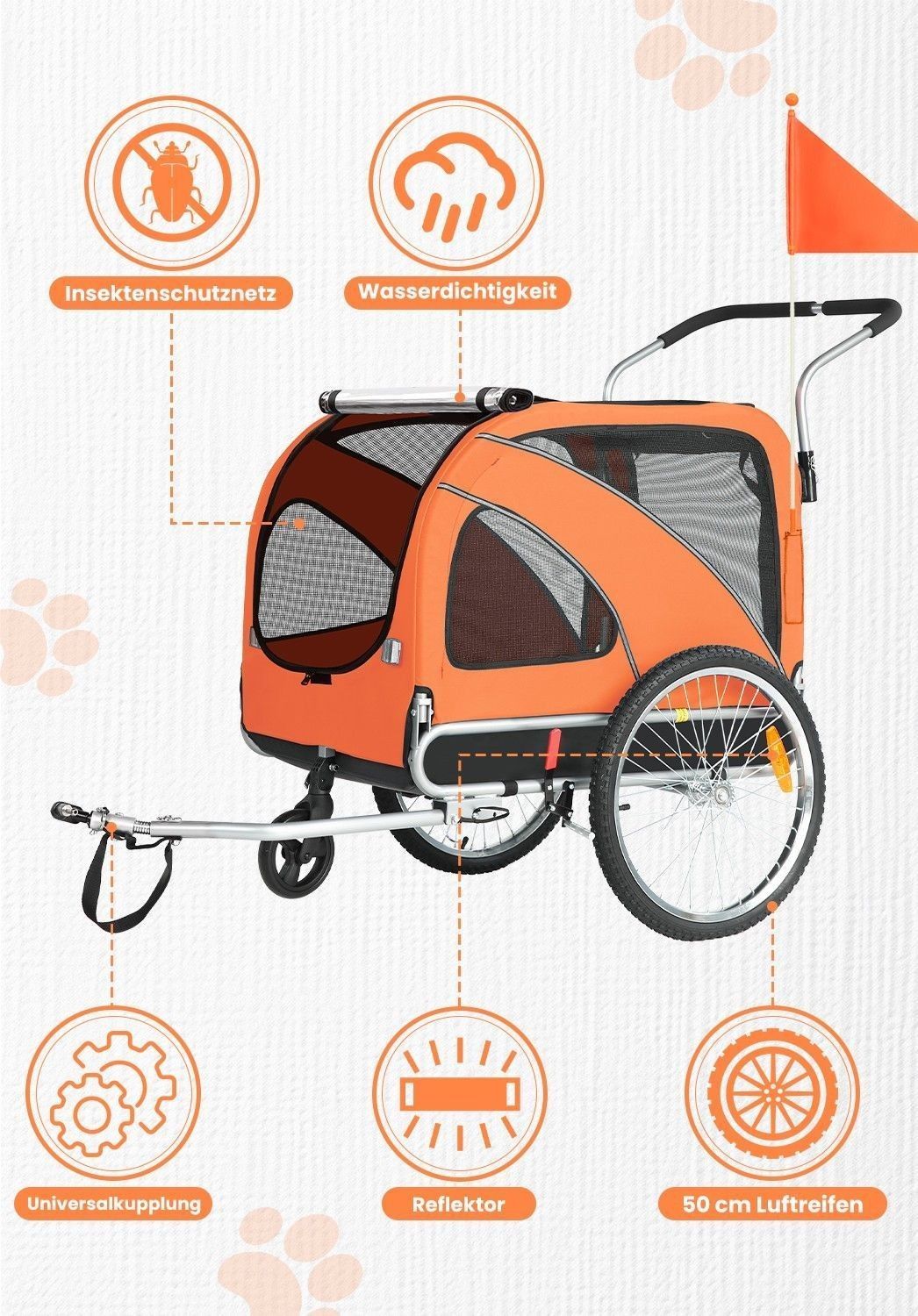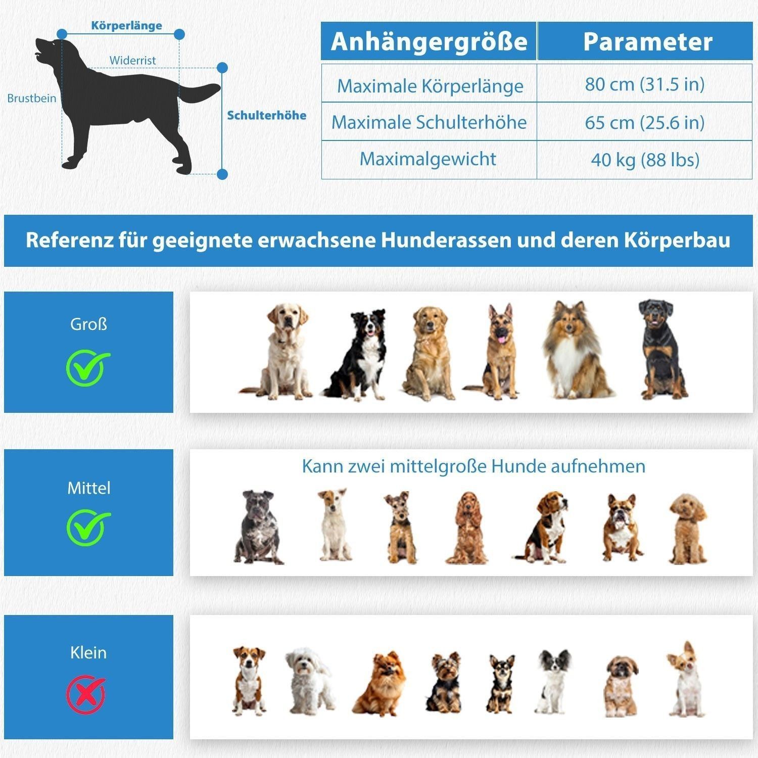 Hunde Fahrradanhänger XL, 2 in 1 Hundeanhänger & Jogger bis zu 40 kg Faltbar