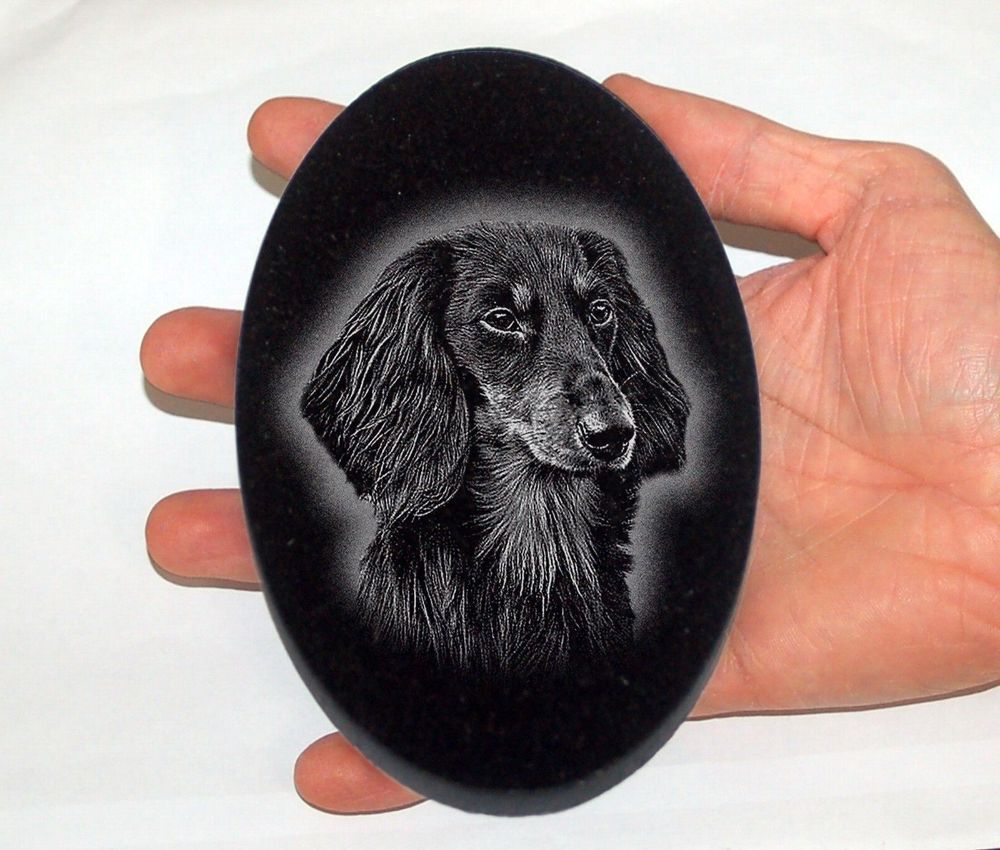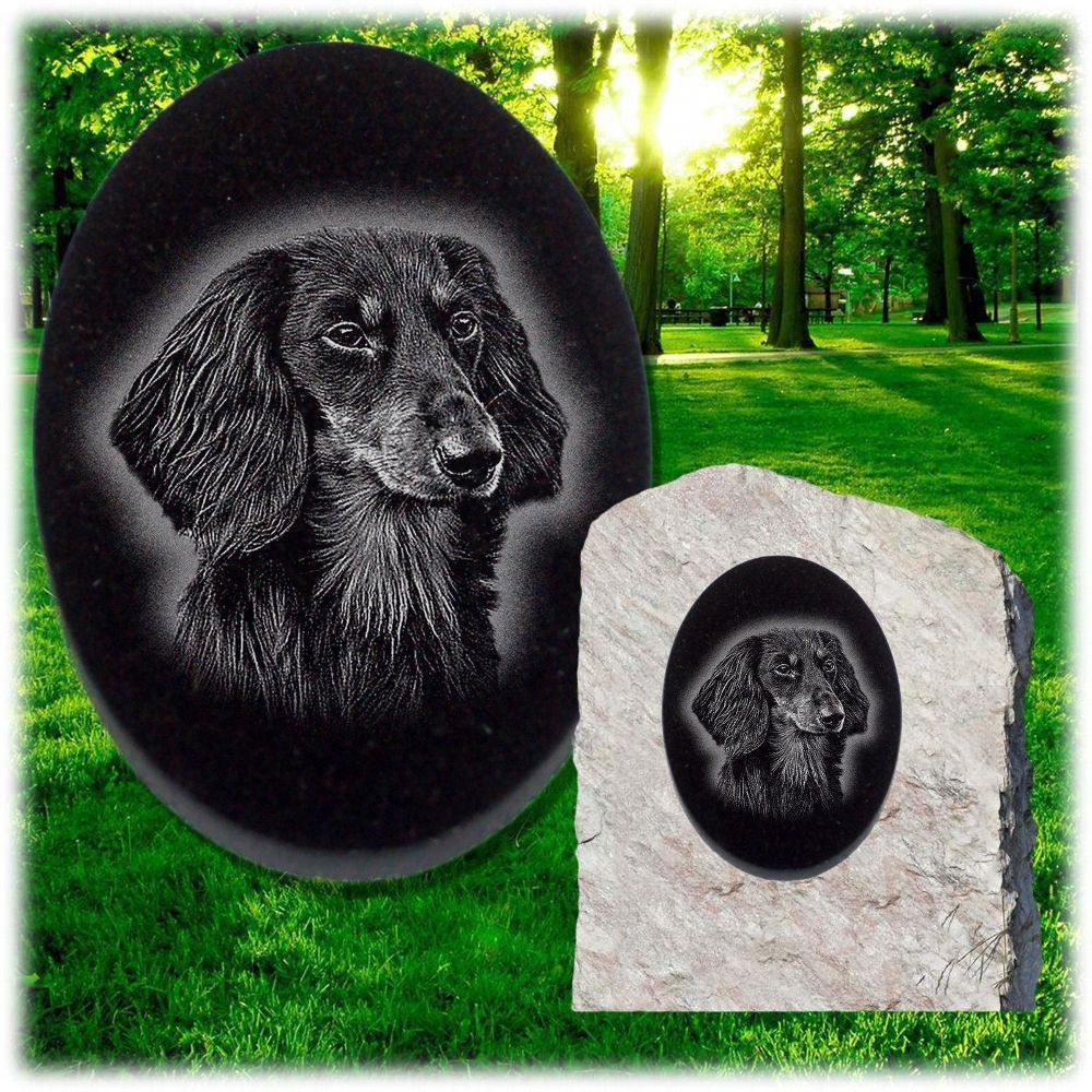 Hunde Grabplatte Grabschmuck 15 x 10 cm -Foto - Gravur- Grabstein oval-gb02