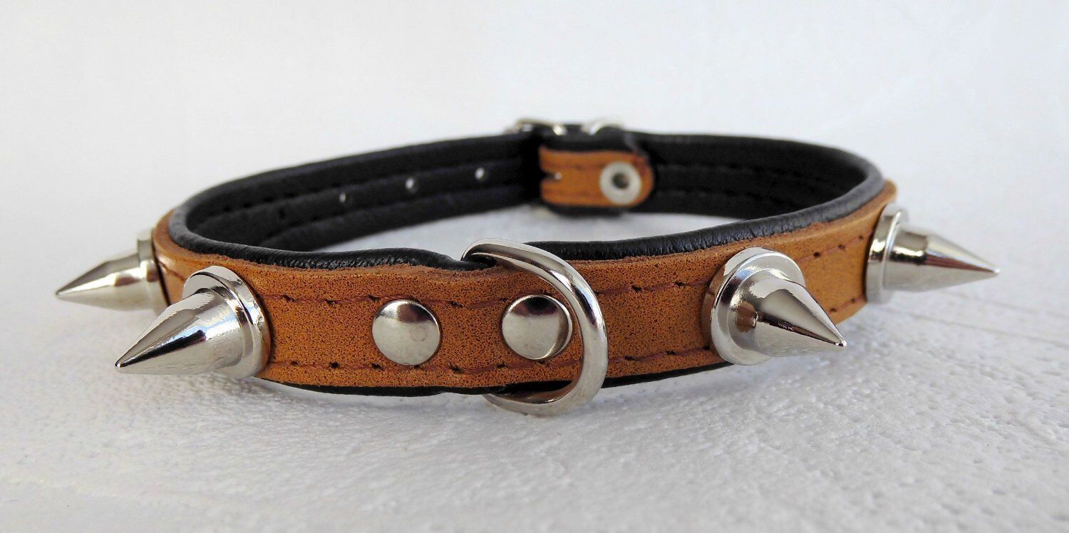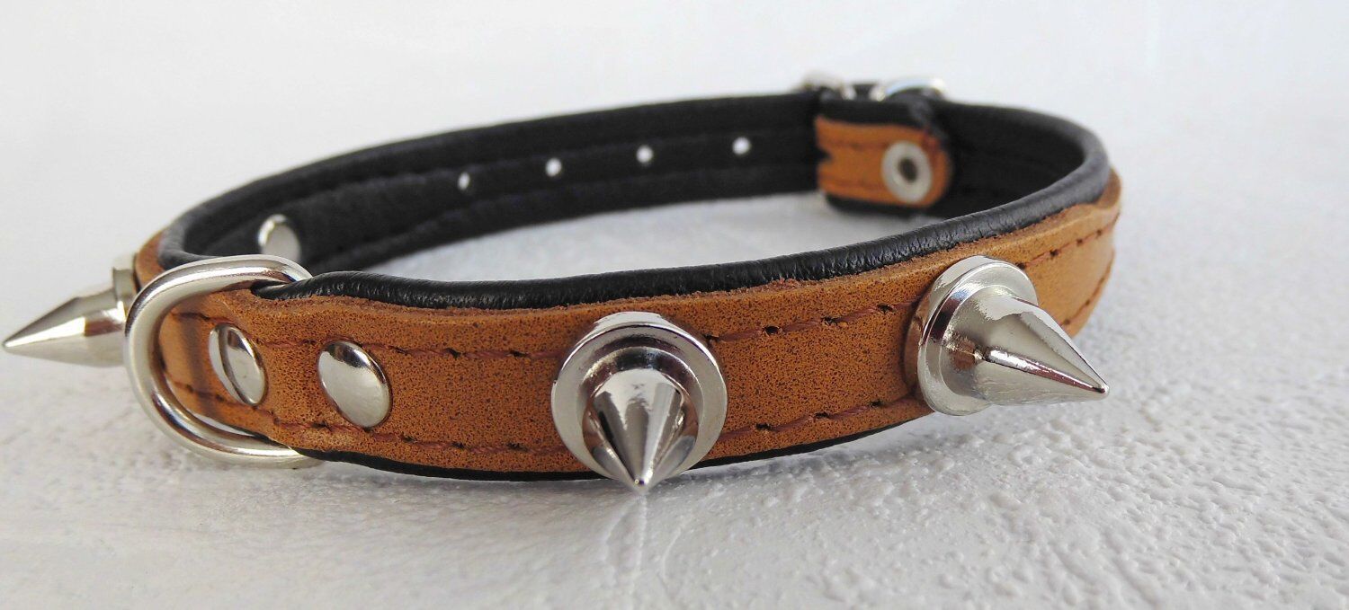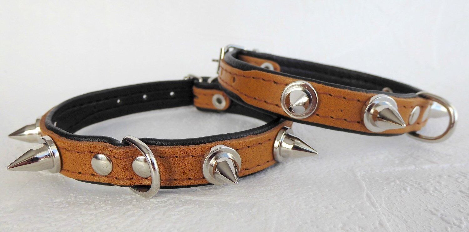 HUNDE Halsband - Halsumfang 21-26,5cm; Leder + Stacheln * für kleine Hunde (2-40)