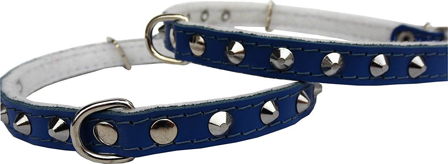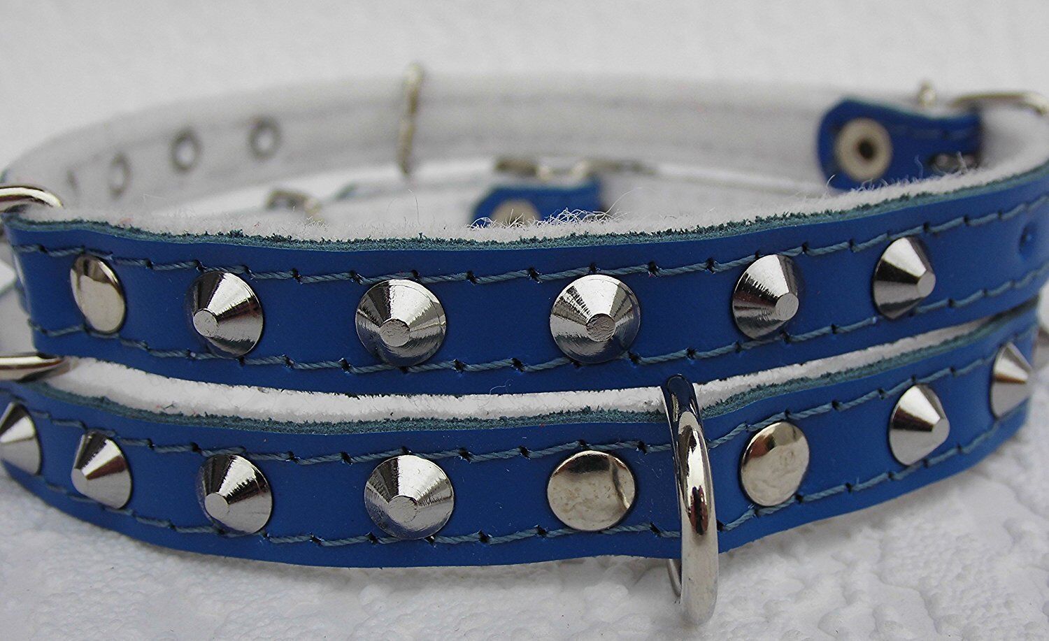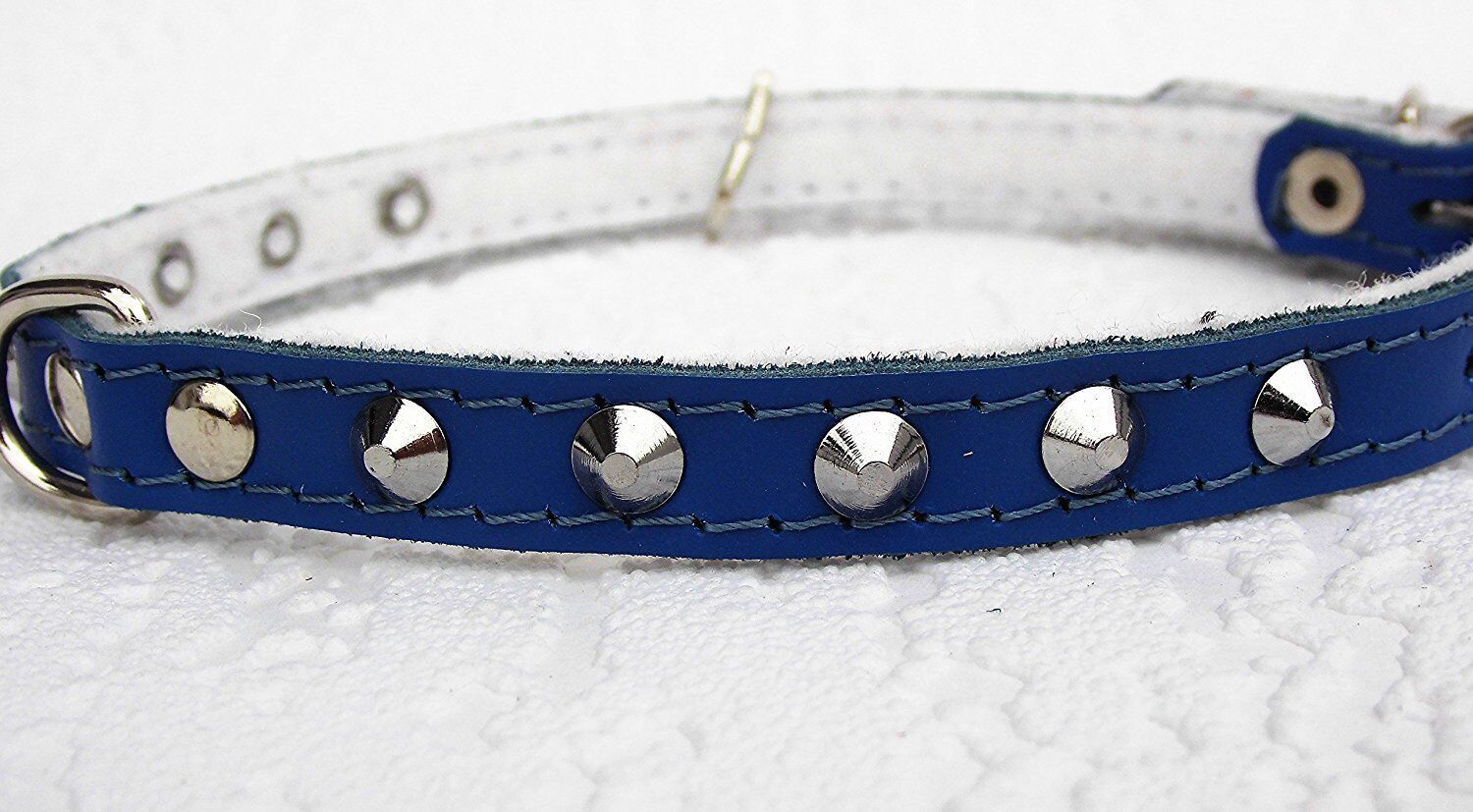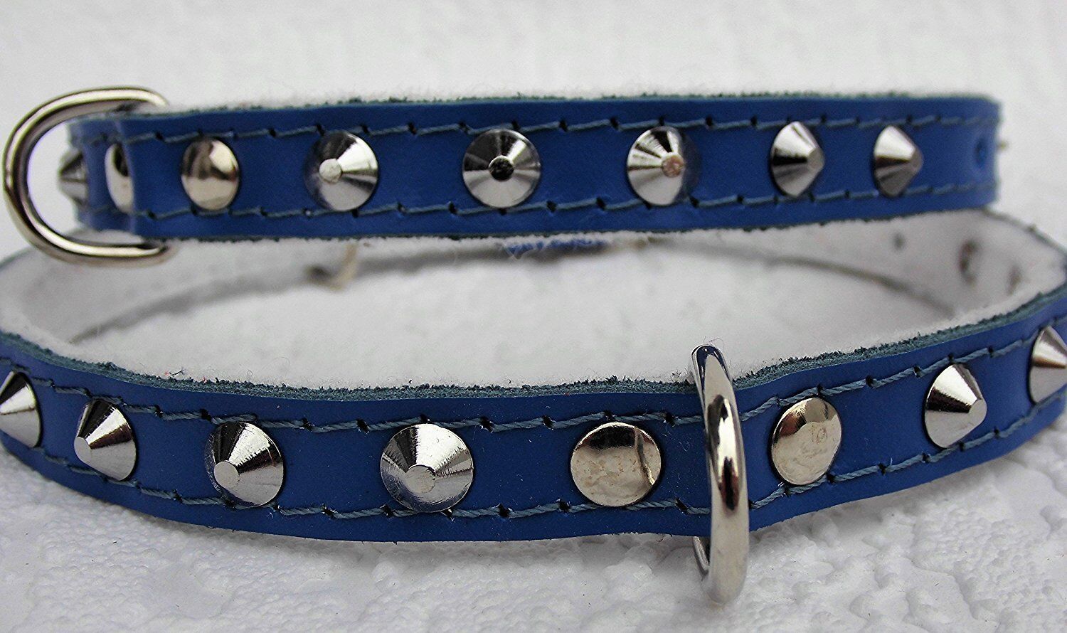 Hunde Halsband - Halsumfang 28,5-34,5cm/12 mm, Echt LEDER Nieten BLAU (12-0-94)