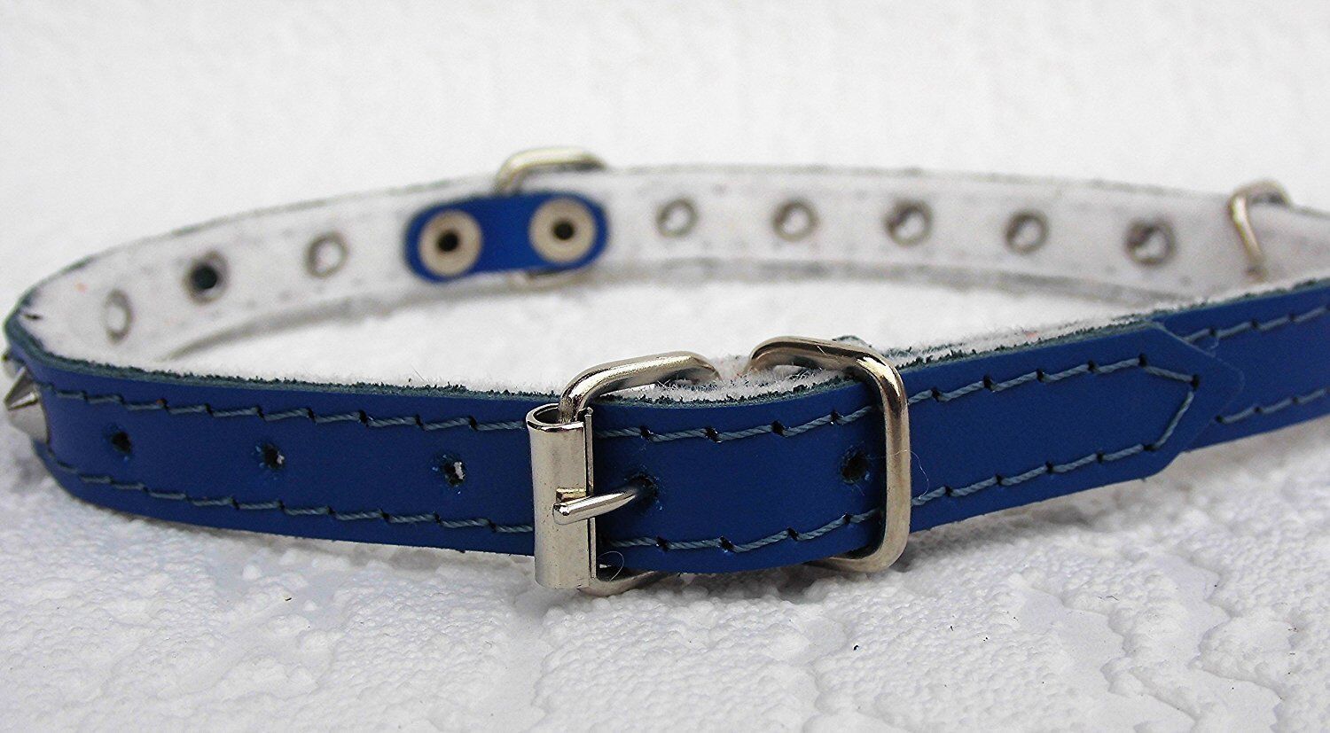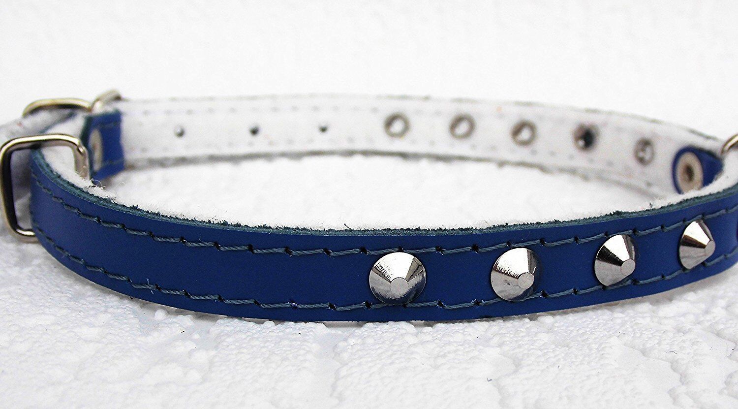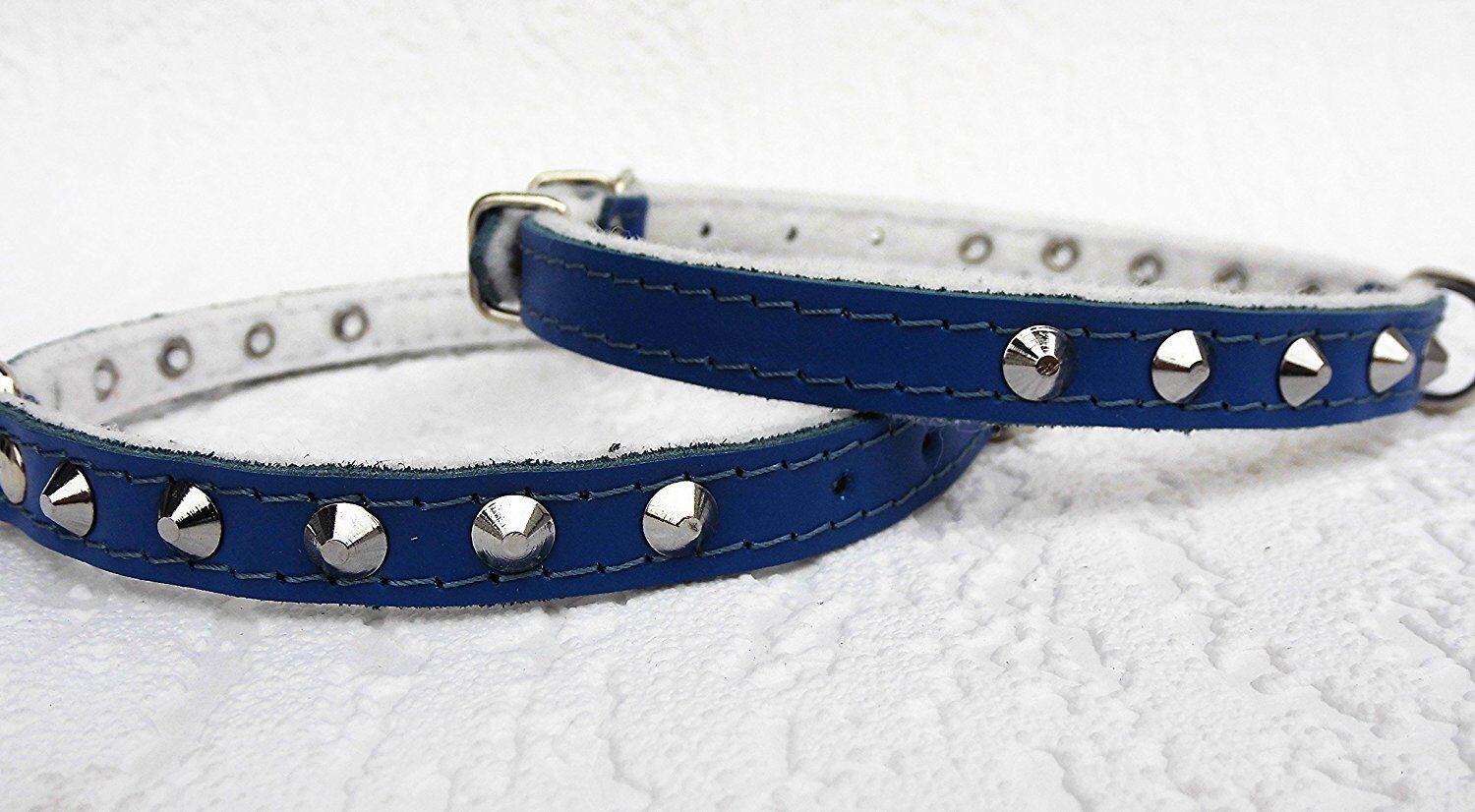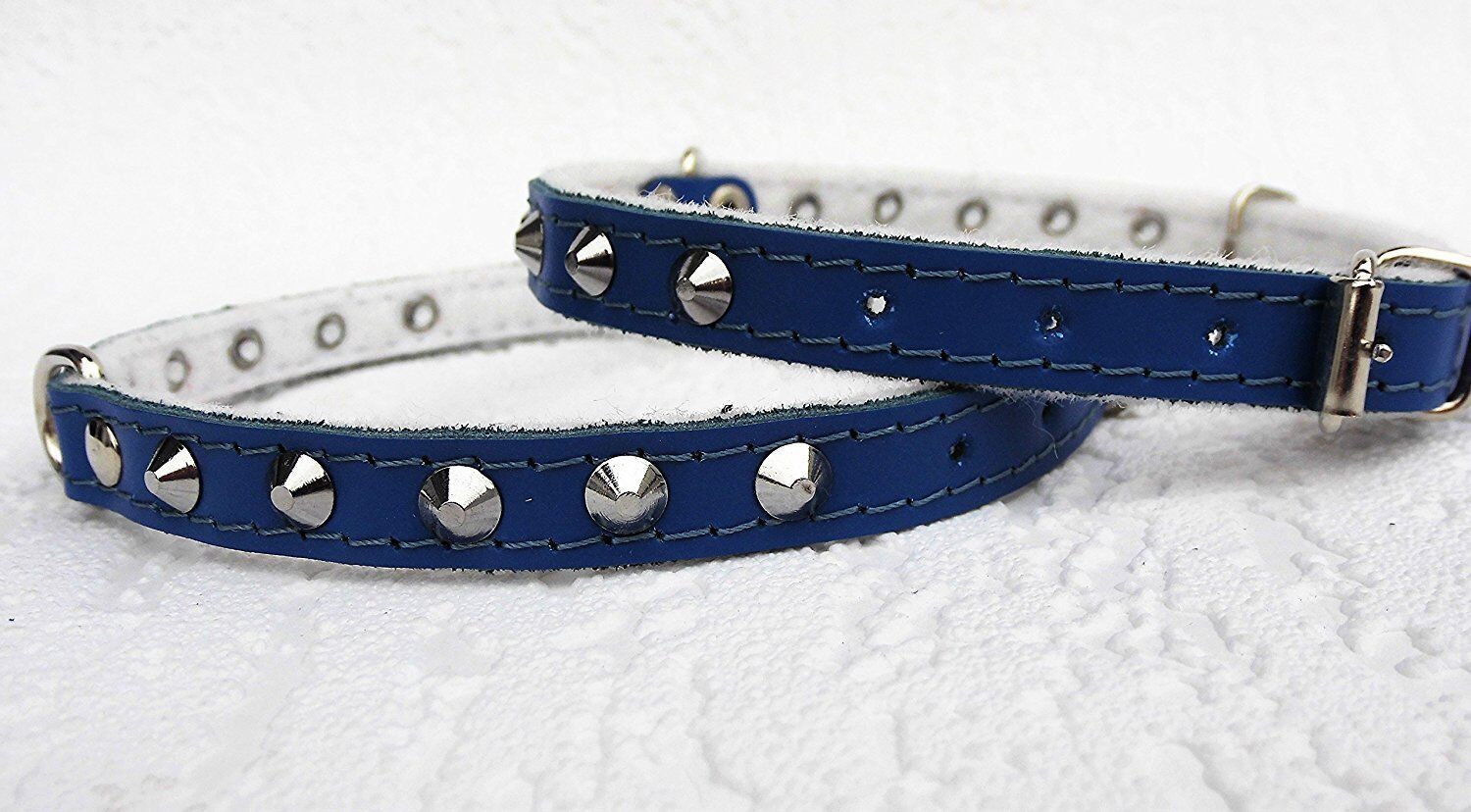 Hunde Halsband - Halsumfang 28,5-34,5cm/12 mm, Echt LEDER Nieten BLAU (12-0-94)