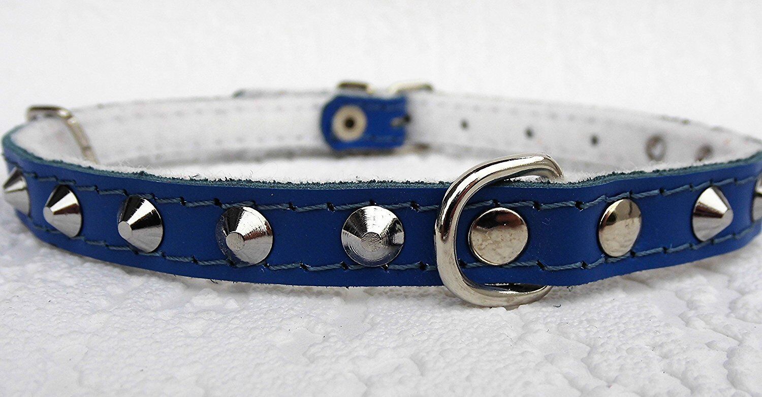 Lederhalsband ***Blau*** mit NIETEN Maße: Gesamtlänge : 38 cm Halsumfang : 28,5 - 34,5 cm Breit : 12 mm Messen Sie hierzu bitte den Hals ihres Hundes. Material : - 100 % hochwertiges Leder, sehr robust - vernäht und gepolstert mit weichem Filz Bitte beachten Sie auch andere Angebote!