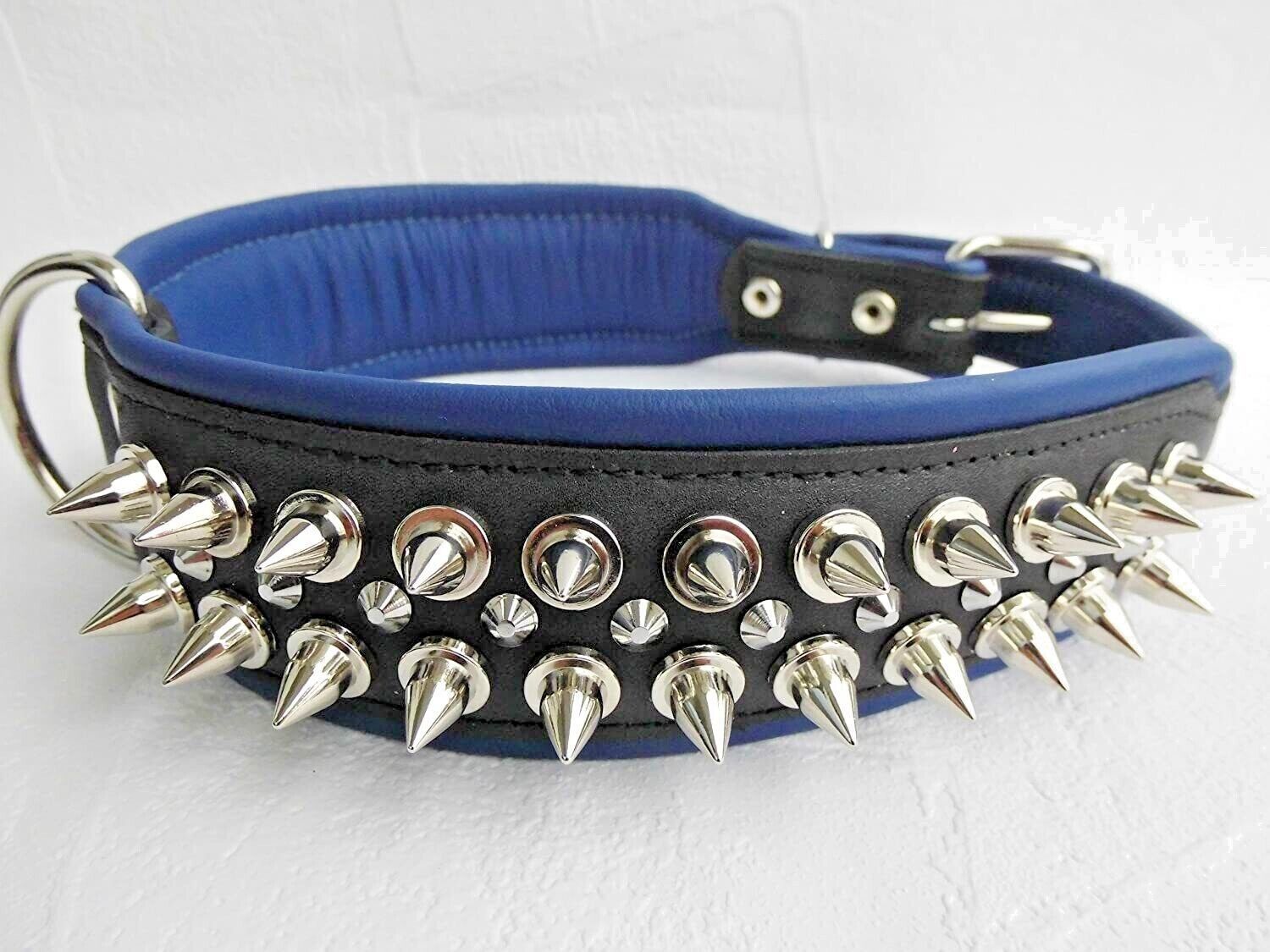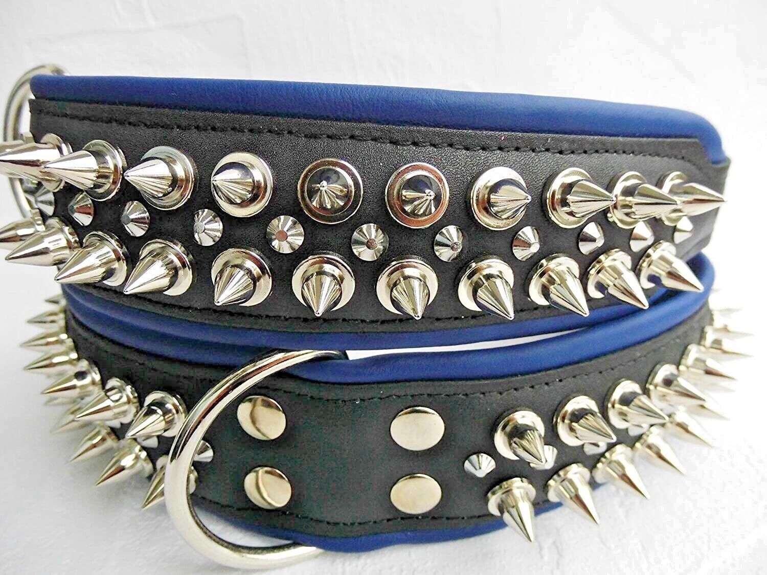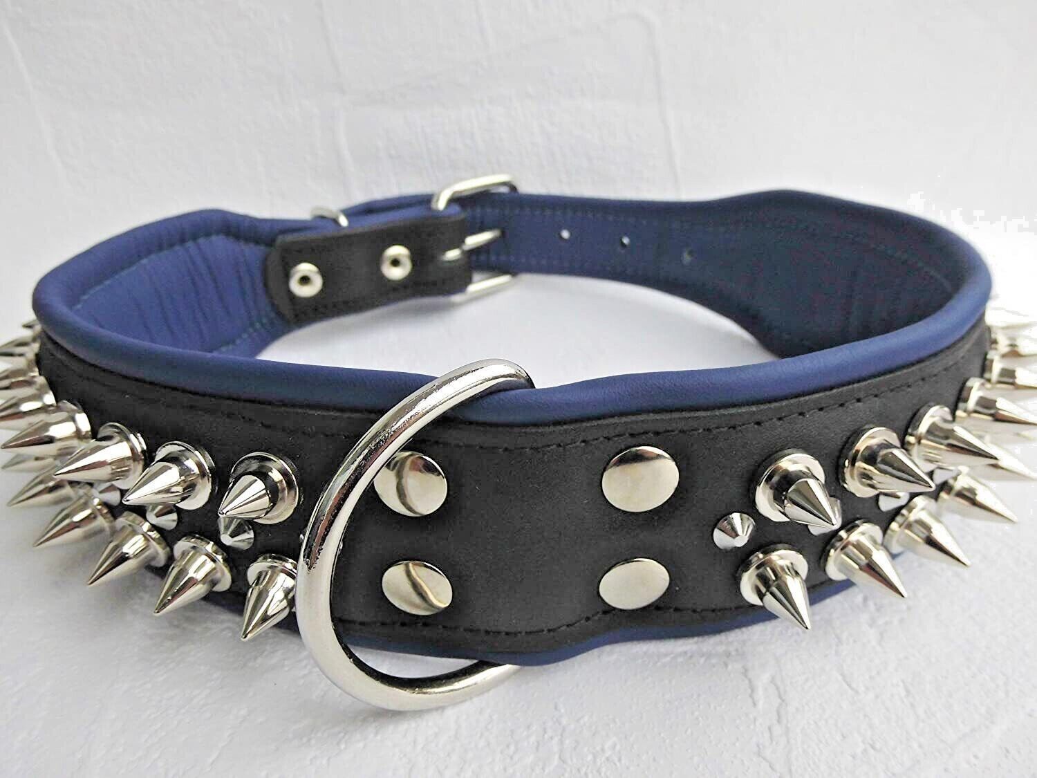 Hunde Halsband - Halsumfang 50-60cm/50mm Stacheln-nieten, Schwarz-BLAU (1368)