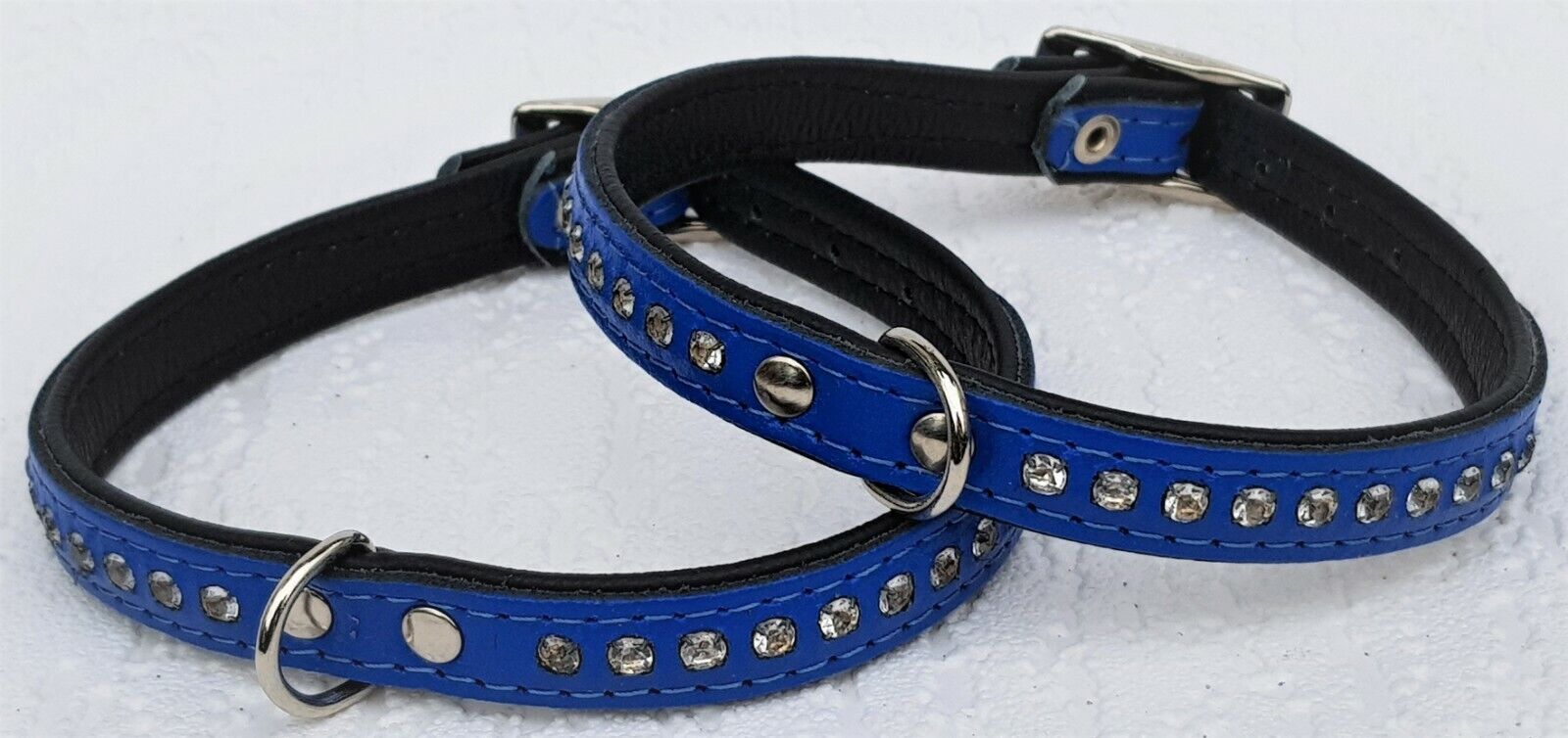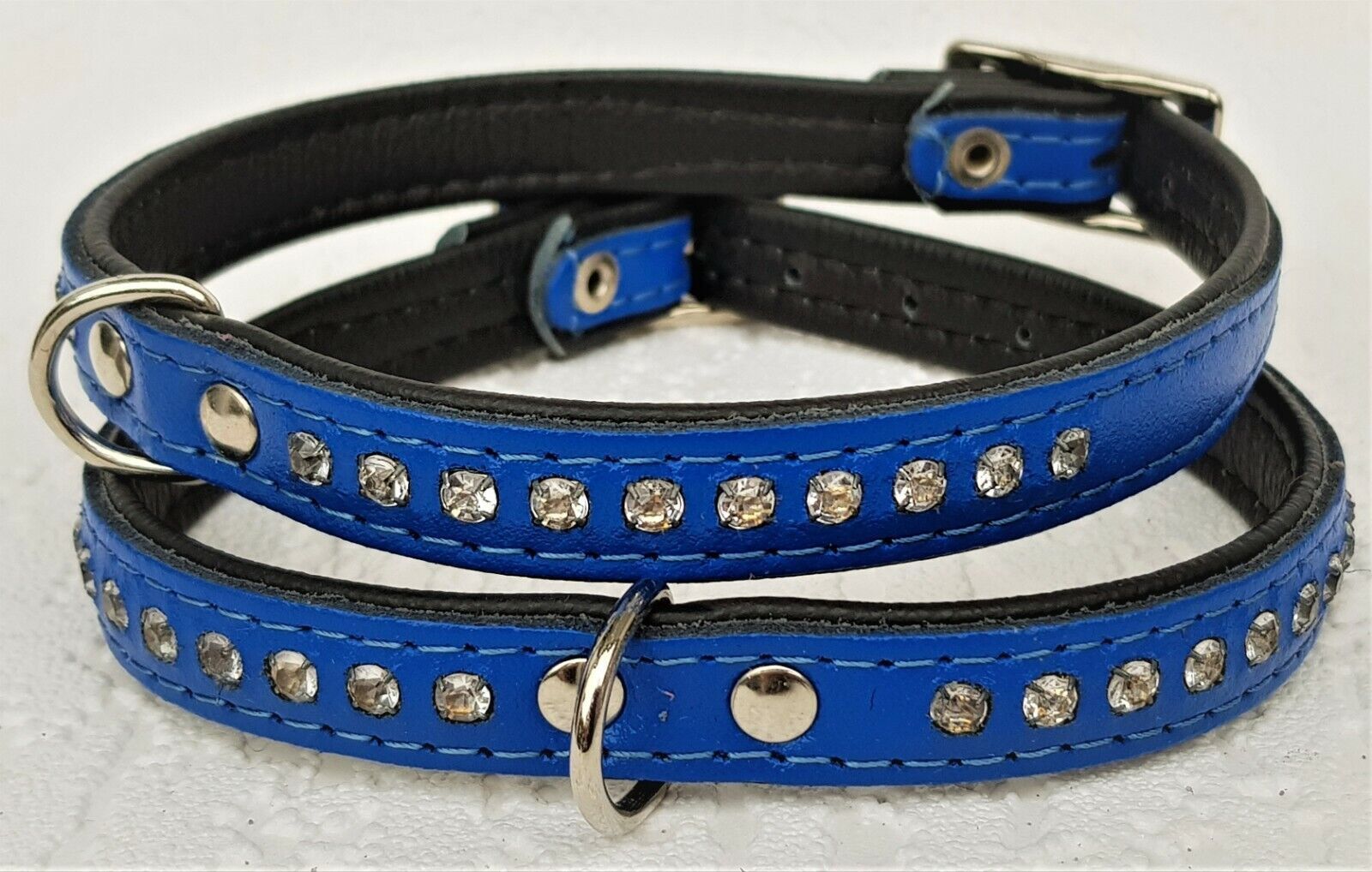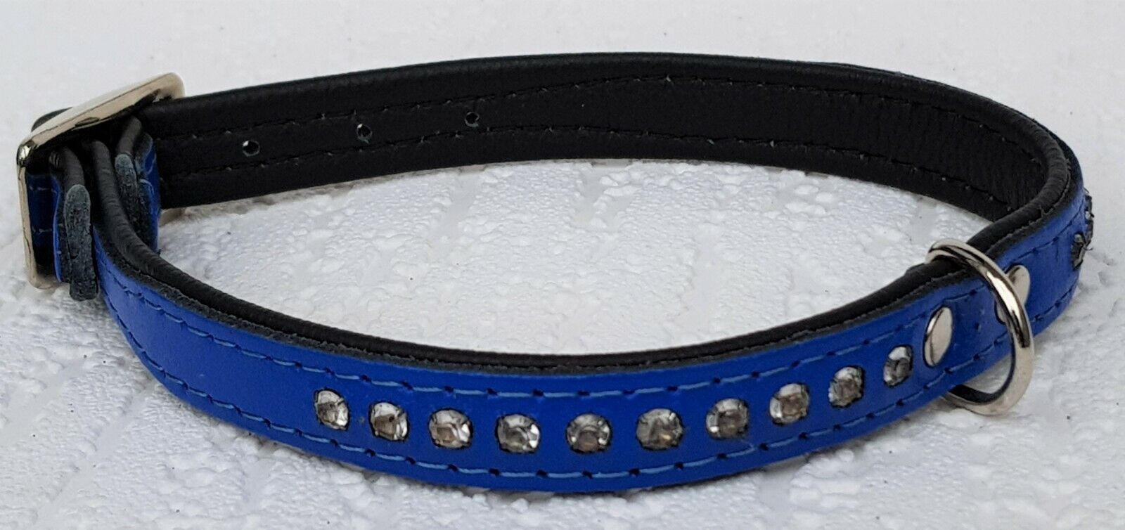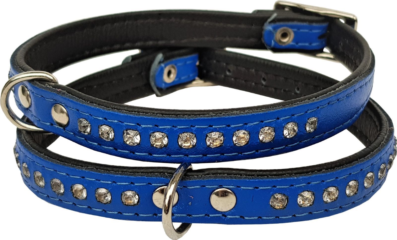 Hunde Halsband - Strass, Halsumfang 22-27 cm °BLAU° Echt Leder
