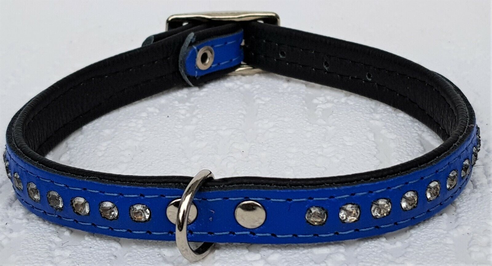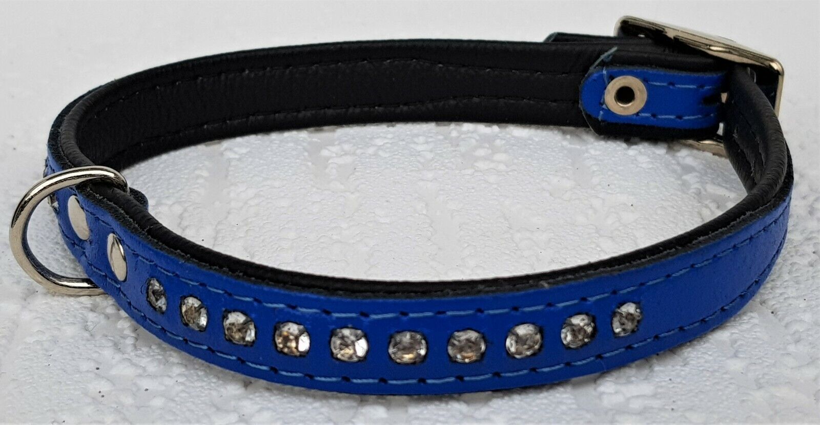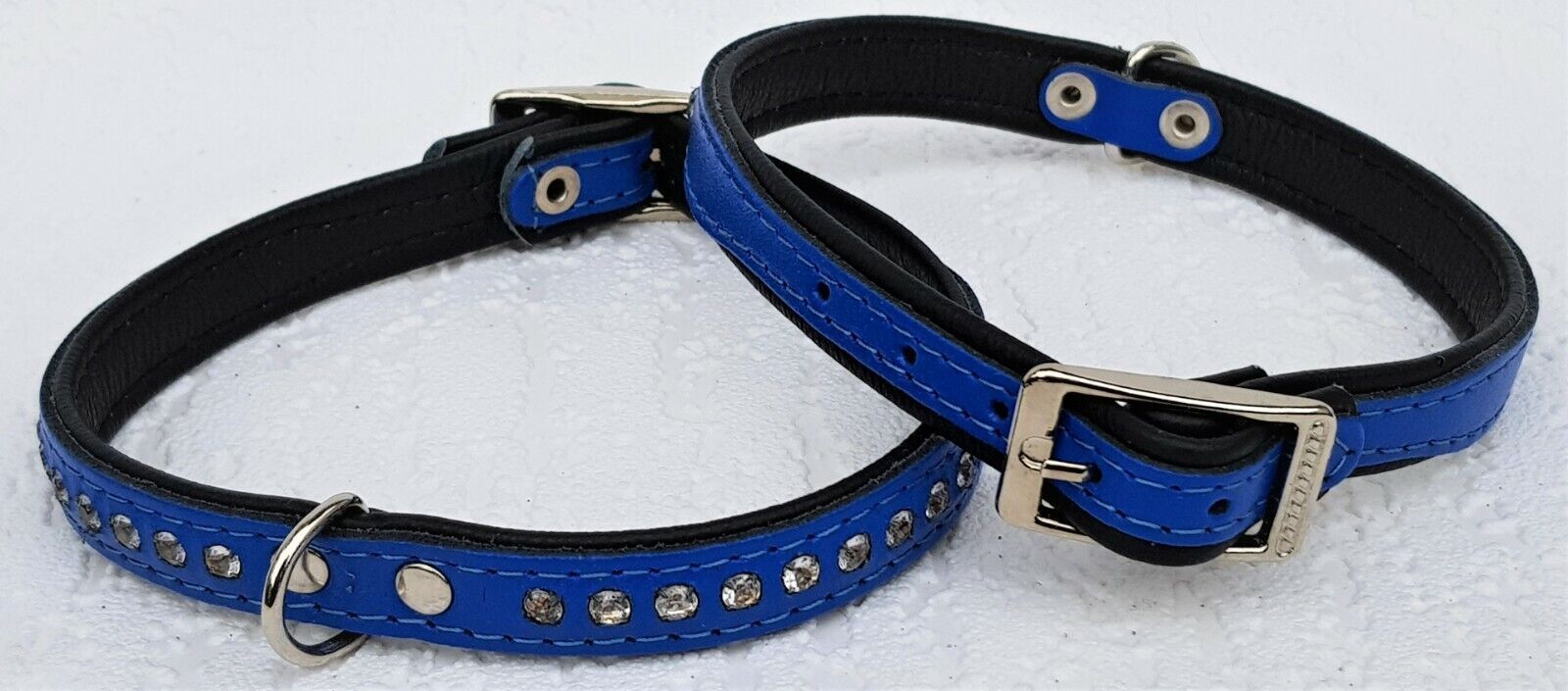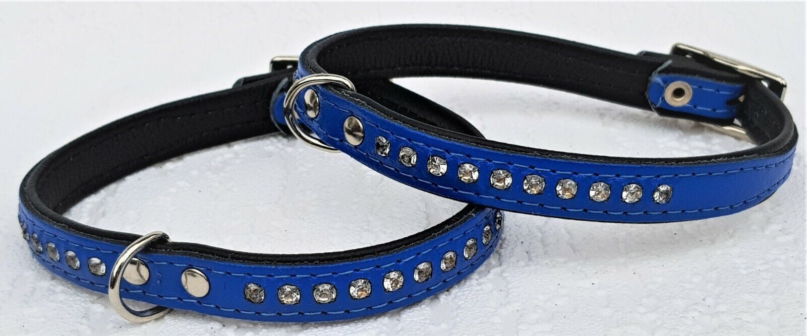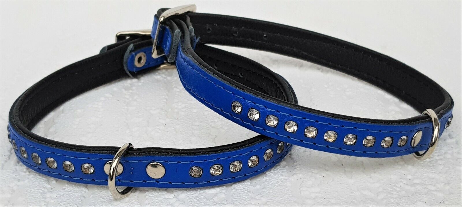 Hunde Halsband - Strass, Halsumfang 22-27 cm °BLAU° Echt Leder
