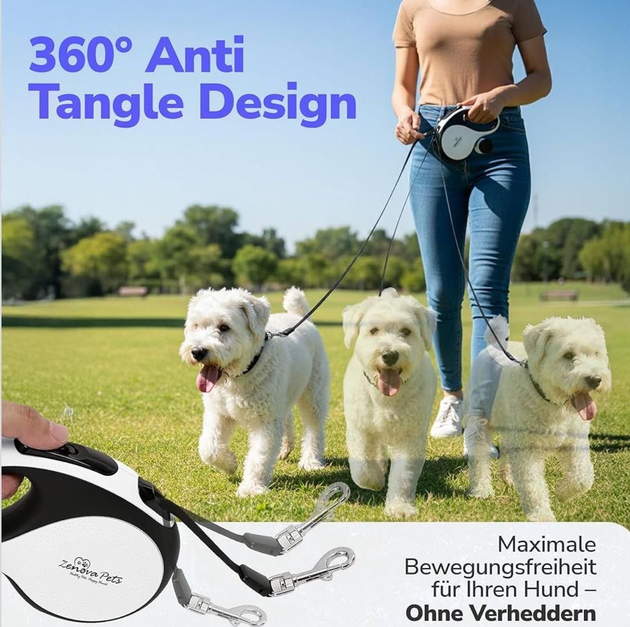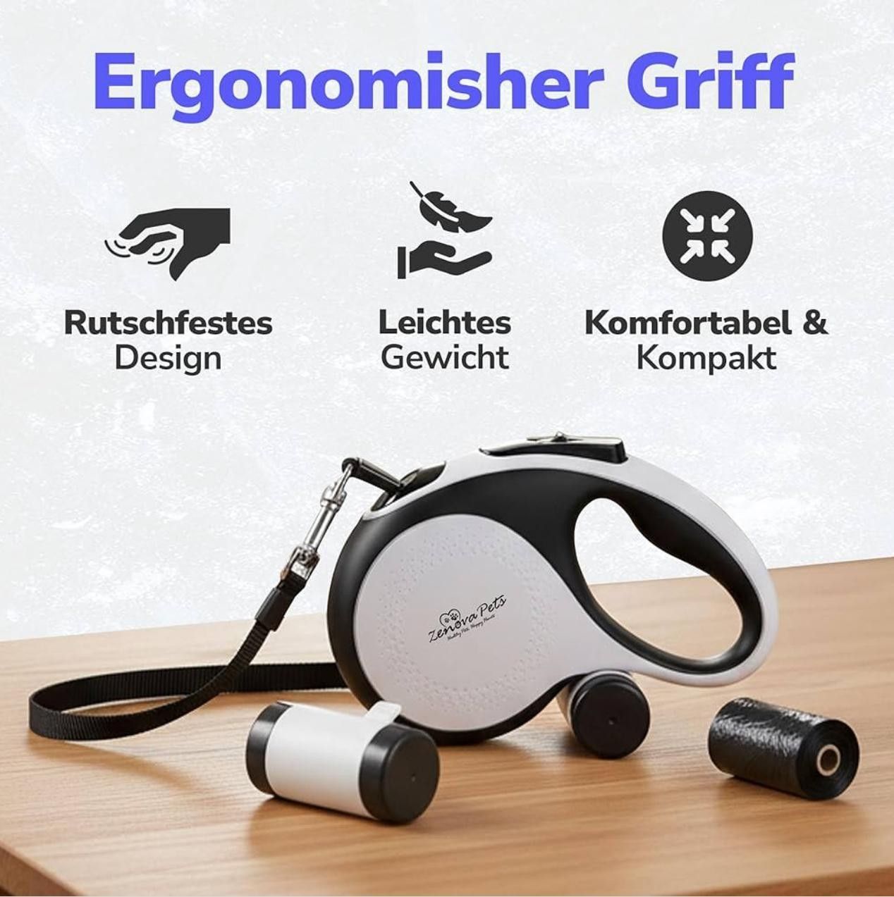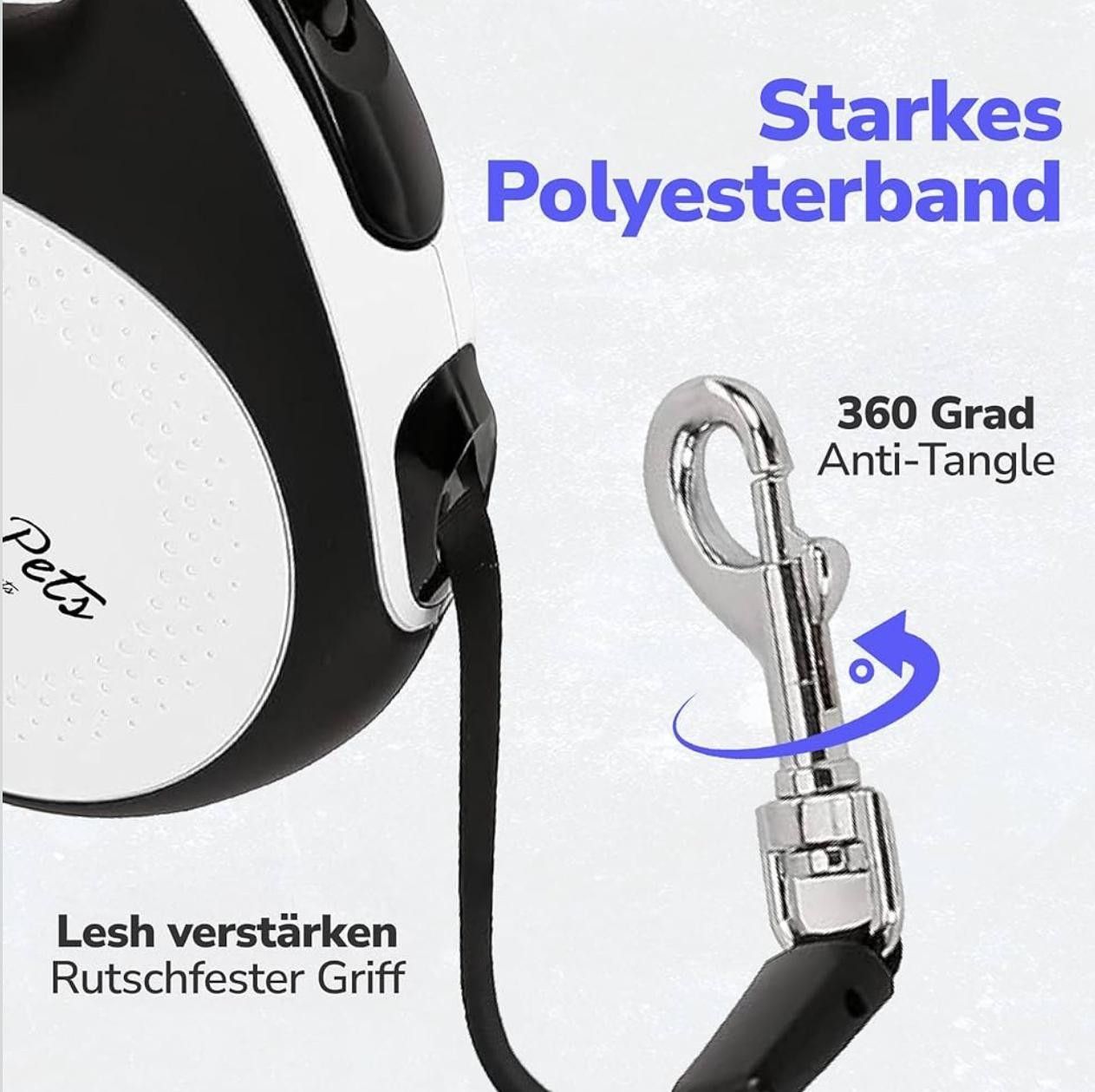 Hunde Rollleine 5 m – Sicherheit, Komfort und volle Kontrolle Die hochwertige Hunde Rollleine von ZENOVA PETS bietet optimale Kontrolle, hohen Tragekomfort und maximale Bewegungsfreiheit bei jedem Spaziergang. Das 5 Meter lange, ausziehbare Nylonband ermöglicht Ihrem Hund ein freies Laufen, während