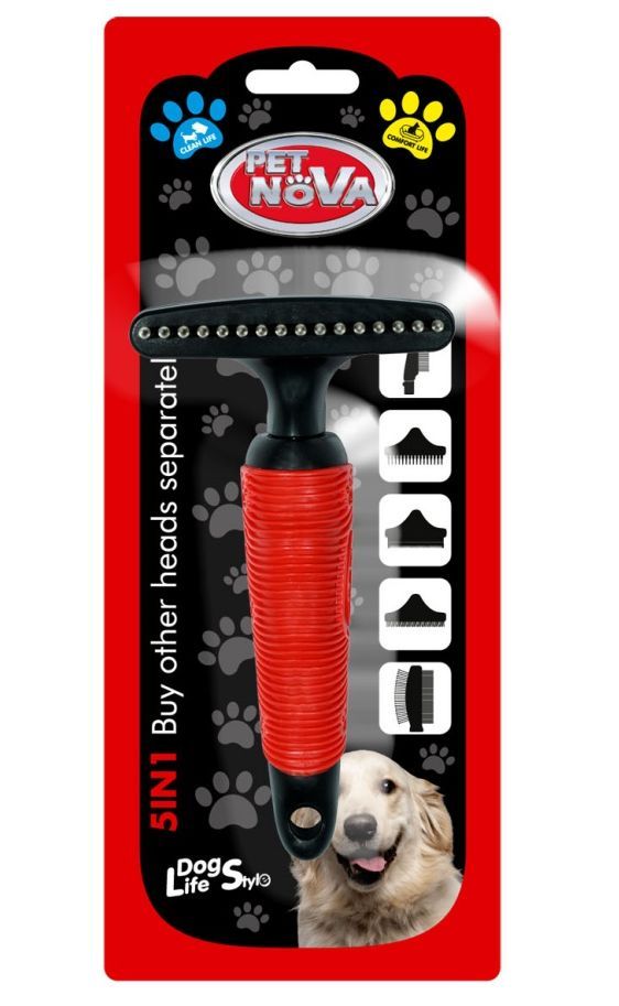 Hunde Stahl Harke M 16cm x 8,5cm entfernt lose Haare schnell rot-schwarz Hund