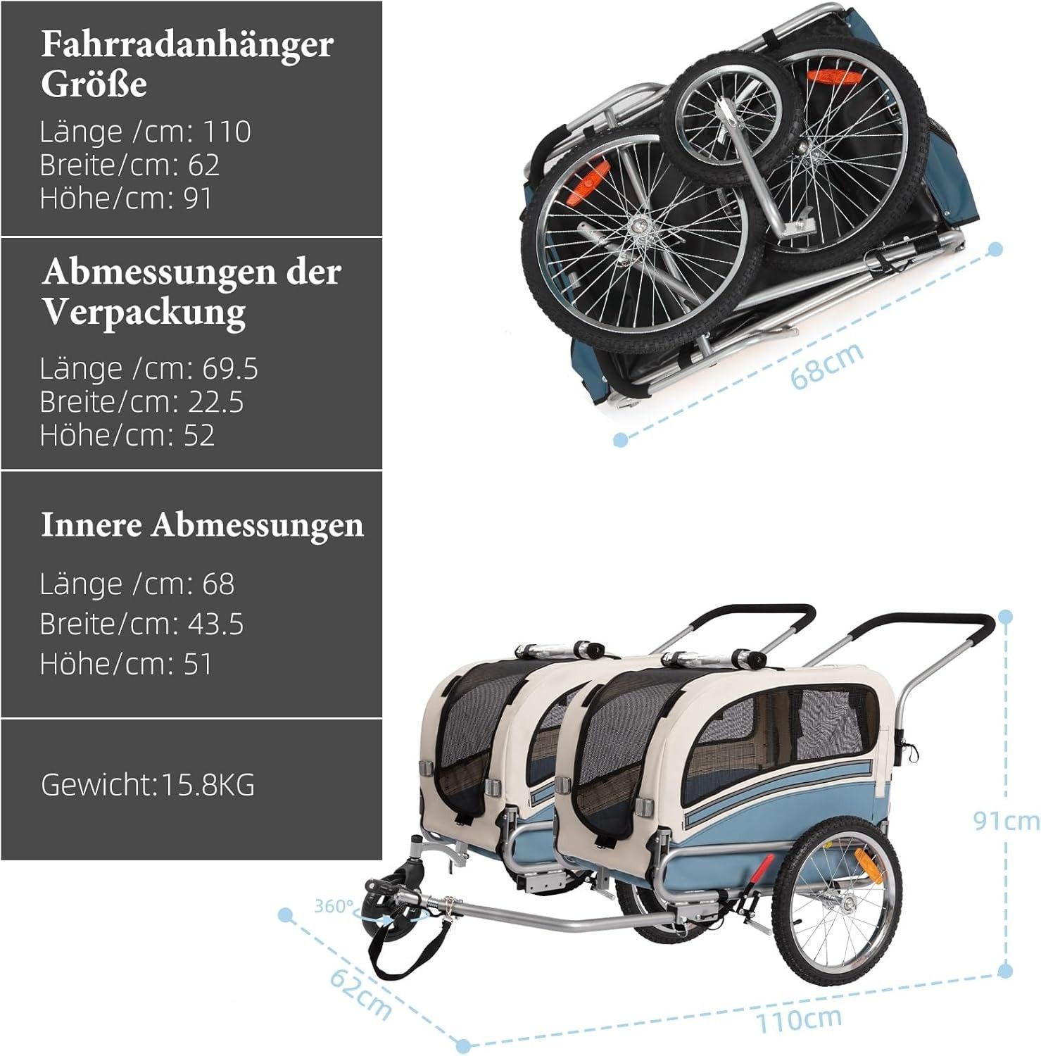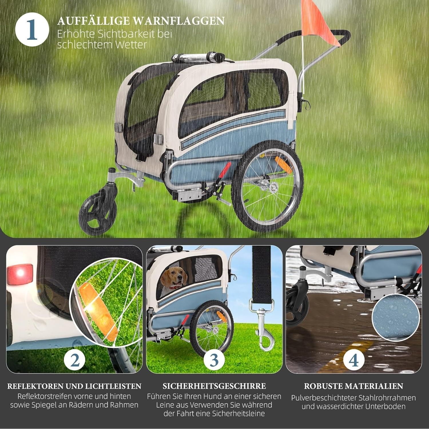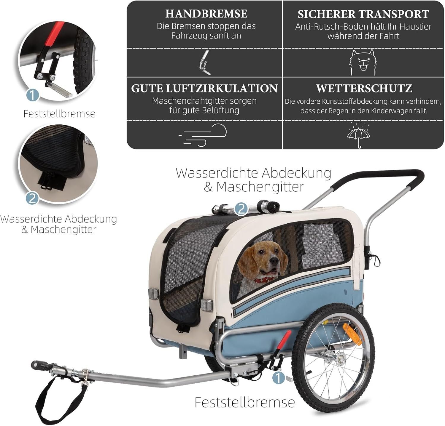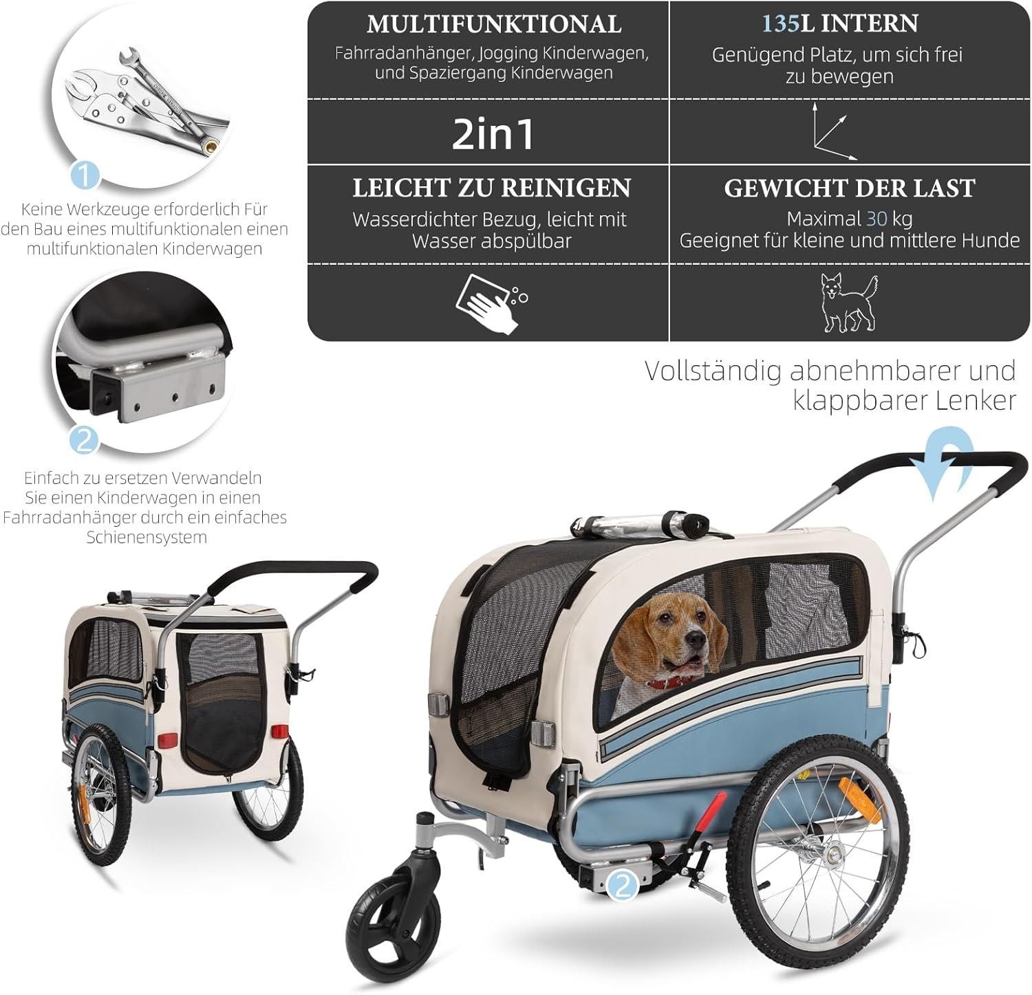 Hundeanhänger 2-in-1 für Fahrrad & Jogger - Transportwagen für Hunde bis 30 kg