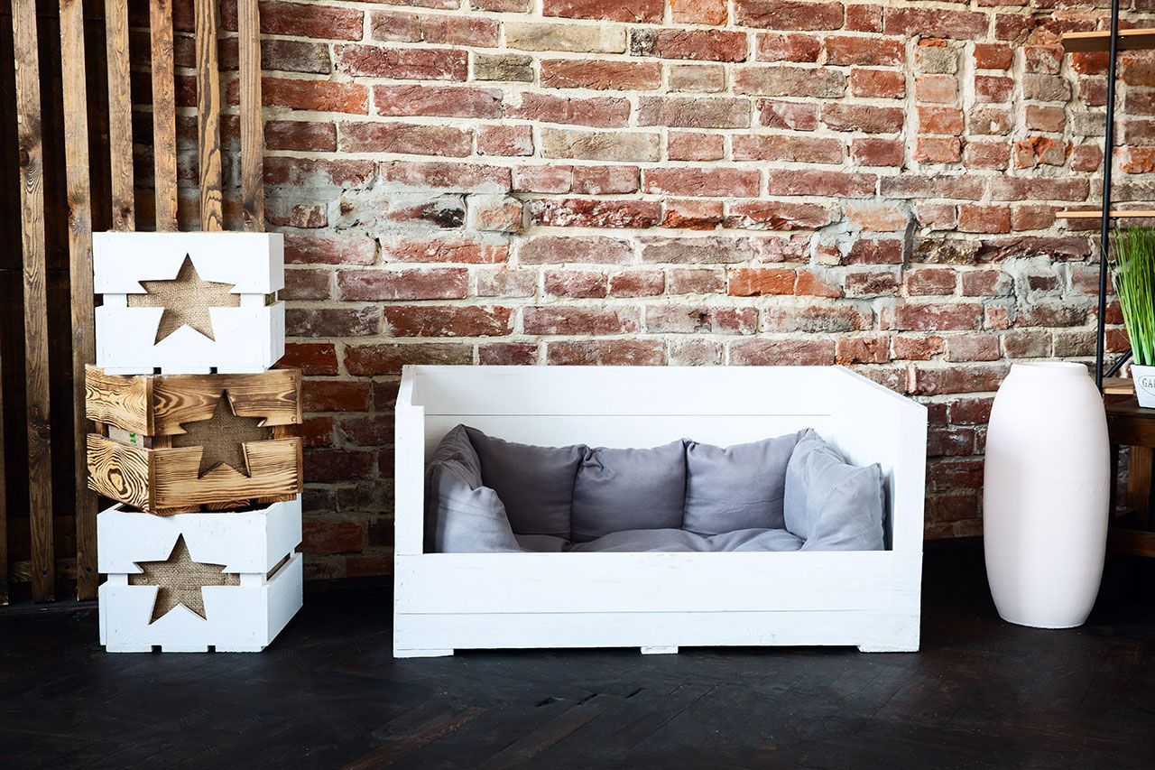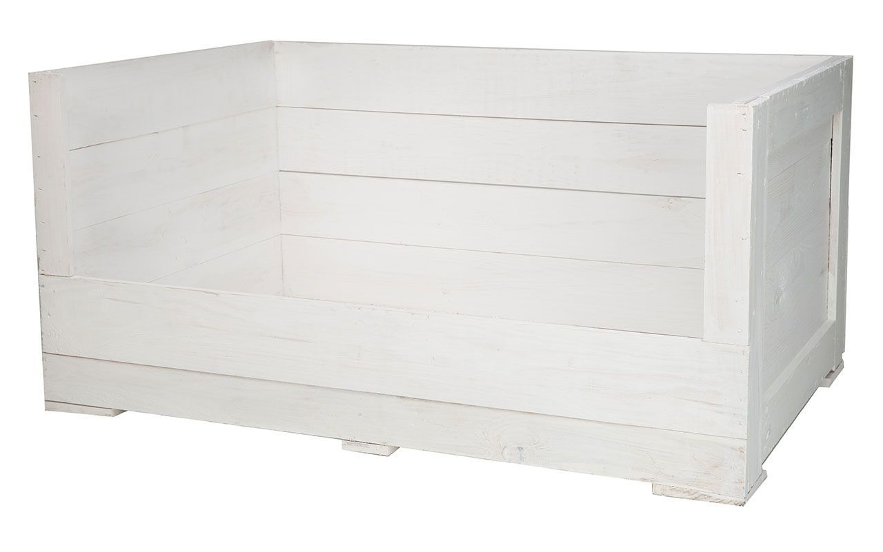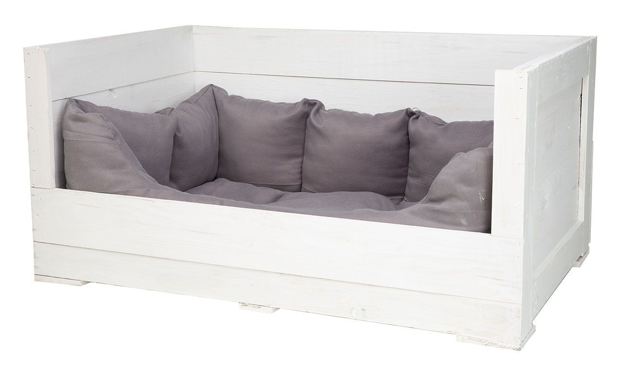 Hundebett Balu weiß mit Kissen 90x57x45cm Hundekiste Hundesofa Kistenbett Holzkiste