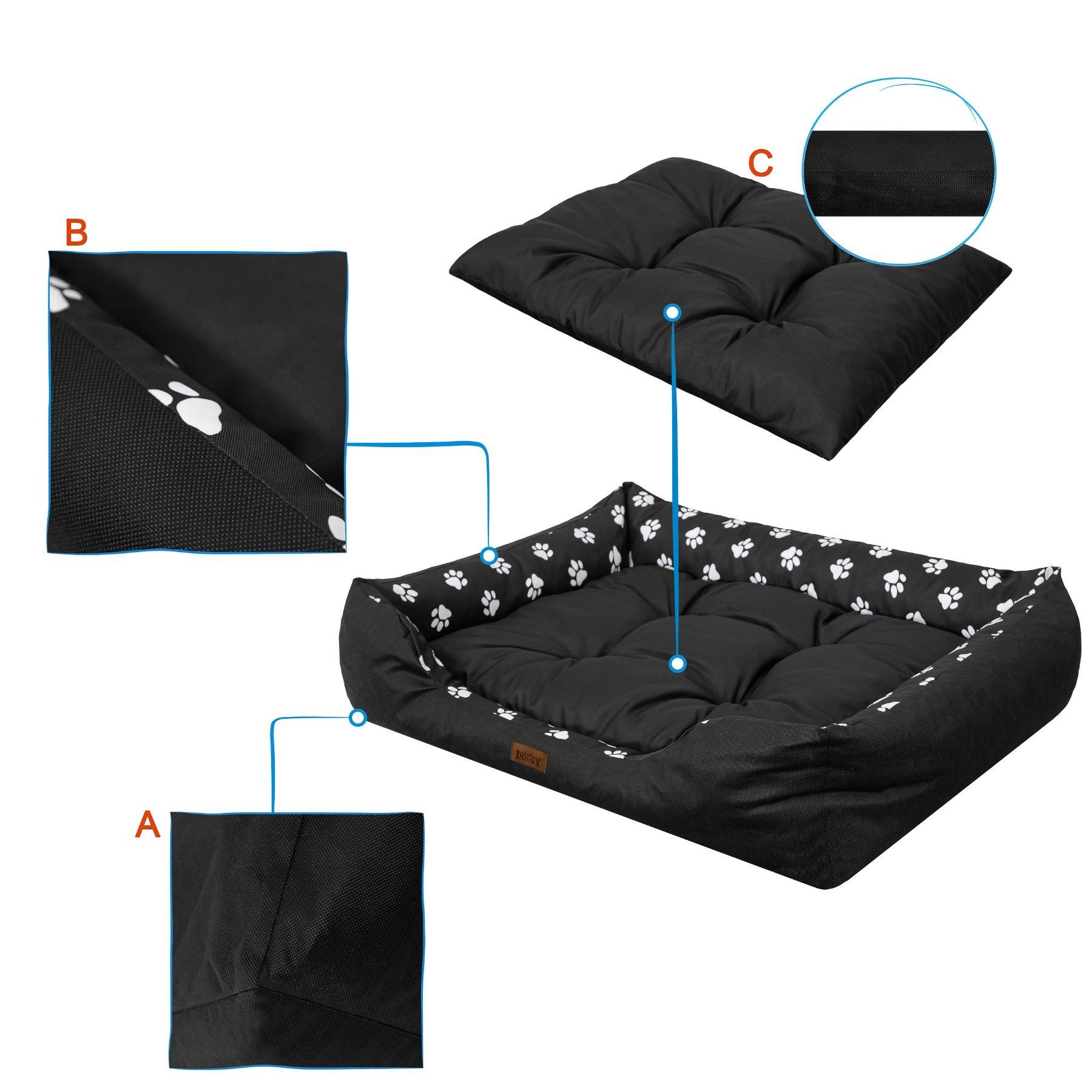 Hundebett Hundekissen Schwarz Mit Pfoten R3 92x73 cm