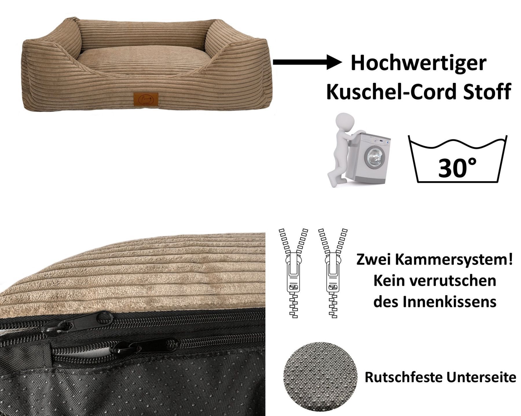 Hundebett orthopädisch Kuschel Cord XS - XL kleine & große Hunde Hundekorb Cappuccino