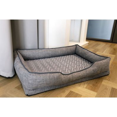 • Hundebett Gr. L Grau Haustier Plüsch Kissen Korb Schlafplatz Liegefläche Sofa