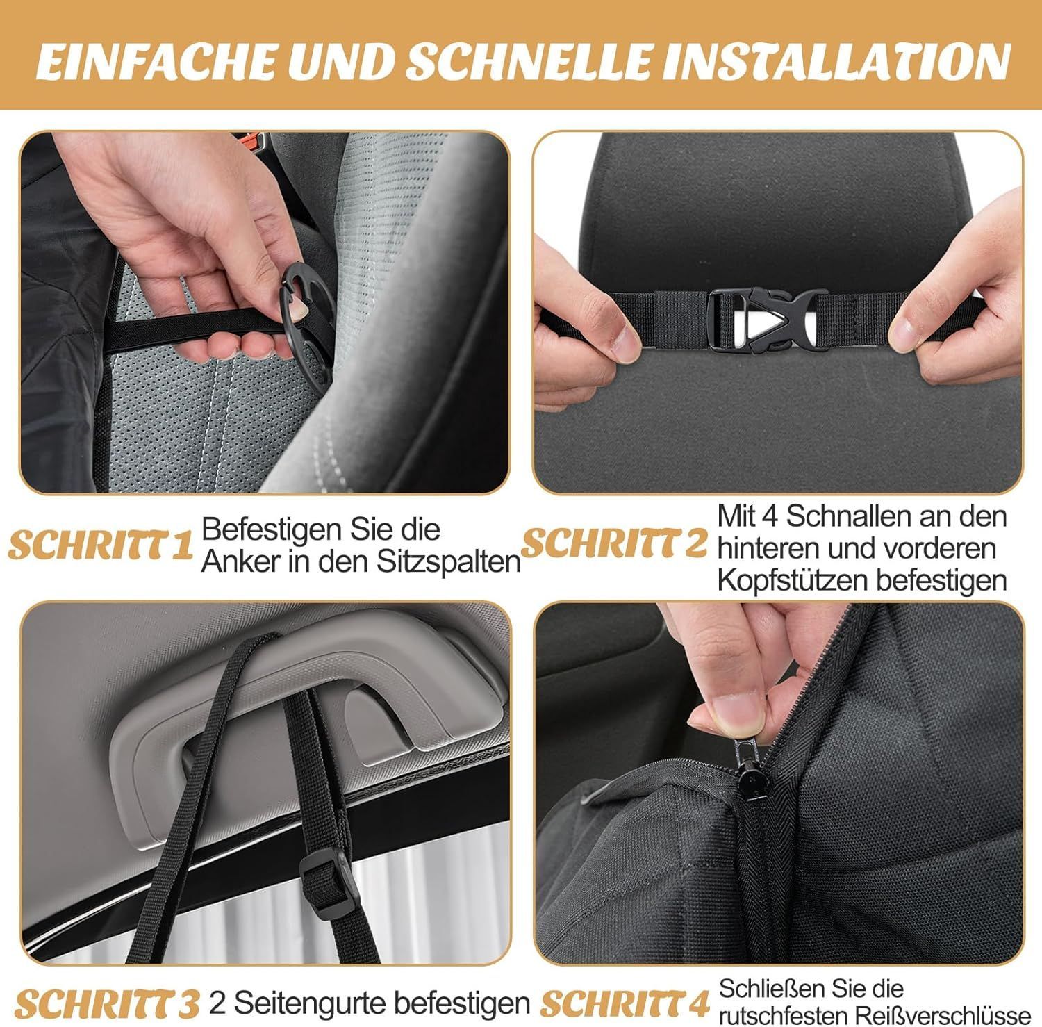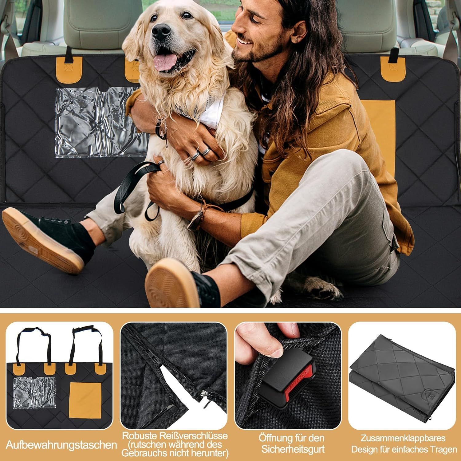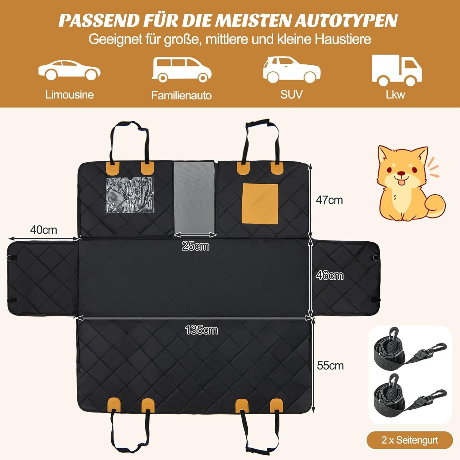• Hundedecke Schutzmatte Rücksitzbank Auto universal wasserdicht inkl. Gurte