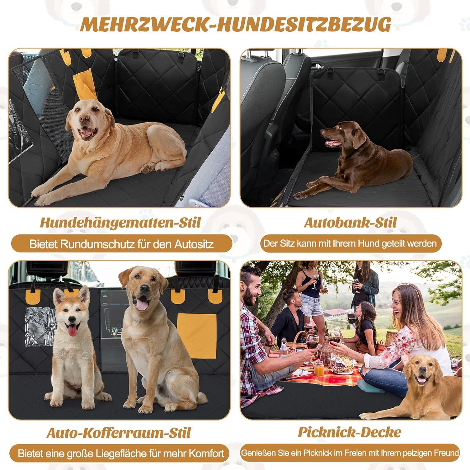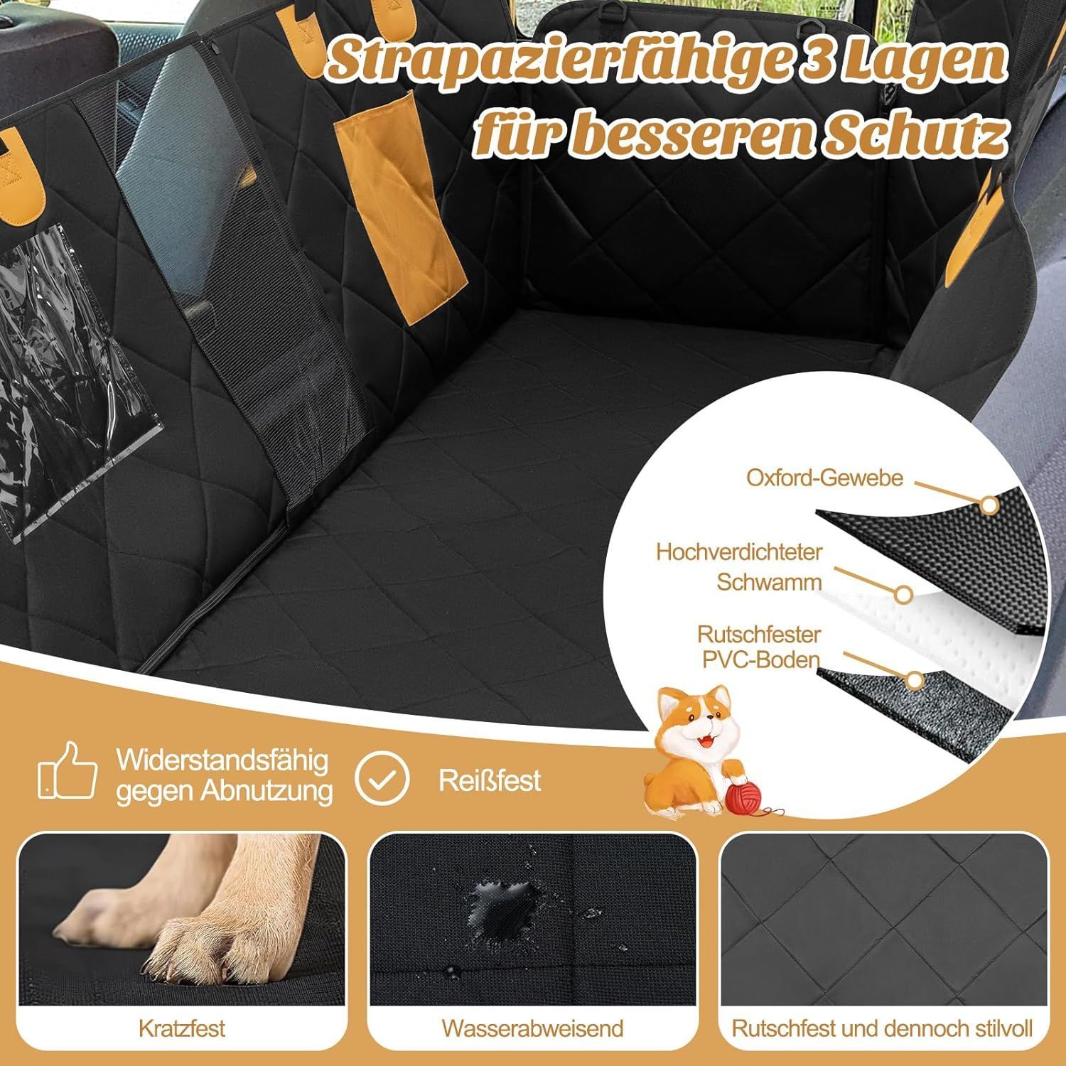 Hundedecke Auto Rückbank, Autoschondecke wasserabweisend, Hundematte Auto, Schwarz