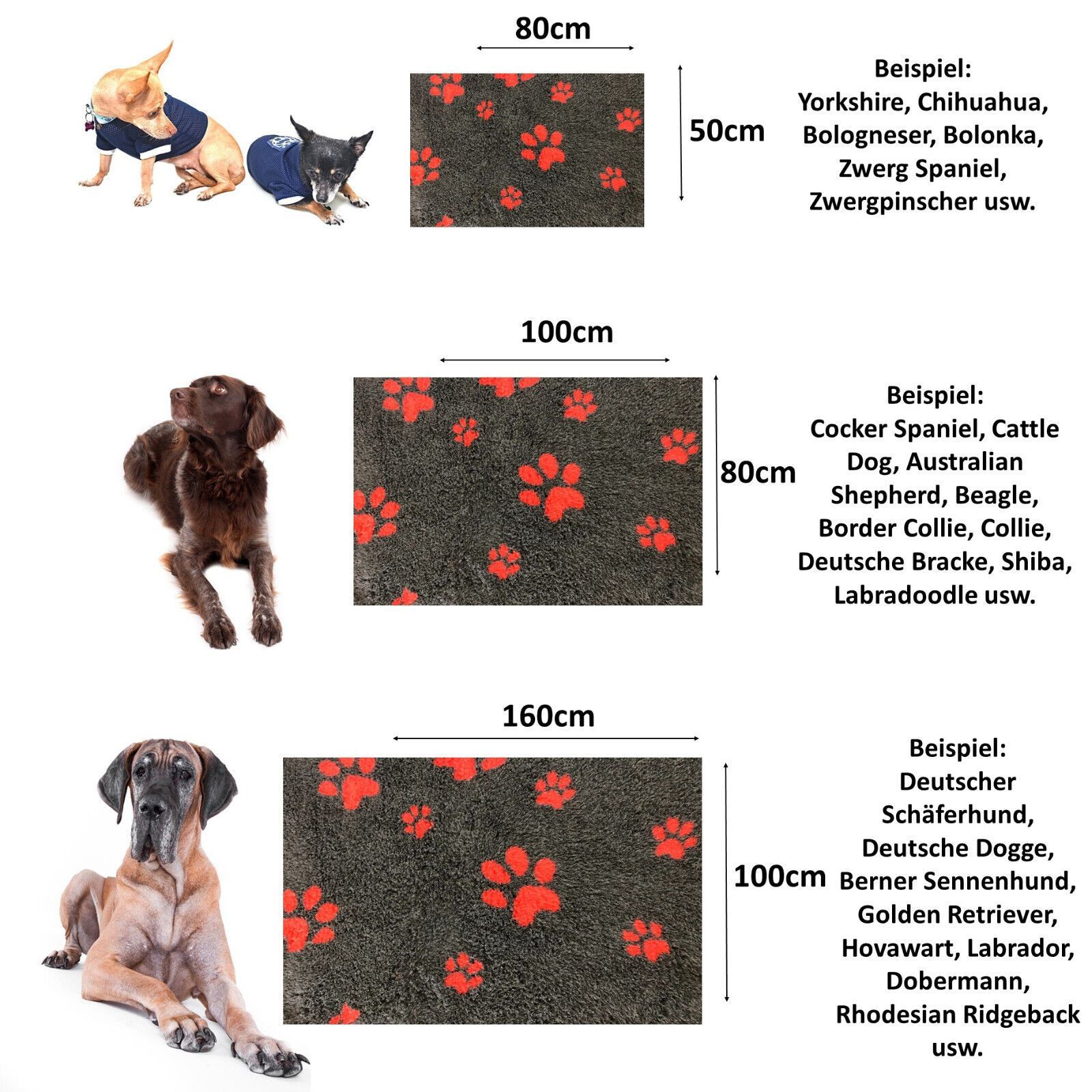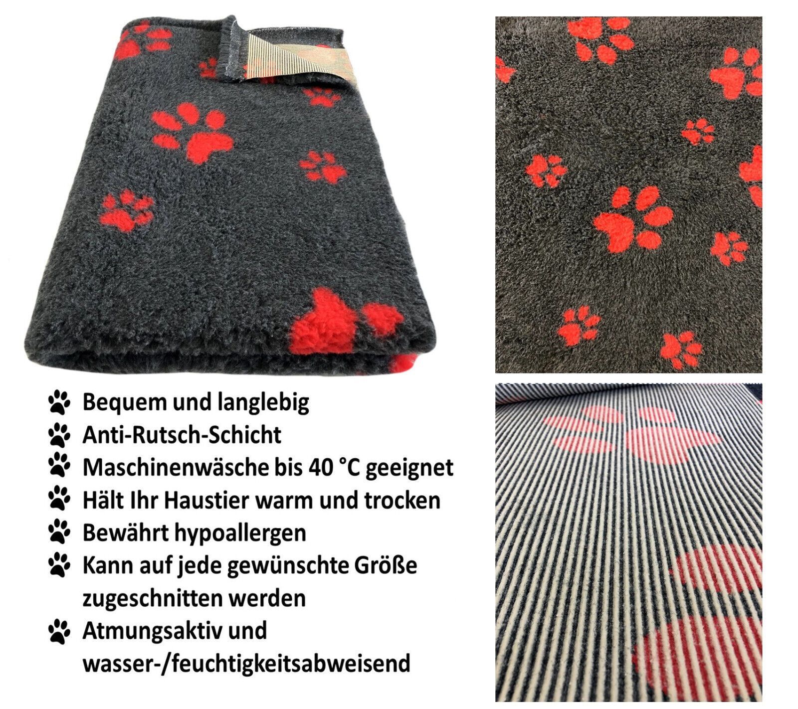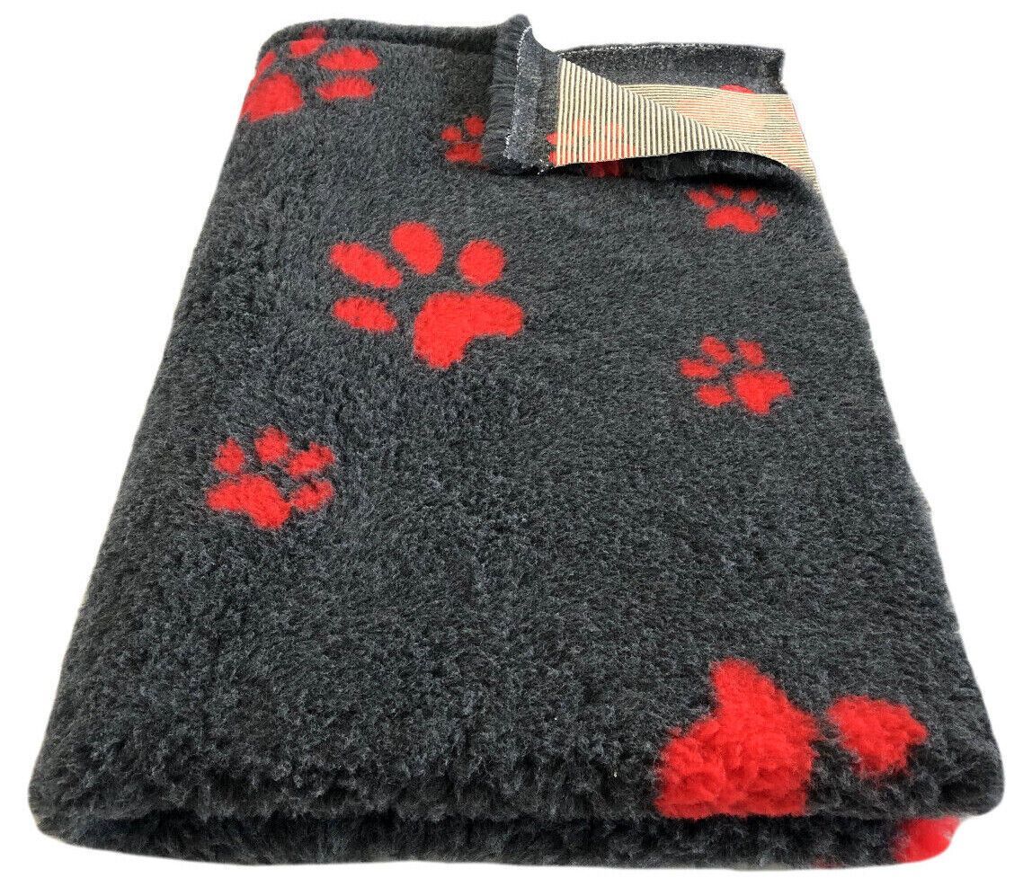Hundedecke Vet Bed Original Premium Qualitätsstufe Dunkelgrau + Pfote Rot S/ M/ L