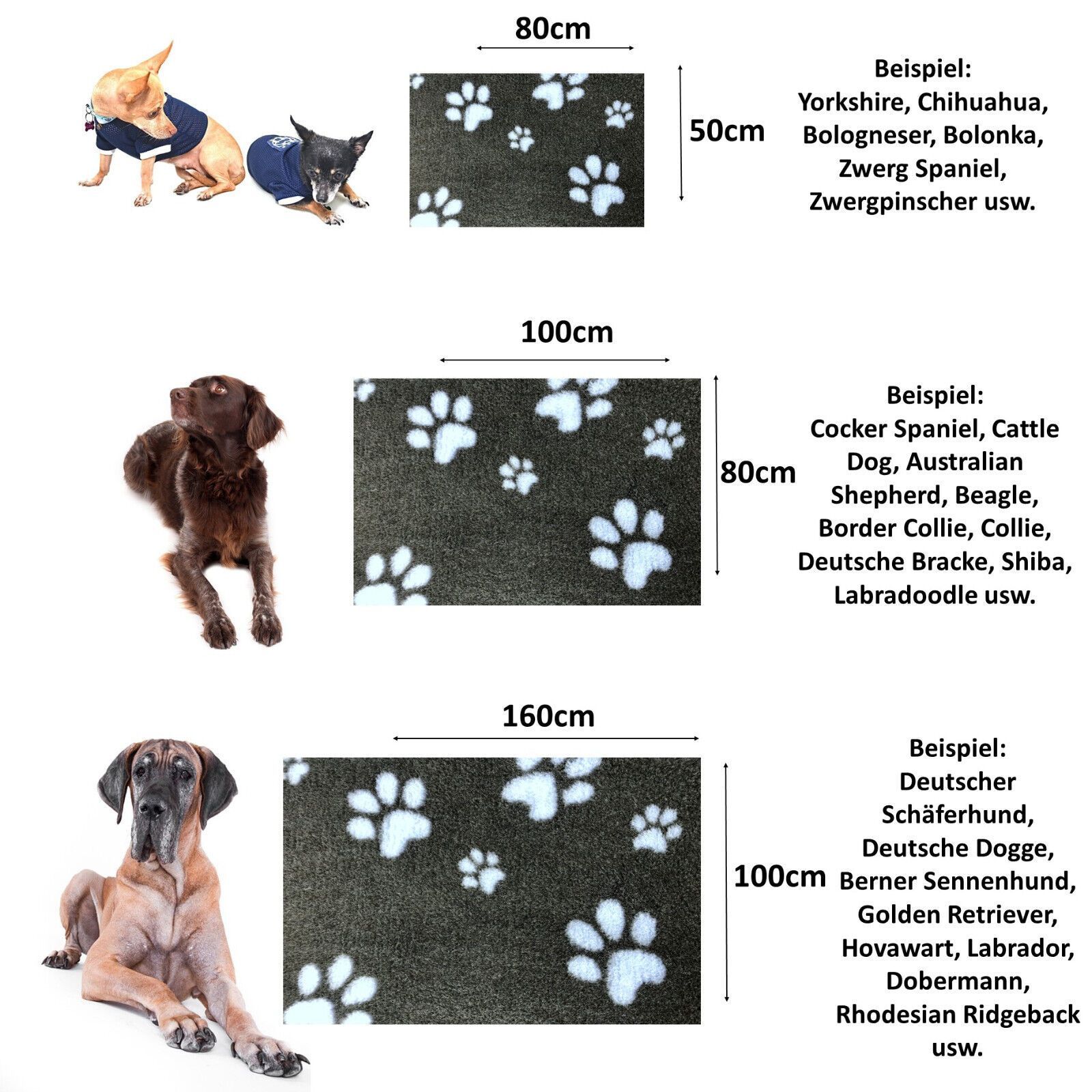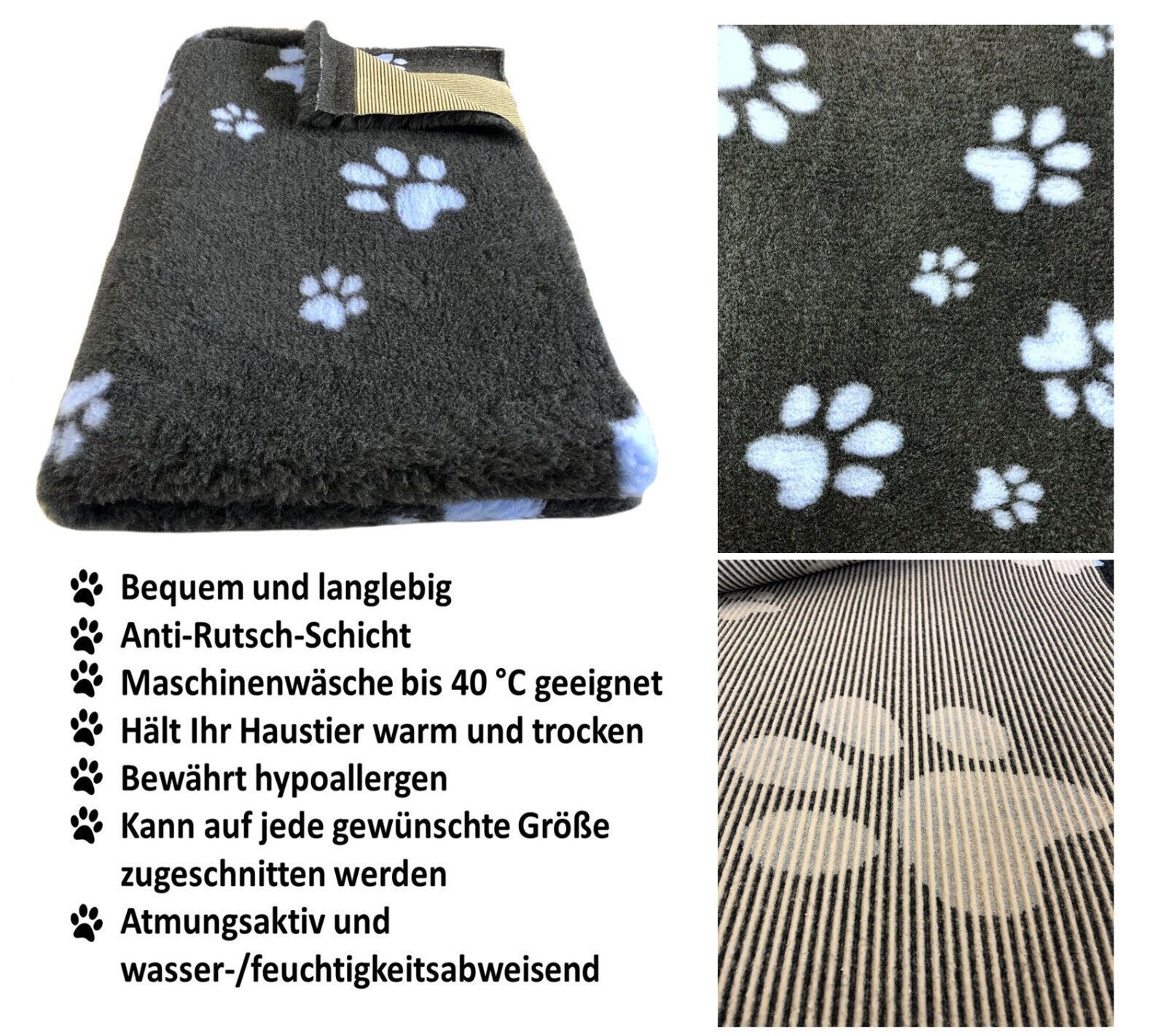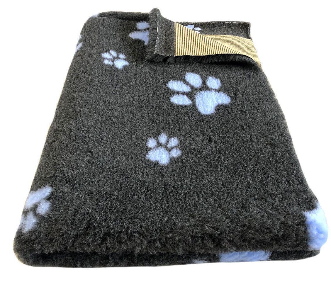 Hundedecke Vet Bed Original Premium Qualitätsstufe Dunkelgrau + PfoteHellblau SML