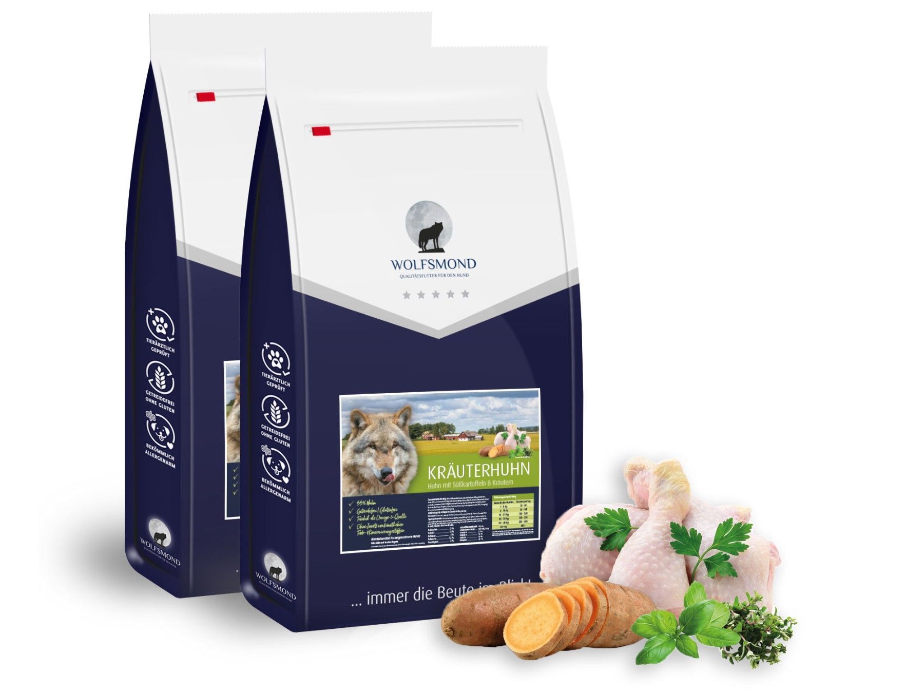 Hundefutter 24kg (2x12kg) Kräuterhuhn mit Süßkartoffeln | Getreidefrei