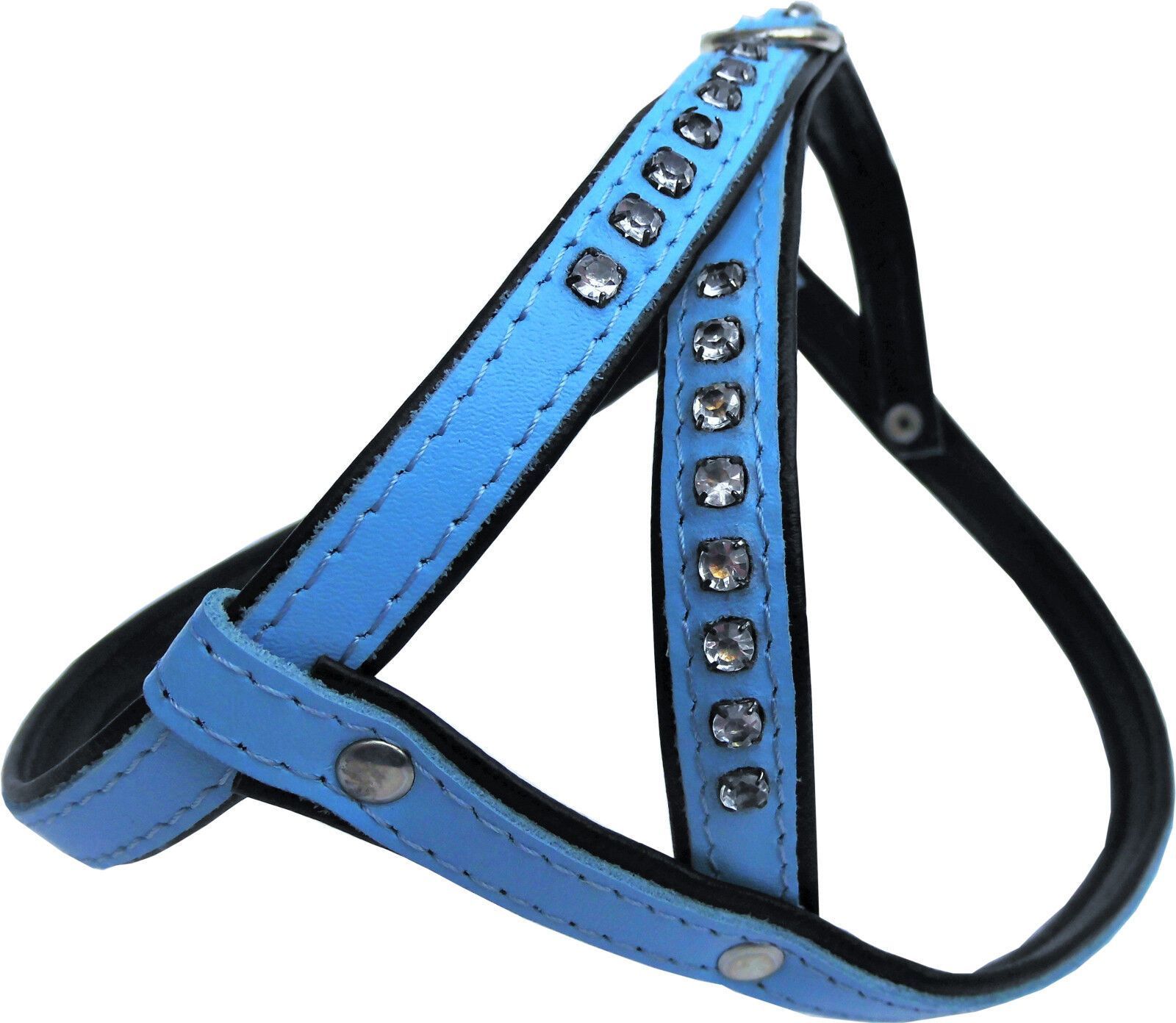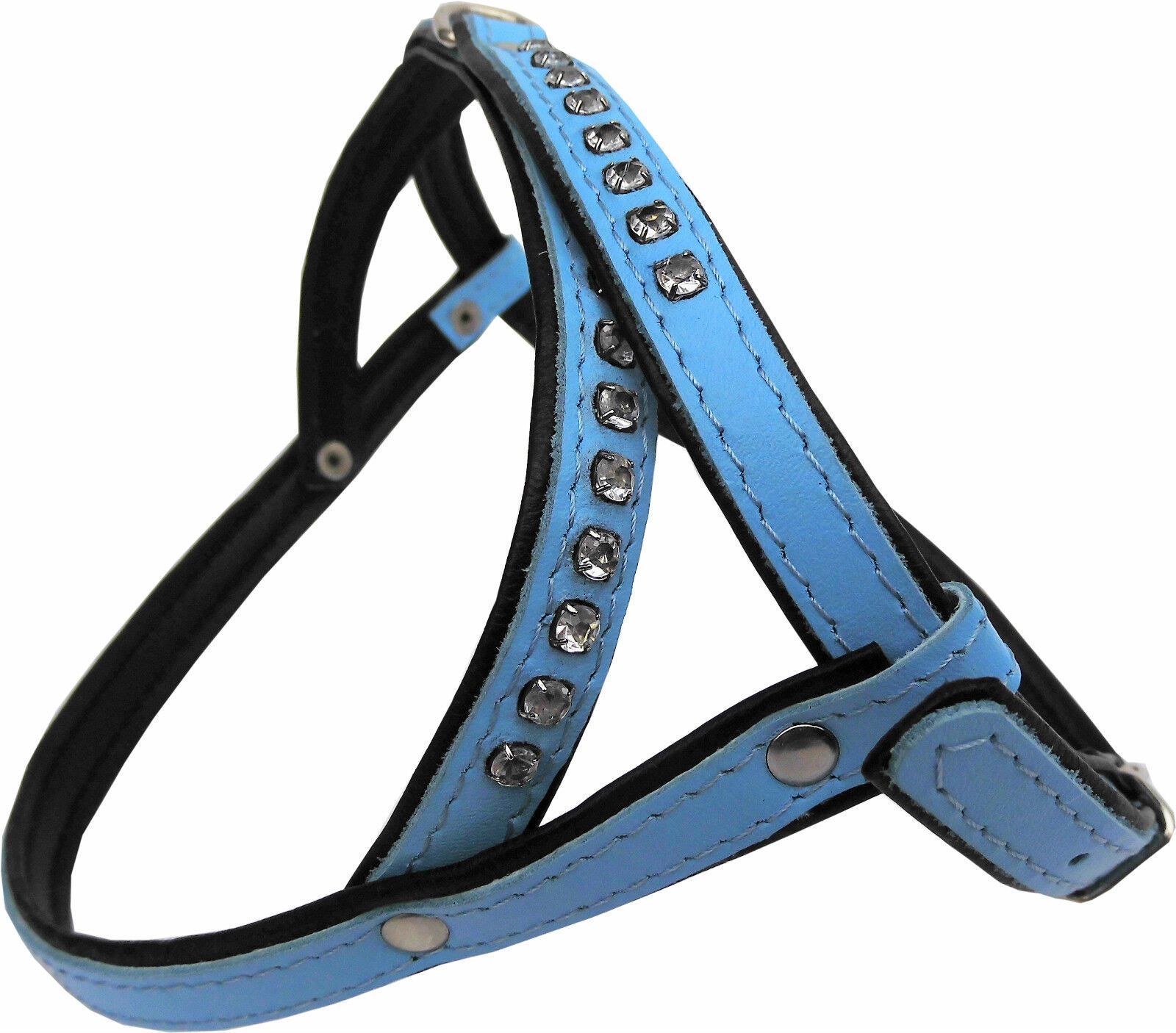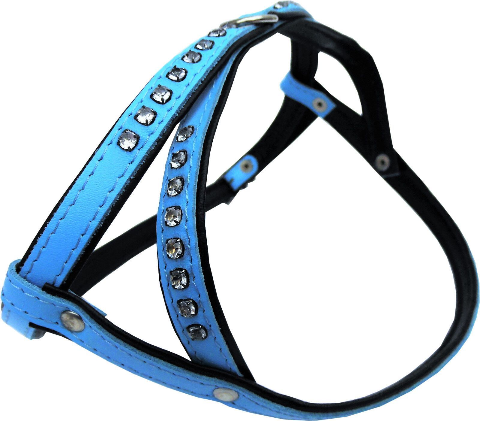 Hundegeschirr - Brustumfang 32,5-39,5cm, Leder + Strass, Hell Blau (PL10.05.3-45)